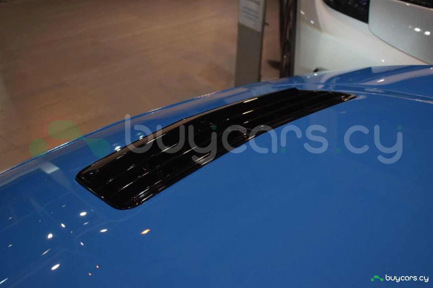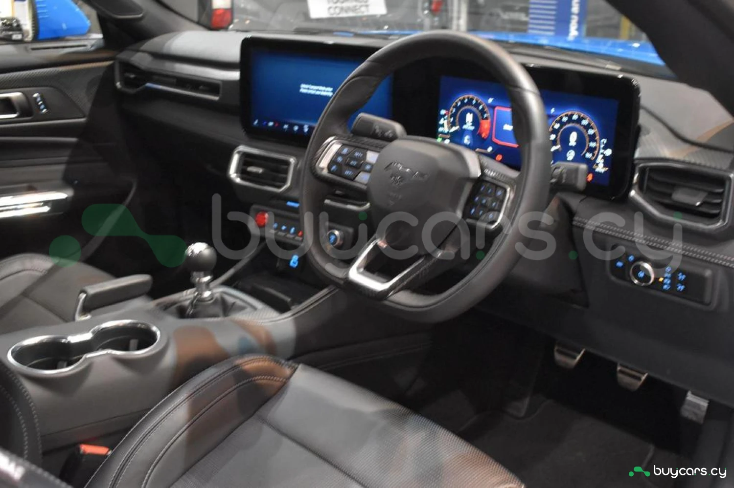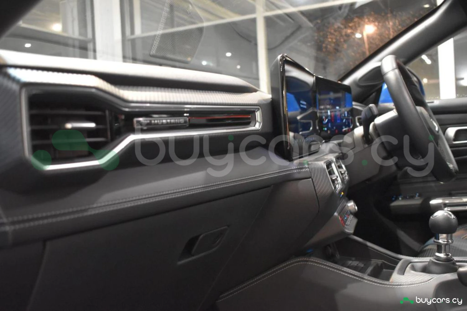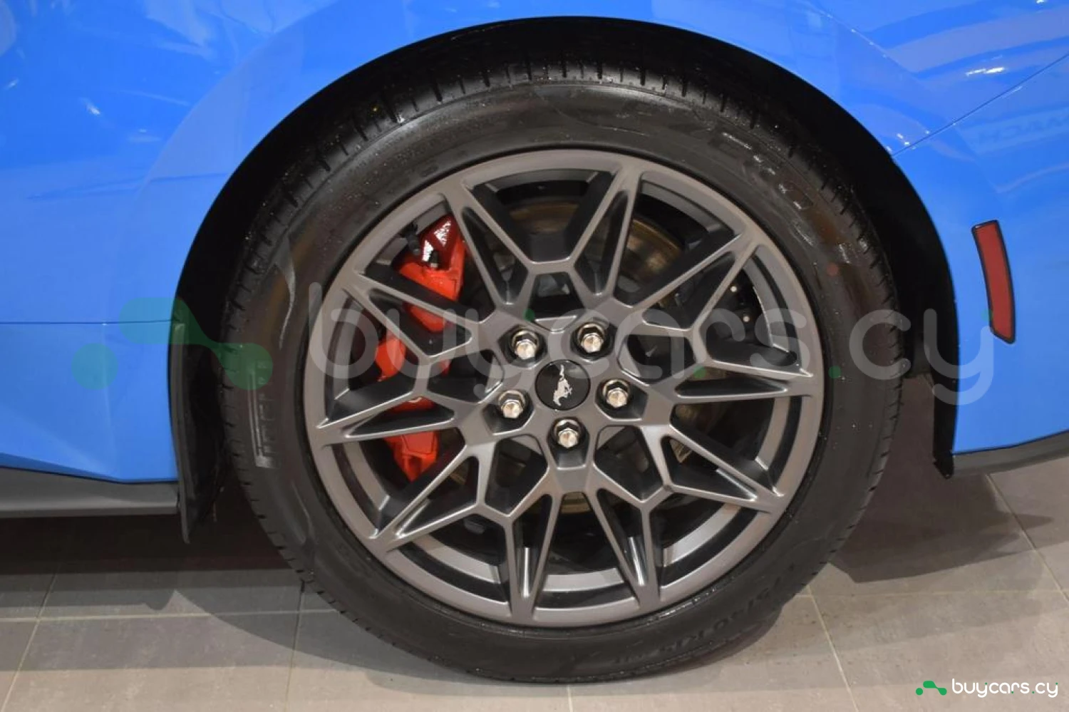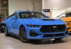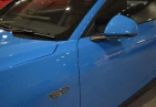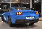 Экстерьер: Окраска Grabber Blue Metallic, 19-дюймовые окрашенные легкосплавные диски, комплект GT bodykit с черными молдингами дверных рам, передняя решетка радиатора GT с вертикальными силовыми ребрами, четыре выхлопные трубы, красные тормозные суппорты с белым логотипом, складывающиеся зеркала с подсветкой логотипа Mustang.