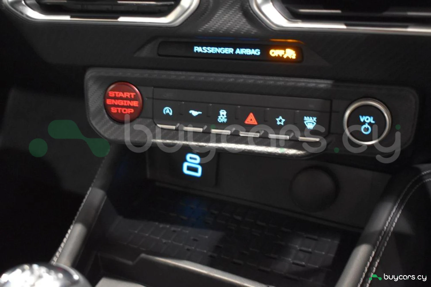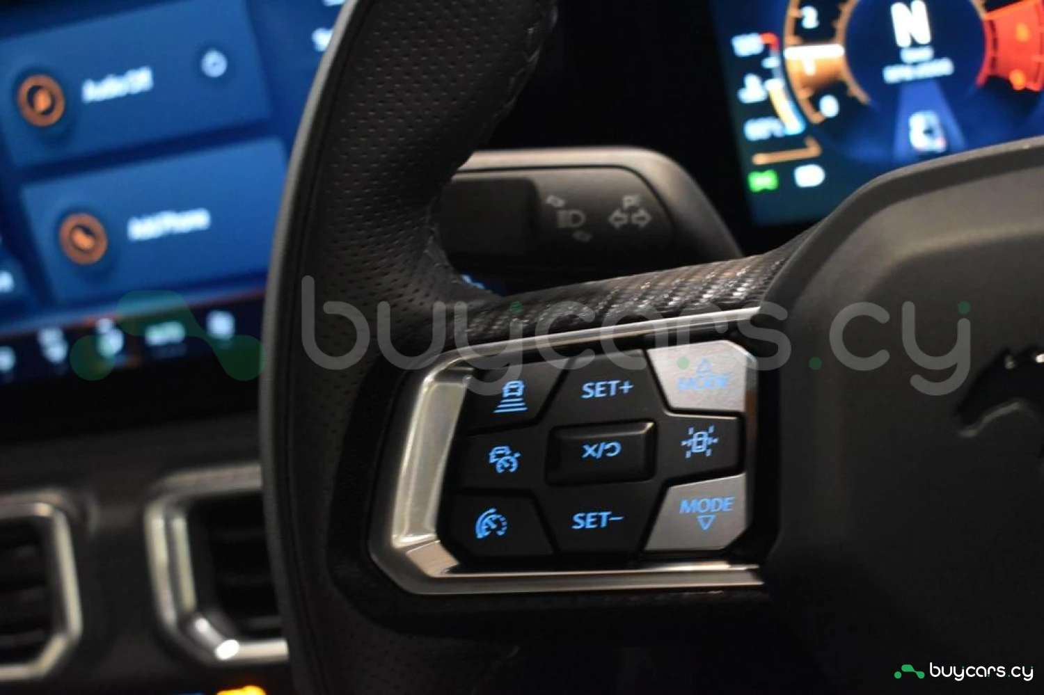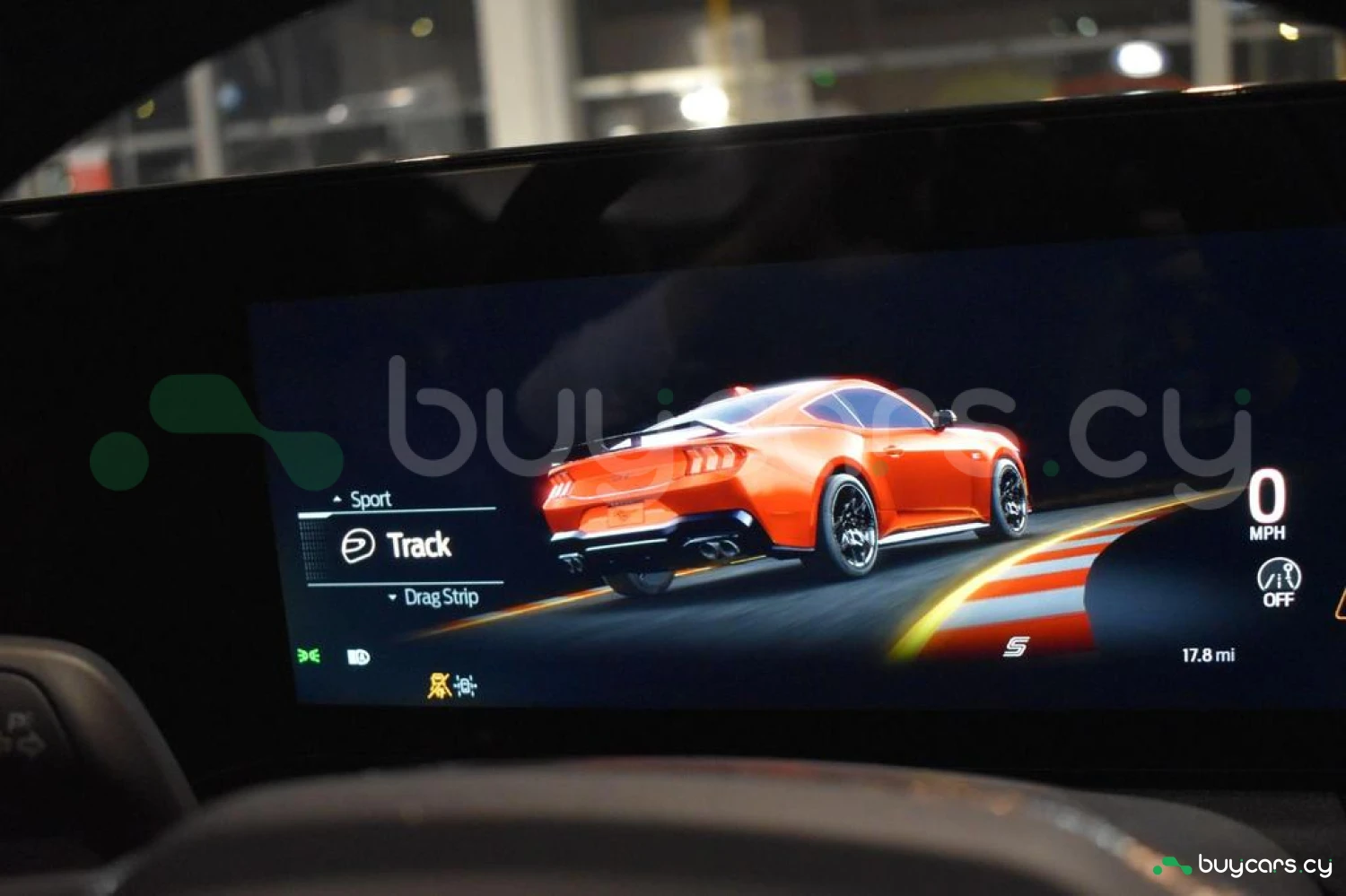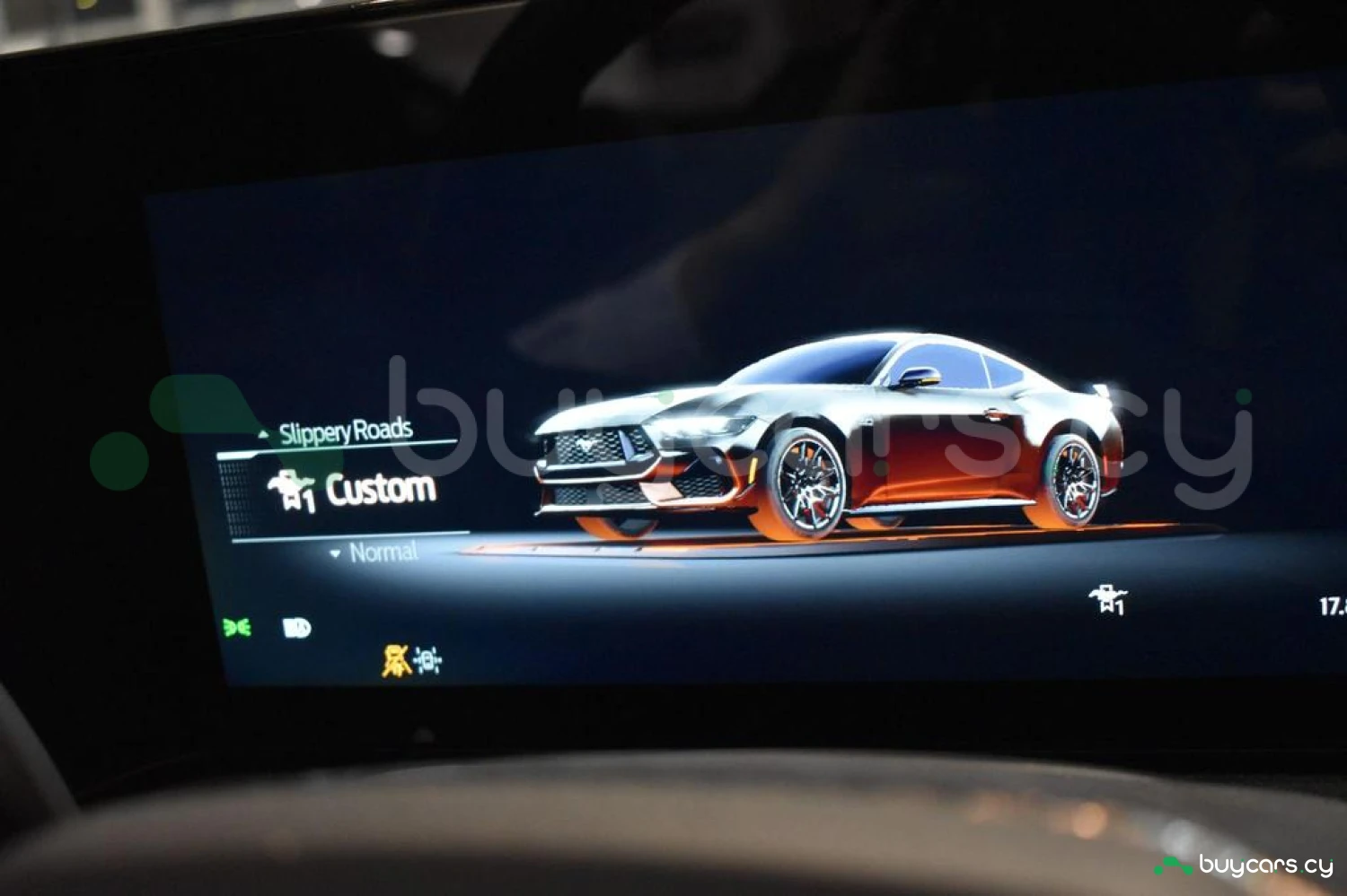 Экстерьер: Окраска Grabber Blue Metallic, 19-дюймовые окрашенные легкосплавные диски, комплект GT bodykit с черными молдингами дверных рам, передняя решетка радиатора GT с вертикальными силовыми ребрами, четыре выхлопные трубы, красные тормозные суппорты с белым логотипом, складывающиеся зеркала с подсветкой логотипа Mustang.