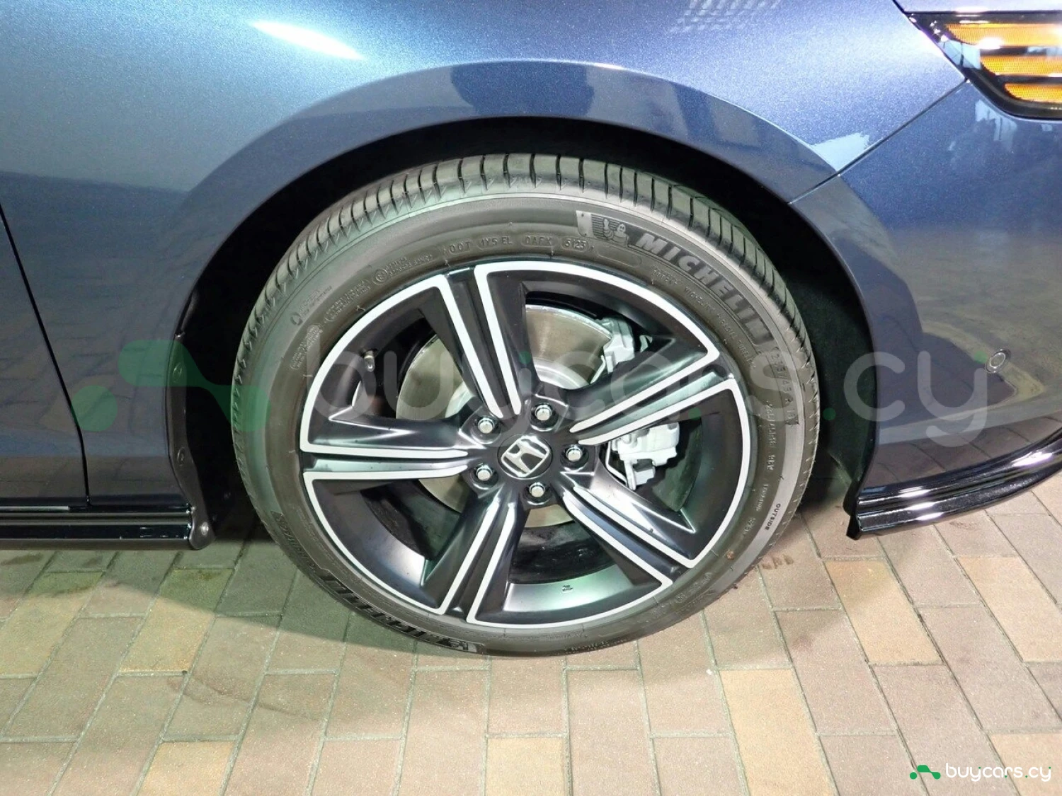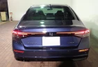 Экстерьер: Honda Accord 2.0 EX e:HEV 2025 года в эффектном цвете Canyon River Blue Metallic сочетает элегантность и спортивный стиль в премиальном кузове гибридного седана. Автомобиль оснащён выразительной решёткой радиатора с хромированными вставками, острыми светодиодными фарами и плавными линиями кузова, характерными для современного дизайна Honda. Заводские 18‑дюймовые легкосплавные диски, хромированные детали и рельефные панели подчёркивают его динамичный и престижный облик.