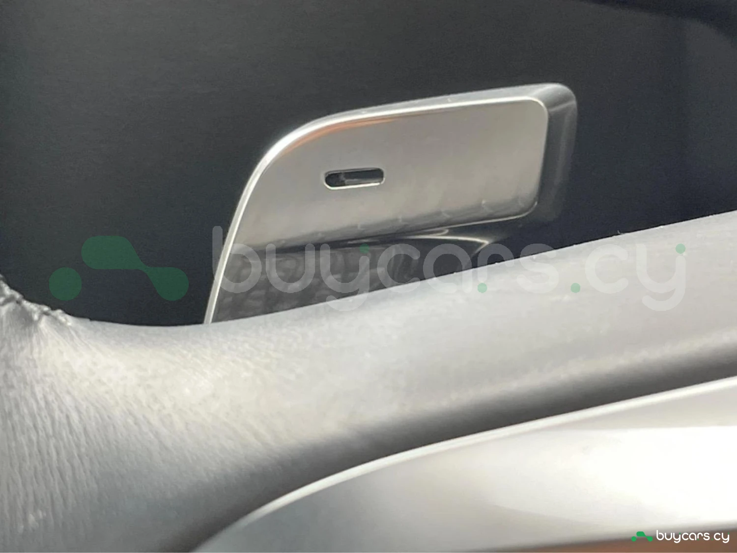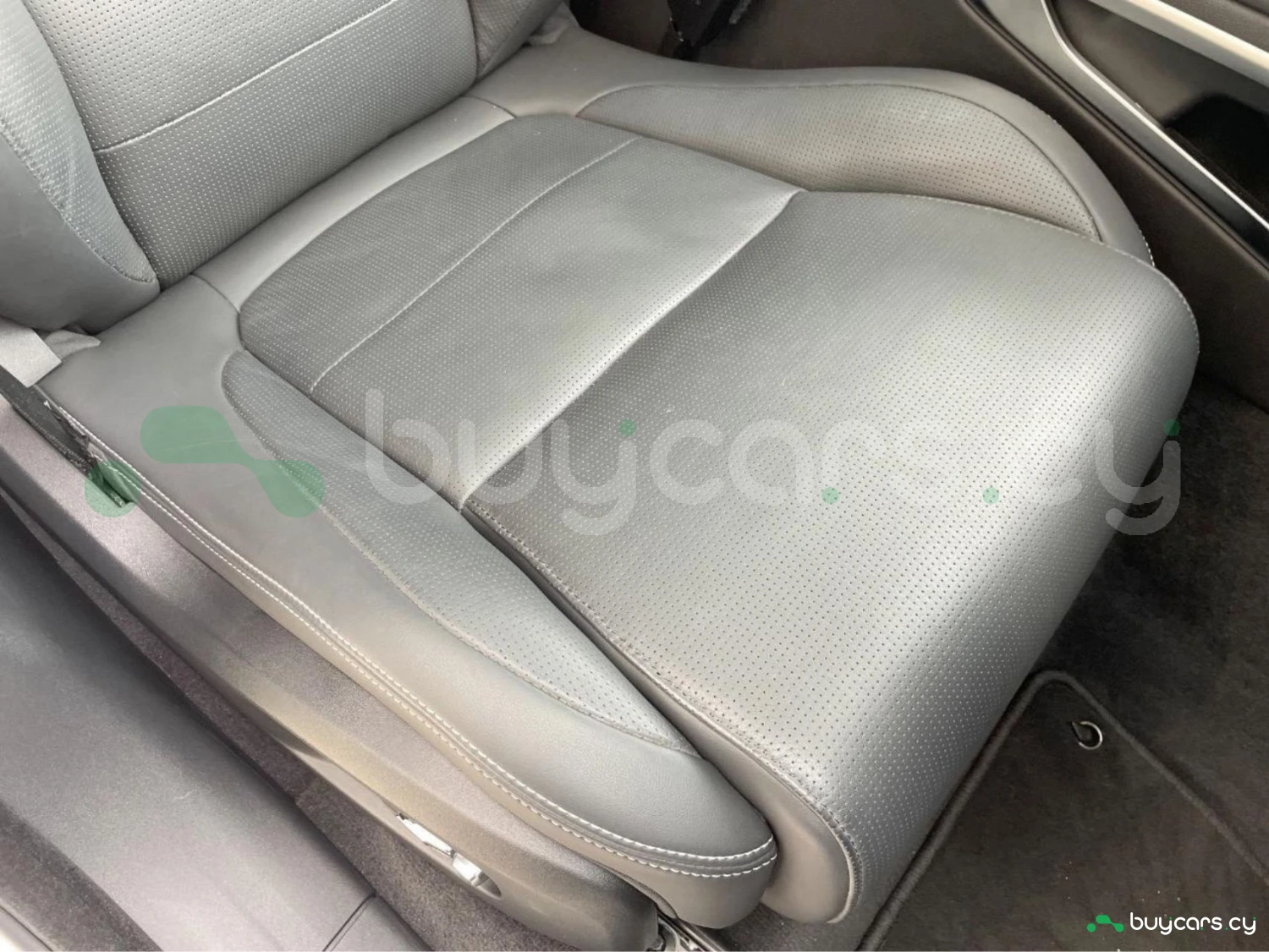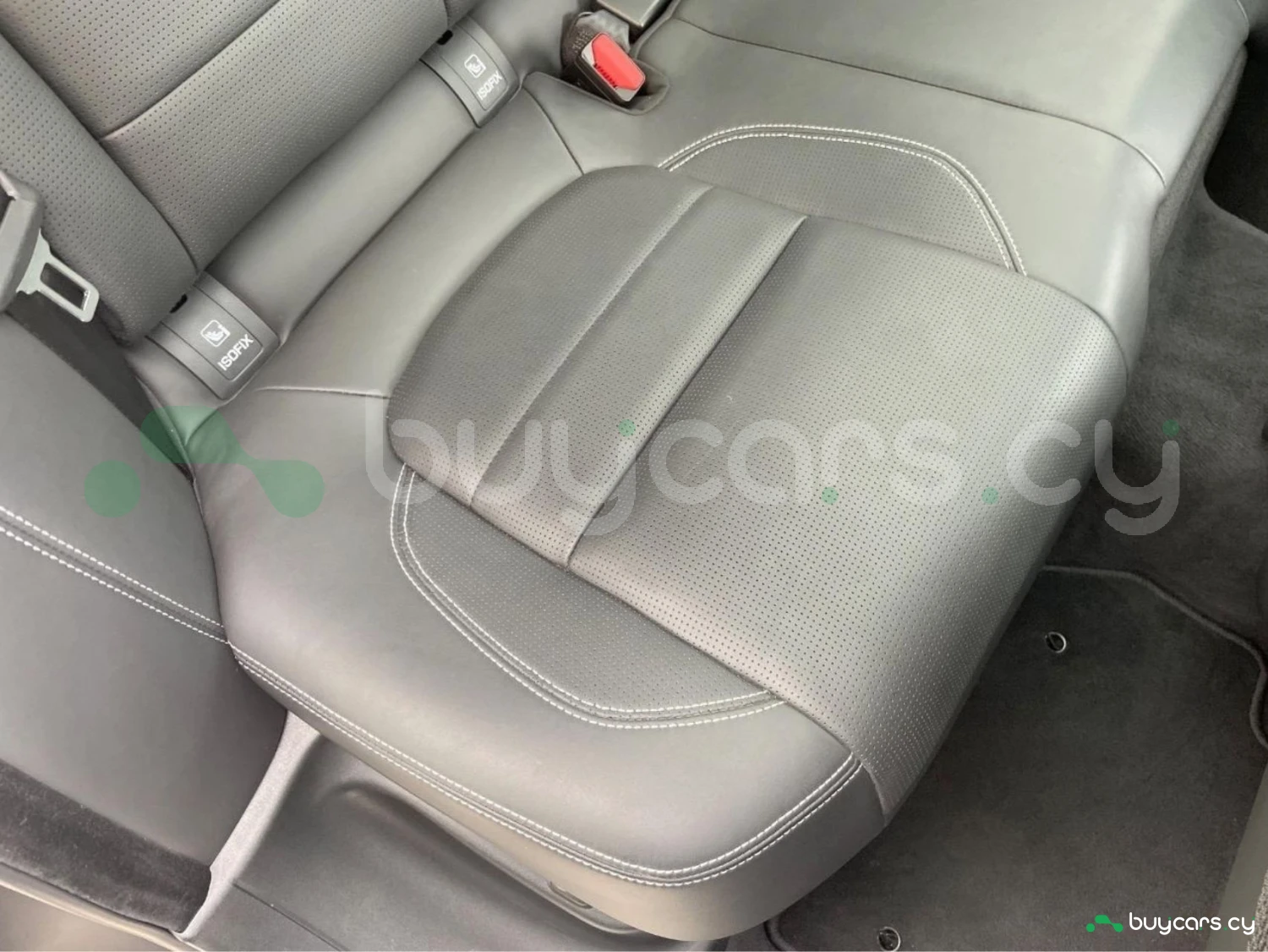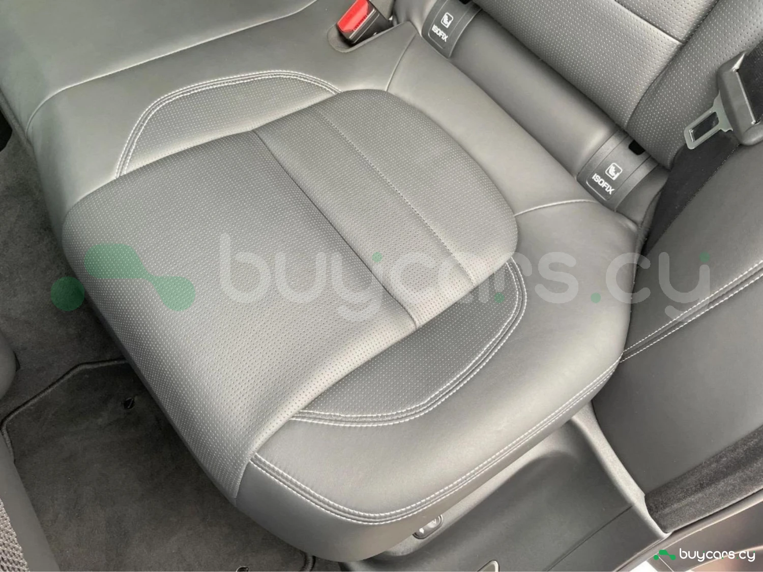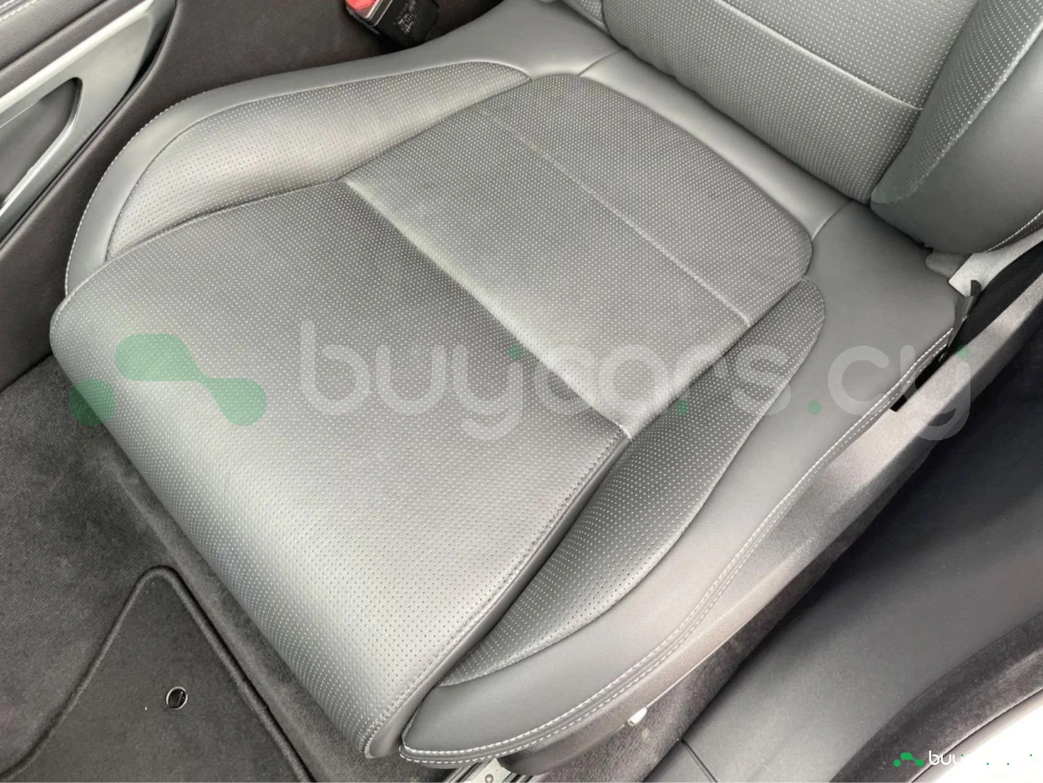 Салон рассчитан на пять пассажиров. Чёрные кожаные сиденья с подогревом и электроприводом, панорамная стеклянная крыша и мультимедийная система с поддержкой Apple CarPlay и Android Auto создают комфортную атмосферу.