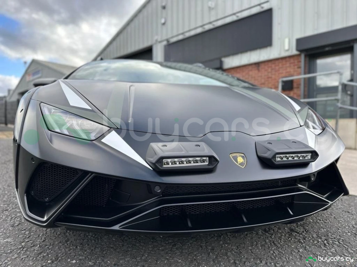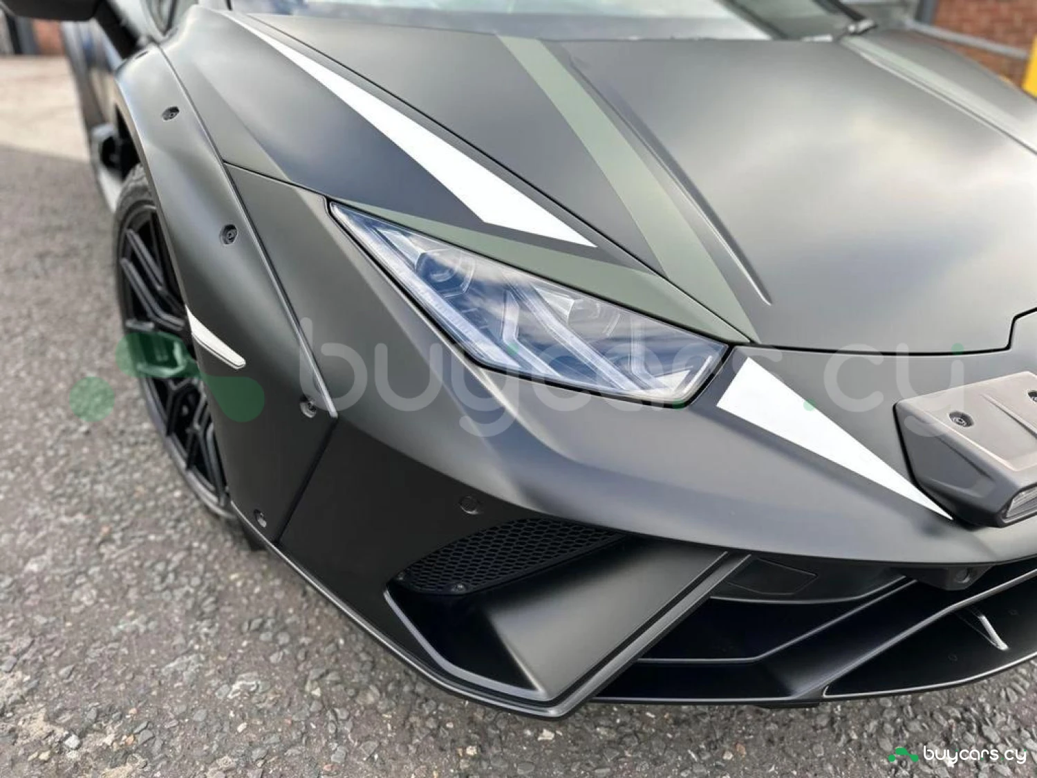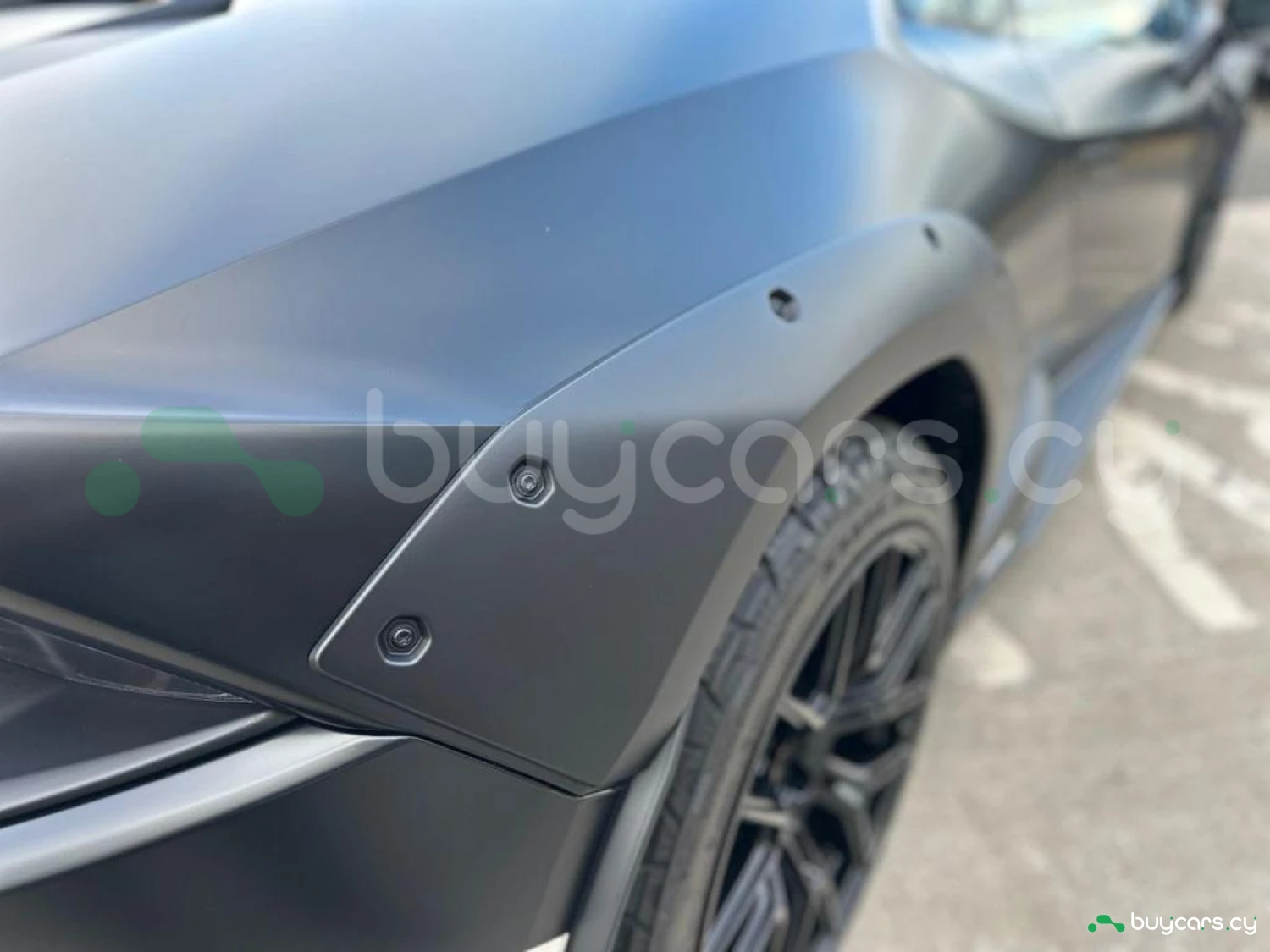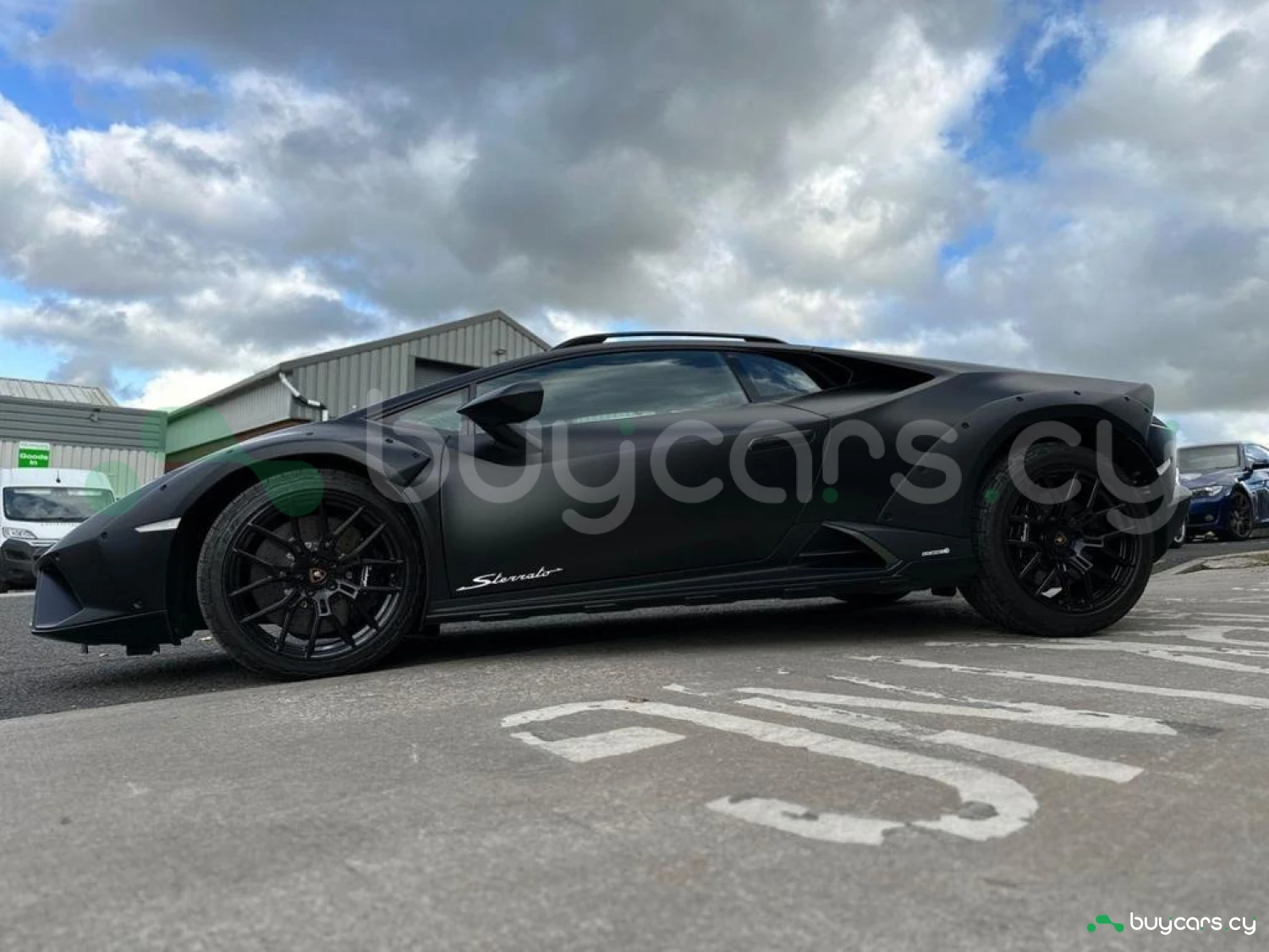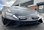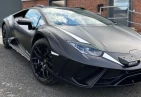 Экстерьер: Черный цвет кузова придает автомобилю агрессивный и стильный облик. Huracán оснащен 19-дюймовыми легкосплавными дисками Cerere Casted Silver, обутыми в шины Bridgestone Dueler (235/40 R19 спереди, 285/40 R19 сзади) для оптимального сцепления с дорогой. Легкий алюминиевый кузов и гибридное шасси из алюминия и карбона улучшают управляемость и динамику. Внешний облик дополняют матовые черные элементы, хромированный логотип Lamborghini на задней части, наклейка на боковой двери и выхлопные патрубки в матовом сером цвете. Глянцевые черные рейлинги и зеркала (дополнительные опции) придают автомобилю премиальный вид.