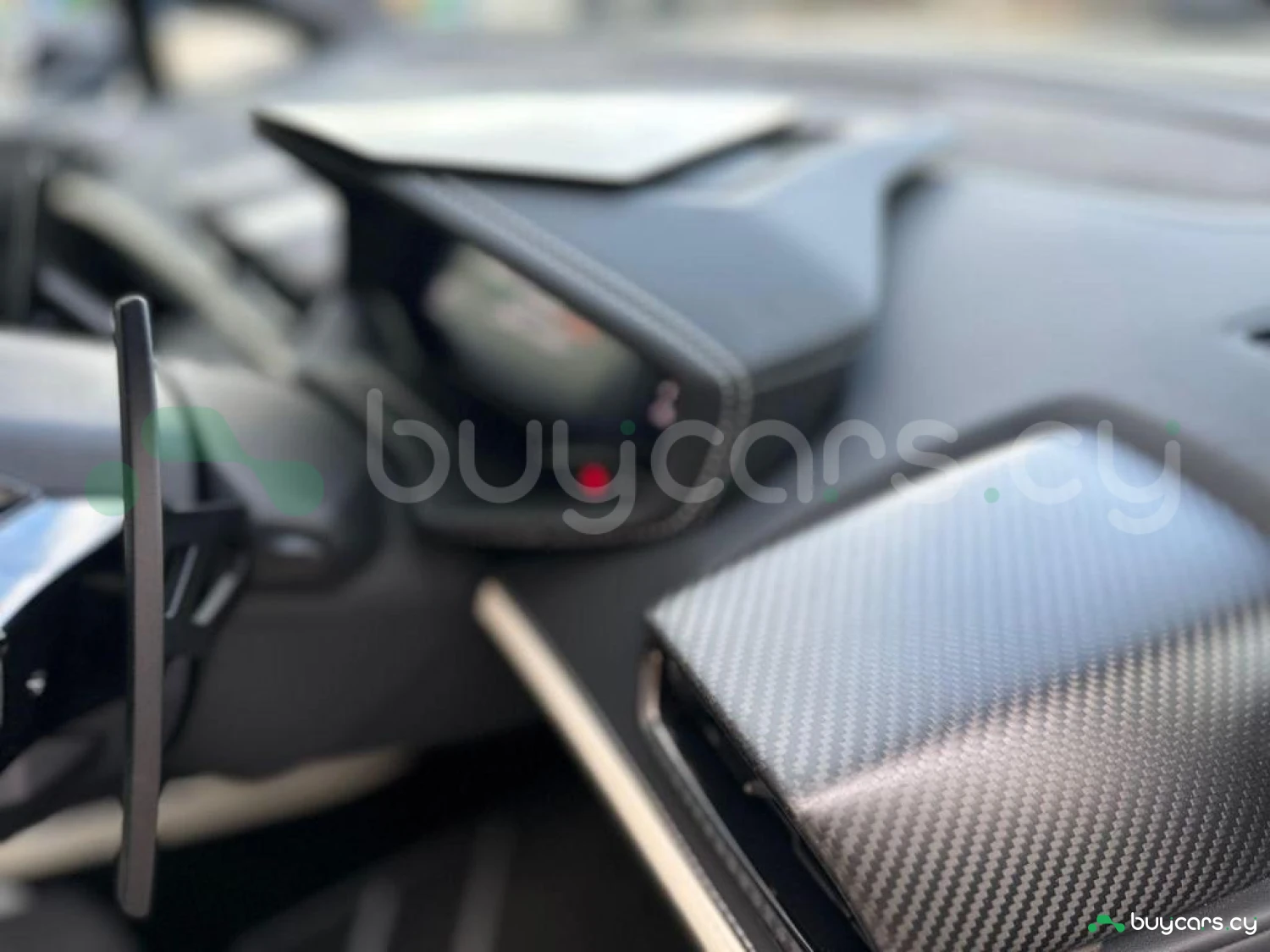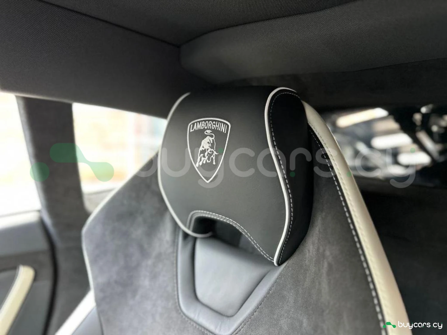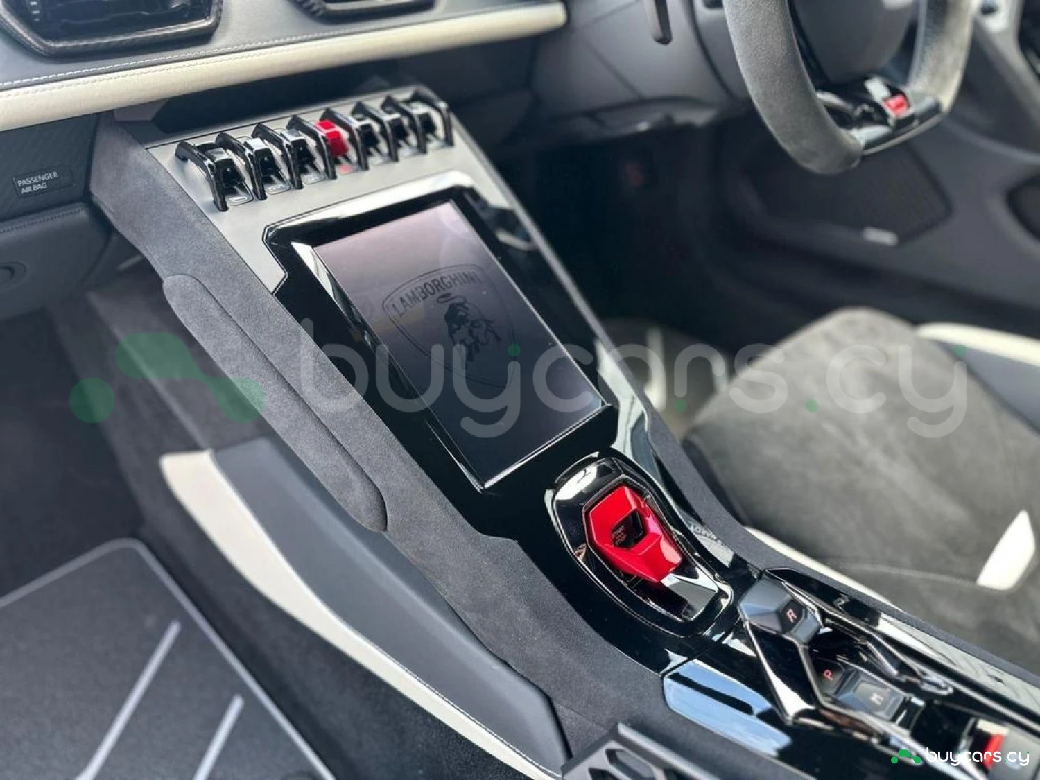 Технологии и мультимедиа: В автомобиле установлена мультимедийная система Lamborghini с 8,4-дюймовым вертикальным сенсорным экраном, обеспечивающая удобный доступ к настройкам и развлечениям. Цифровая 12,3-дюймовая приборная панель TFT с адаптивной визуализацией отображает ключевую информацию о движении. Функции подключения включают Bluetooth, цифровое радио DAB, мультимедийные интерфейсы с USB и 4-динамиковую аудиосистему (2 низкочастотных и 2 высокочастотных динамика).