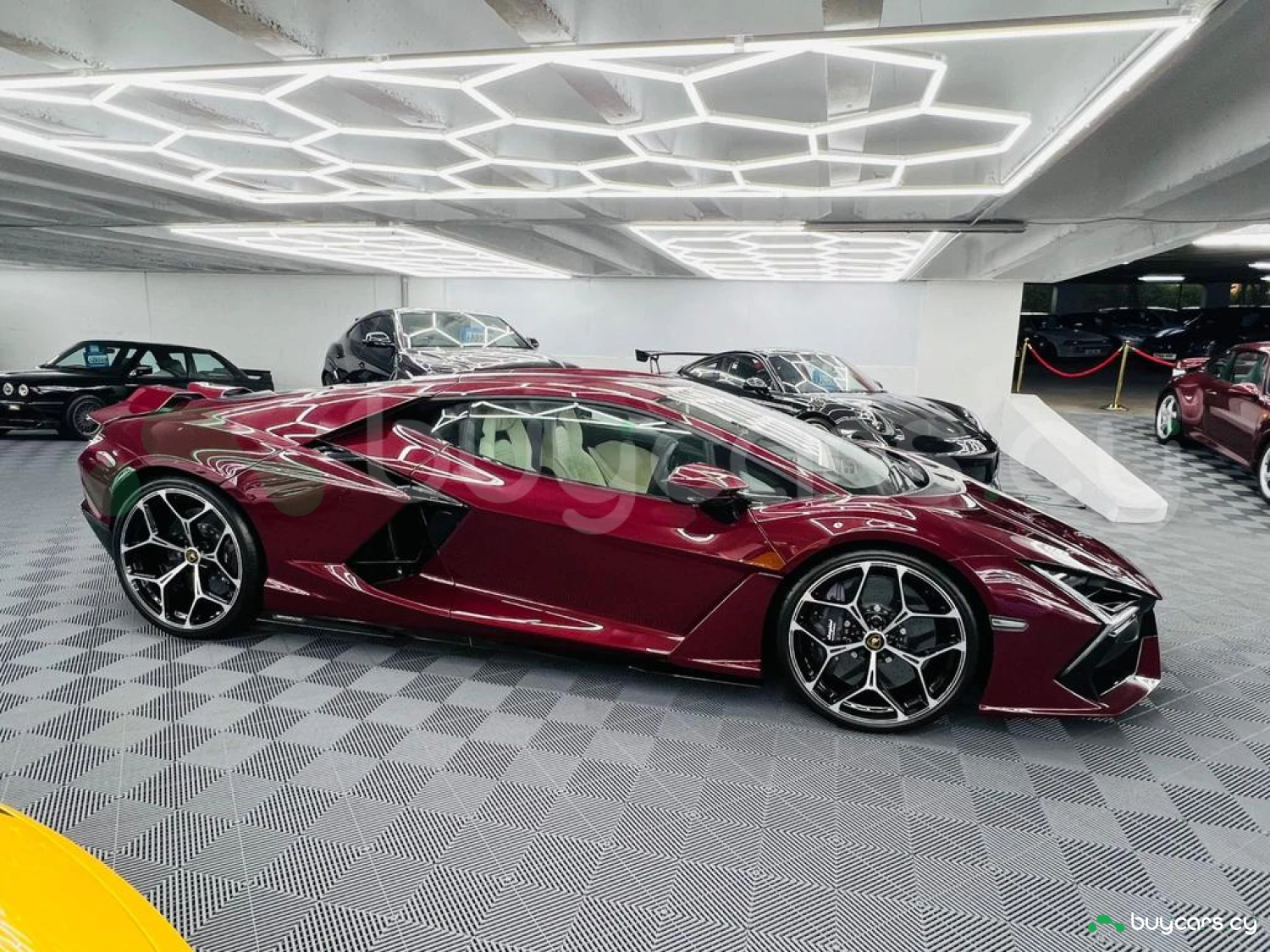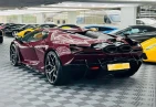 Экстерьер и колеса: Кузов окрашен в эксклюзивный Ad Personam Amaranto, дополнен 21"/22" легкосплавными дисками Altanero Shiny Black Diamond Cut. Включает матовые черные патрубки выхлопной системы, пакет Style Package в глянцевом черном цвете, а также логотип Lamborghini на задней части в черном глянце. Воздухозаборники двигателя выполнены в матовом черном цвете, коллектор двигателя — в Alu Matt Black. В список оснащения также входят 20"/21" диски Venancio Casted Shiny Silver.