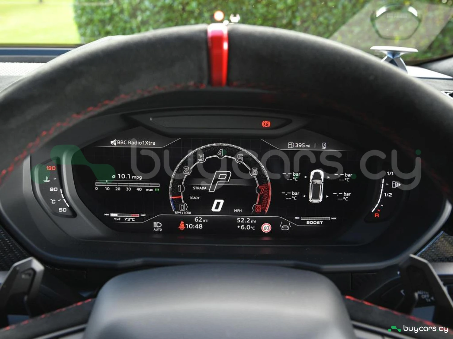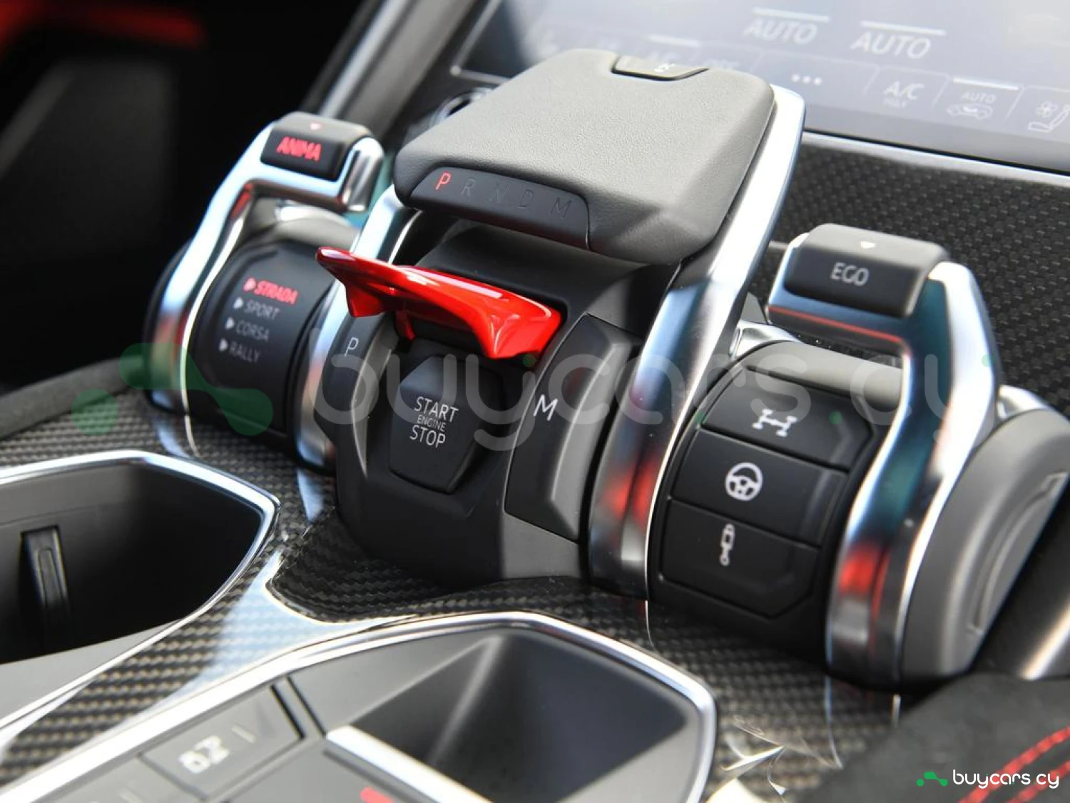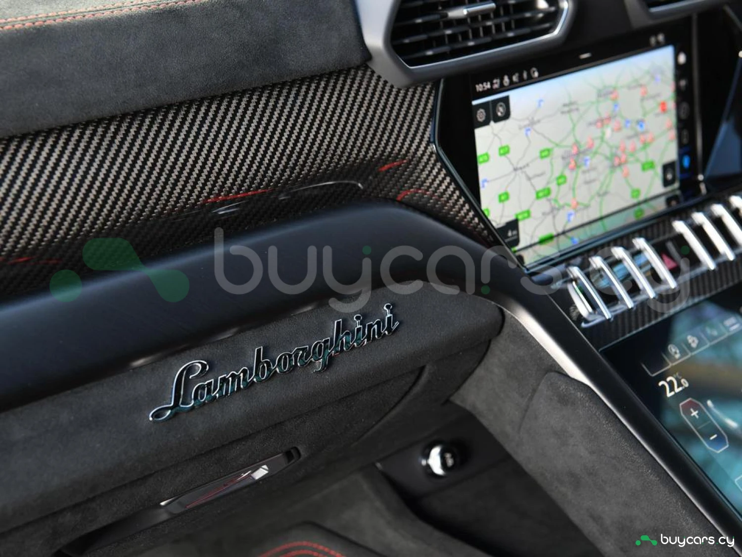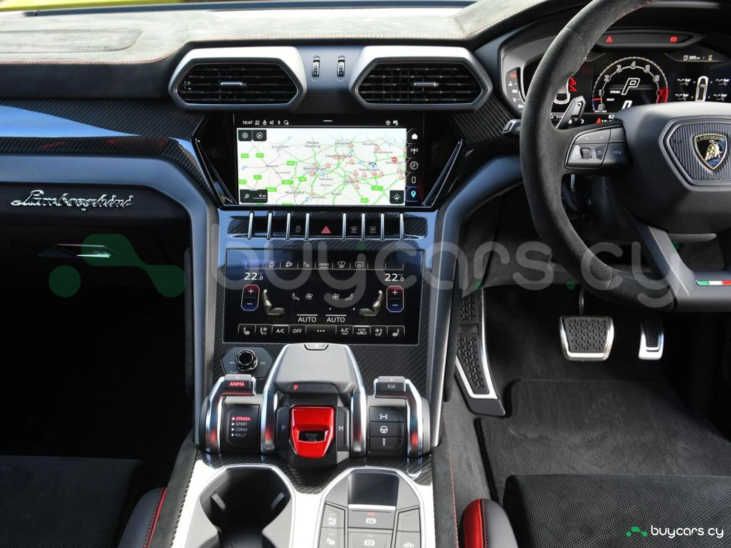 Интерьер и комфорт: Салон выполнен в двухцветной алькантаре Sportivo с отделкой Performante, включая контрастную прострочку Rosso Alala и ремни безопасности в этом же цвете. Интерьер дополнен карбоновыми вставками Carbon Twill, приборной панелью, обшитой алькантарой, а также логотипом Lamborghini на торпедо. Полностью электрические передние сиденья с вентиляцией и массажем, подогрев задних сидений и двери с доводчиками (Soft Close) обеспечивают максимальный комфорт. Спортивный руль, обтянутый алькантарой и кожей, с темно-хромированным ободом и маркером Rosso придает спортивный стиль.