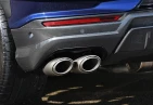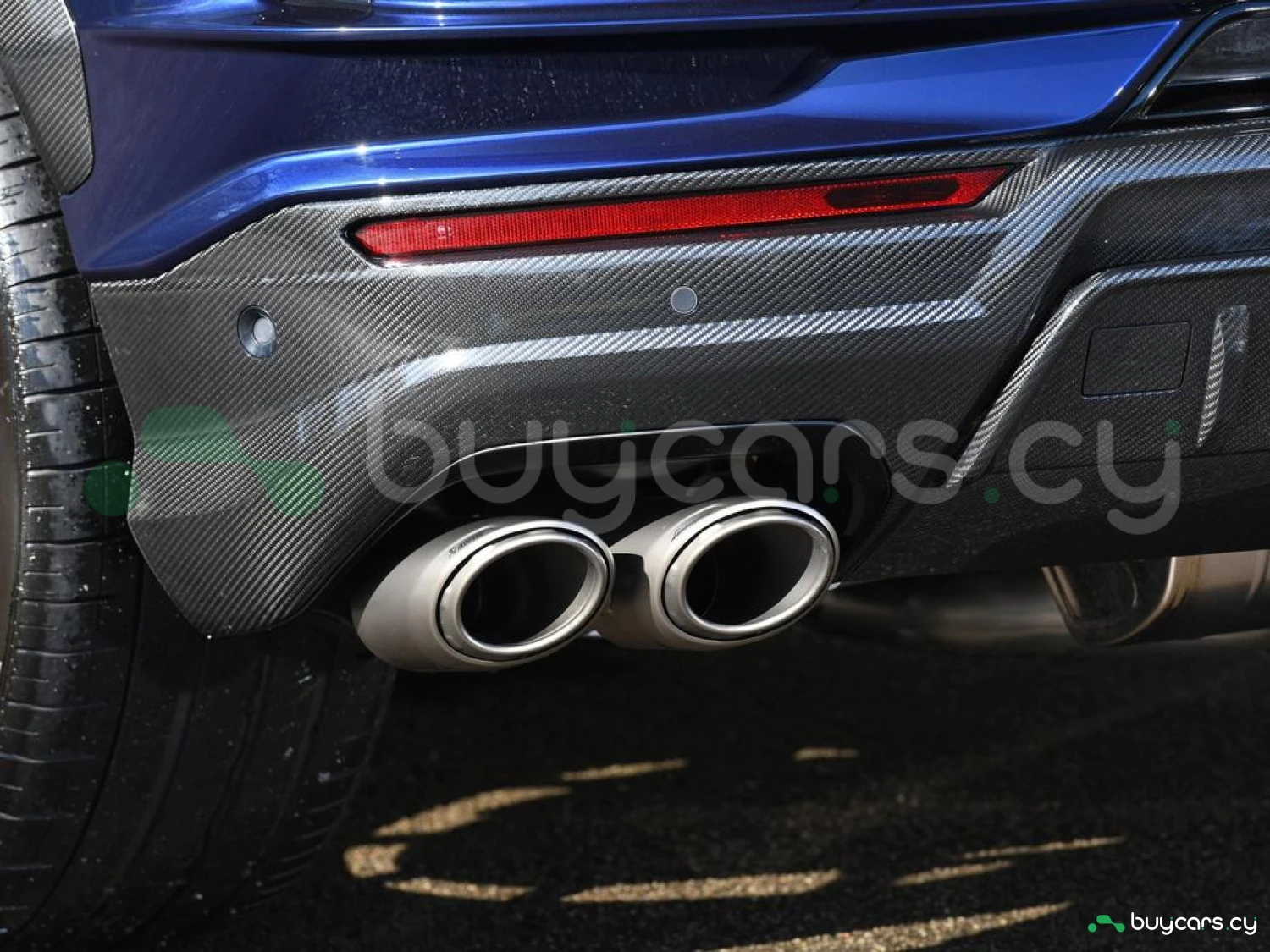Экстерьер и колеса: Кузов окрашен в Blu Astraeus. Автомобиль оснащен 23-дюймовыми дисками Penope Shiny Black с титановыми болтами и тормозными суппортами красного цвета. Экстерьер дополнен элементами из глянцевого карбона, включая задний спойлер, воздухозаборники на капоте, колесные арки и передний бампер. Гоночная выхлопная система Akrapovic и выхлопные трубы из титана подчеркивают спортивный характер. Электрорегулируемые, подогреваемые и складывающиеся боковые зеркала, светодиодные фары и дневные ходовые огни обеспечивают отличную видимость.