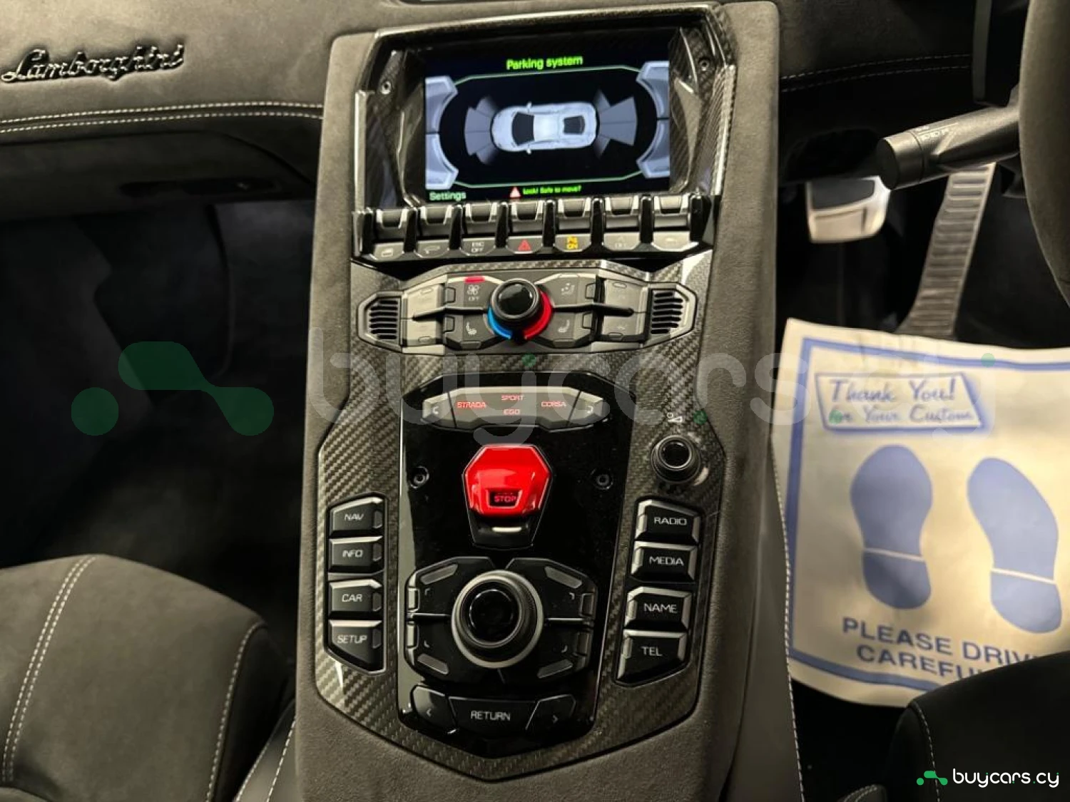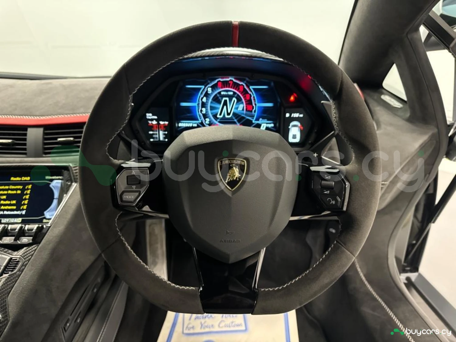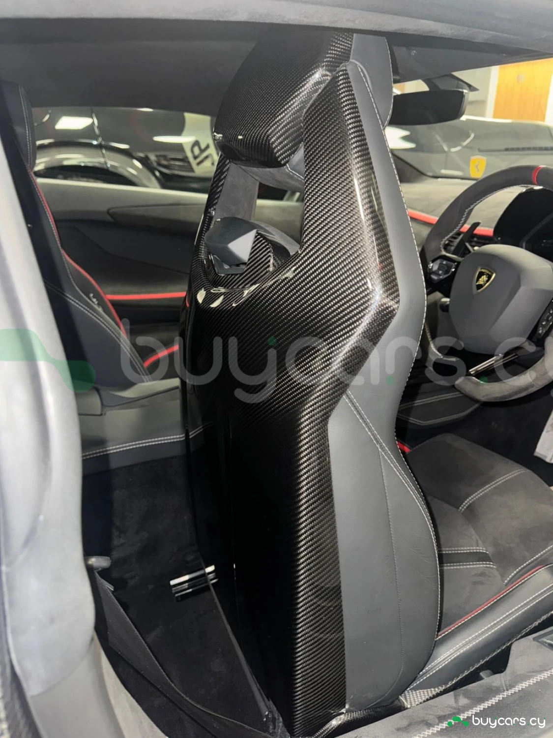 Интерьер и комфорт: Ad Personam салон из алькантары выполнен в Nero Cosmus с контрастной прострочкой Rosso Alala (дополнительная опция). Оснащен полностью электрическими подогреваемыми сиденьями с поясничной поддержкой и карбоновыми элементами, полным карбоновым интерьерным пакетом, спинками сидений из глянцевого карбона, а также пакетом Branding Package с отделкой из алькантары. Логотип Lamborghini на подголовниках и кнопка запуска двигателя на центральном тоннеле подчеркивают эксклюзивность модели.