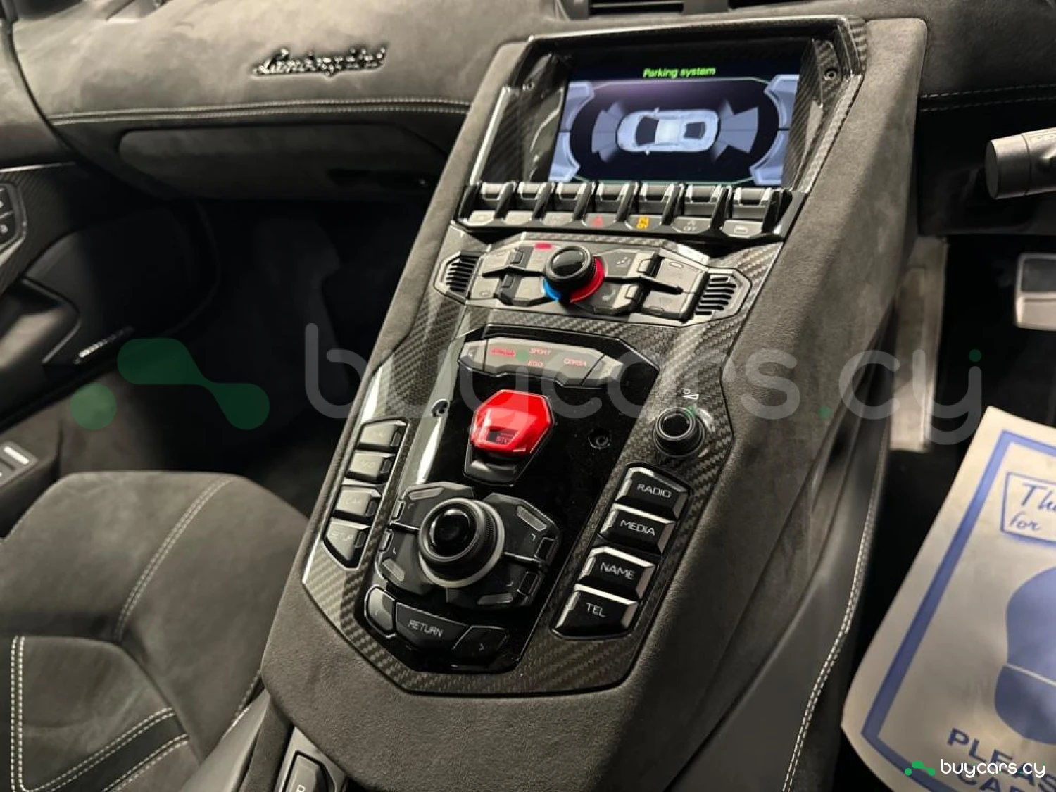 Производительность и управление: Оснащен магнитореологической подвеской с системой подъема передней оси, карбон-керамическими тормозами с красными суппортами (дополнительная опция), монококом из карбона с алюминиевыми подрамниками, а также системой динамического рулевого управления Lamborghini LDS.