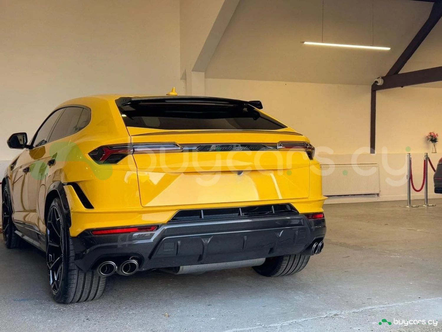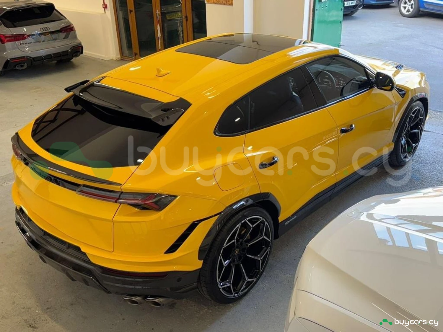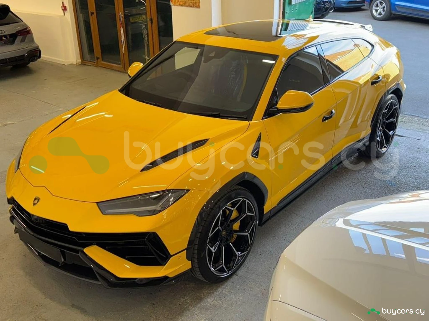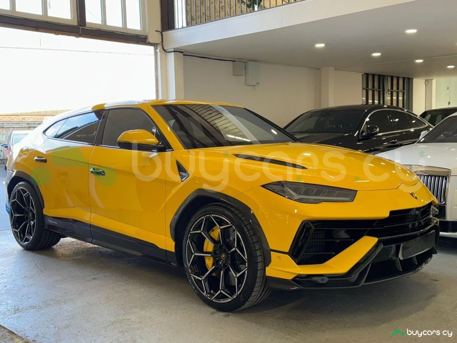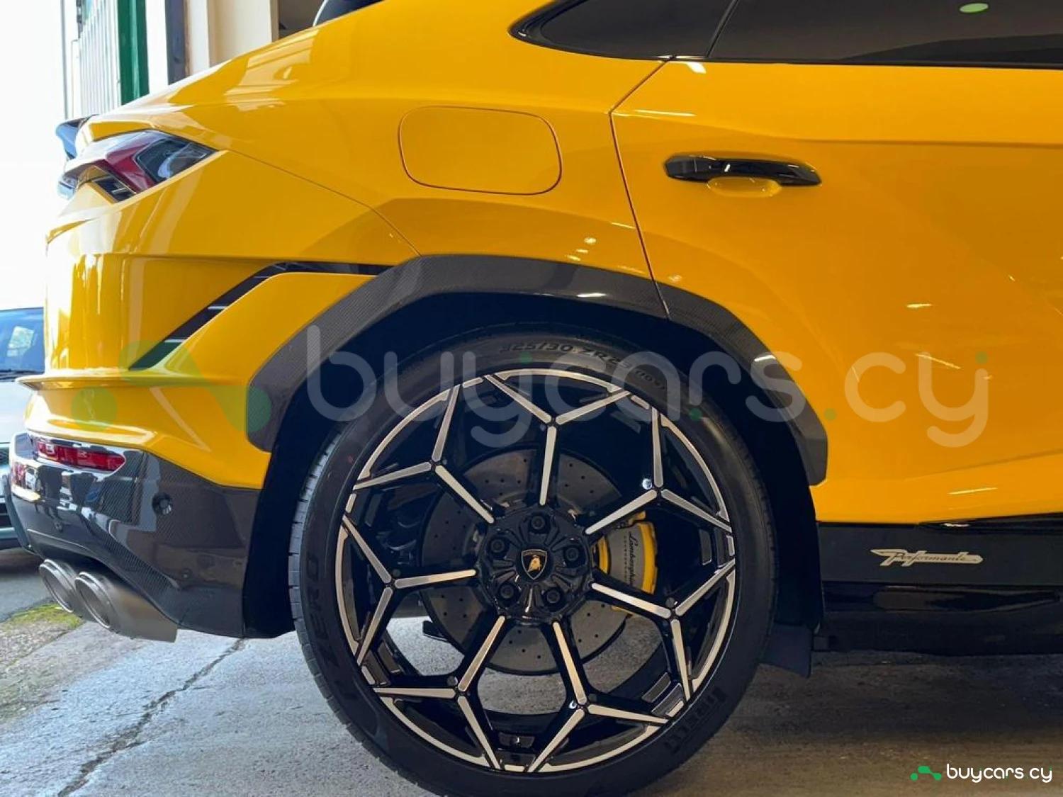 Экстерьер и колеса: 23" Легкосплавные диски Shiny, Задний спойлер из карбона, Передний и задний бамперы из карбона, Расширители колесных арок из карбона, Воздухозаборники капота из карбона, Черные дверные ручки, Электроскладываемые и подогреваемые зеркала, Цвет кузова – Желтый.