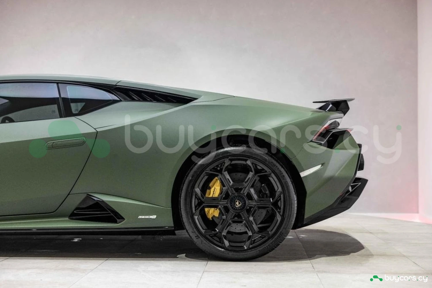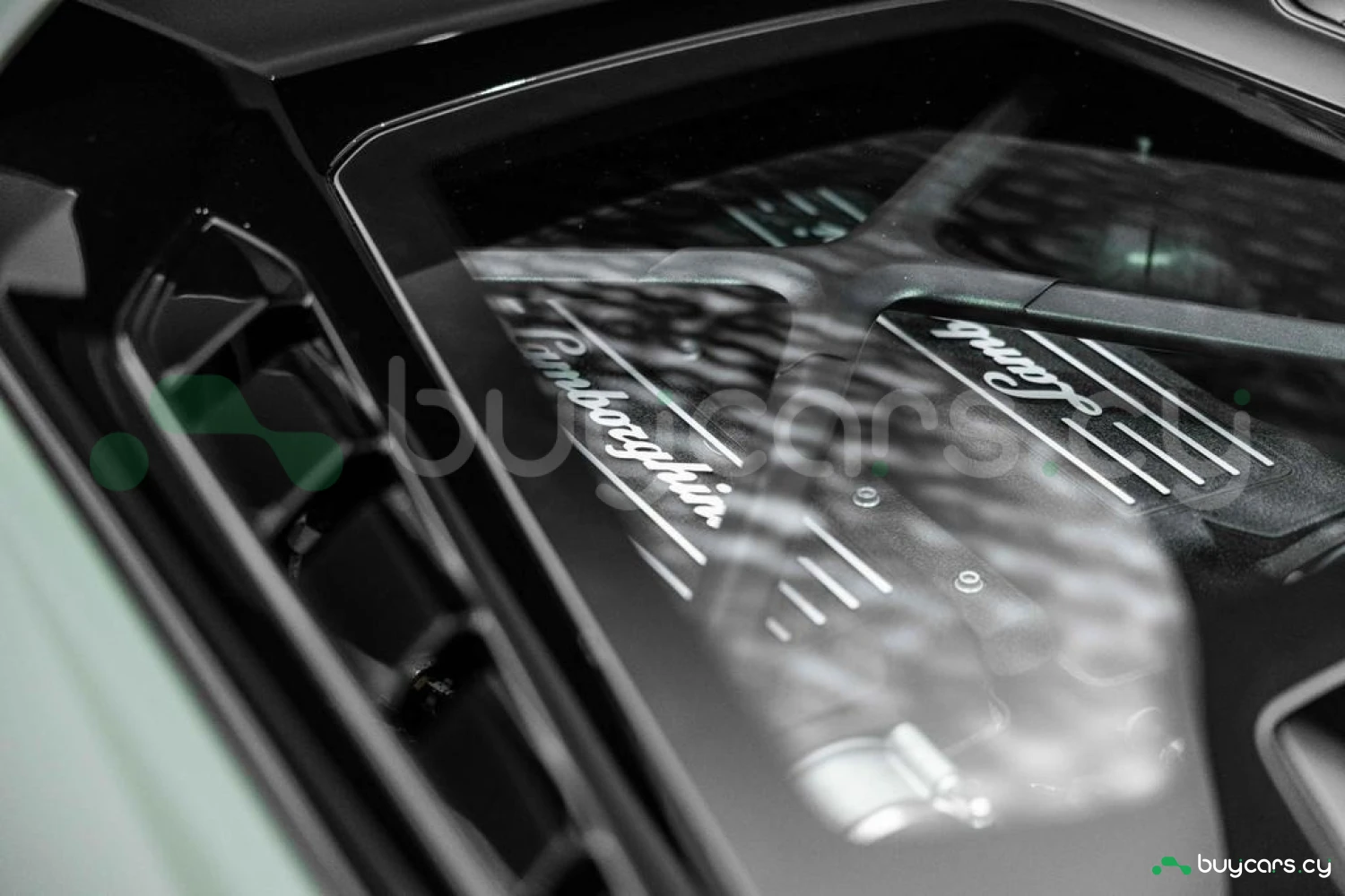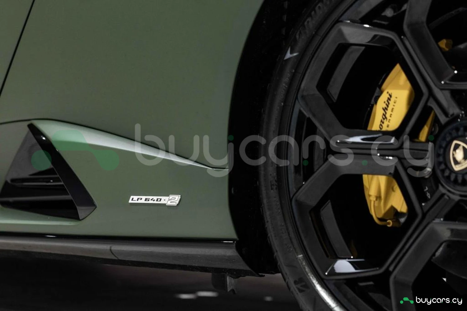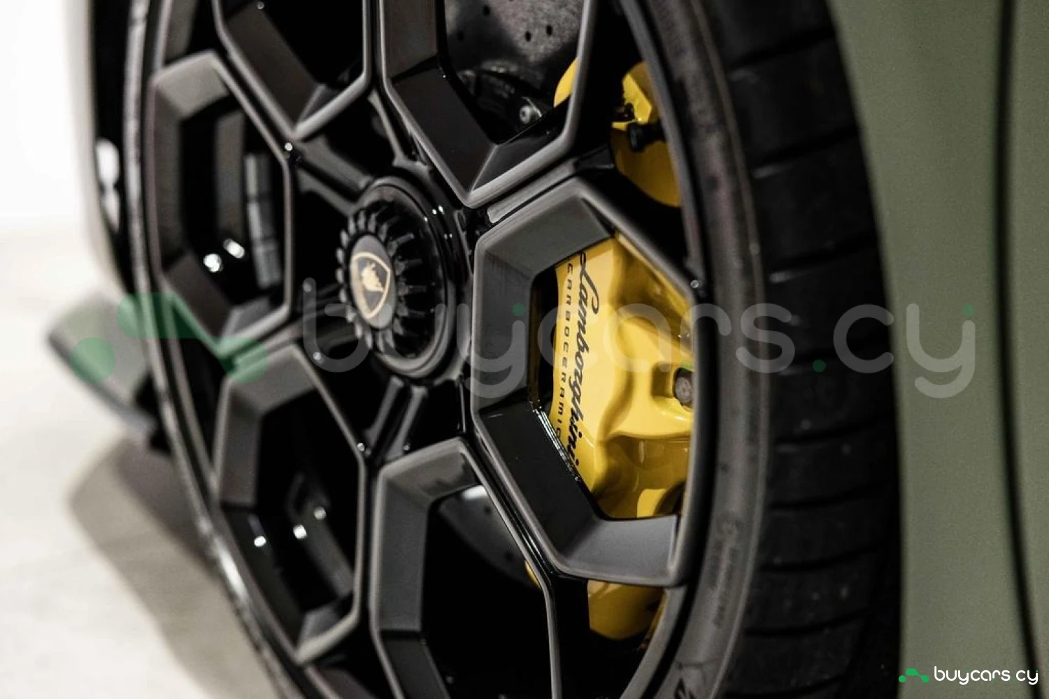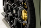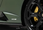 Экстерьер: Матовый зеленый виниловый кузов (включая скрытые зоны) придает автомобилю уникальный облик. 20-дюймовые легкосплавные диски Damiso Shiny Black с центральной гайкой Monolock в черном цвете усиливают спортивный характер. Желтые карбон-керамические тормозные суппорты в сочетании с карбон-керамическими дисками с внутренней вентиляцией и перфорацией обеспечивают высокую эффективность торможения. Задний бампер и диффузор в глянцевом черном цвете (Ad Personam), черный глянцевый логотип Lamborghini на задней панели и стильный пакет в глянцевом черном цвете подчеркивают эксклюзивность дизайна. Система подъема передней оси (Lifting System) помогает преодолевать препятствия и уклоны.