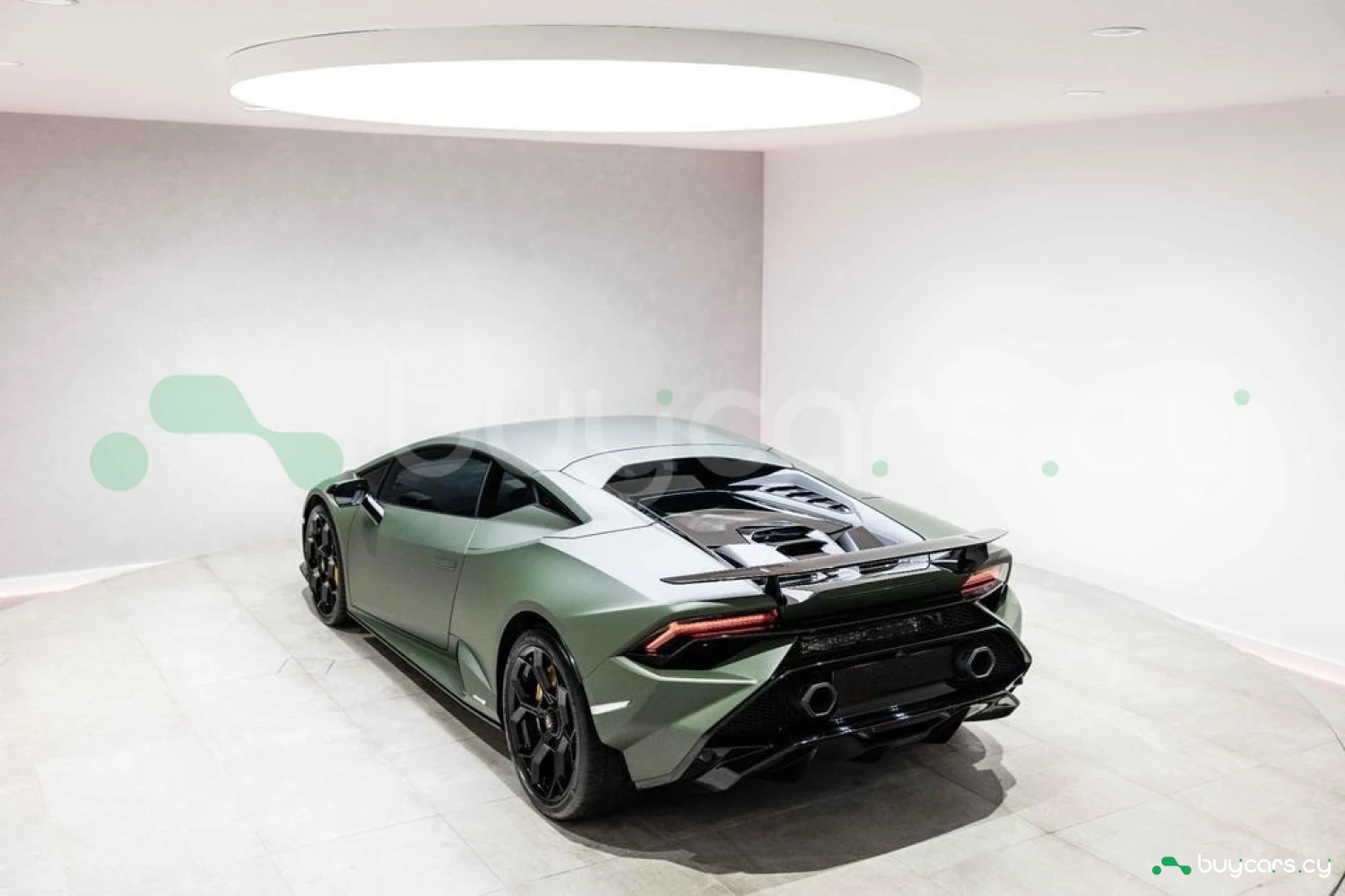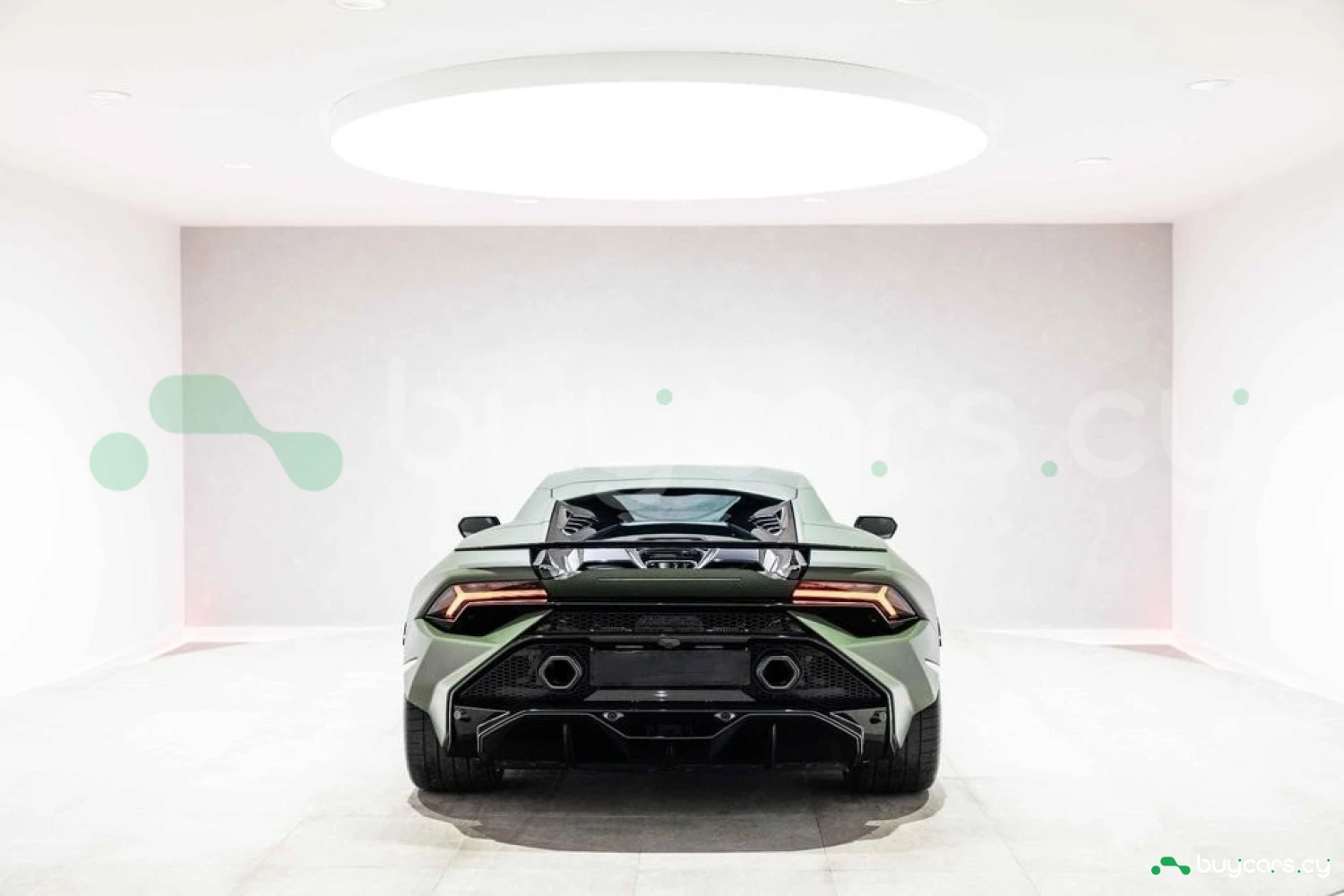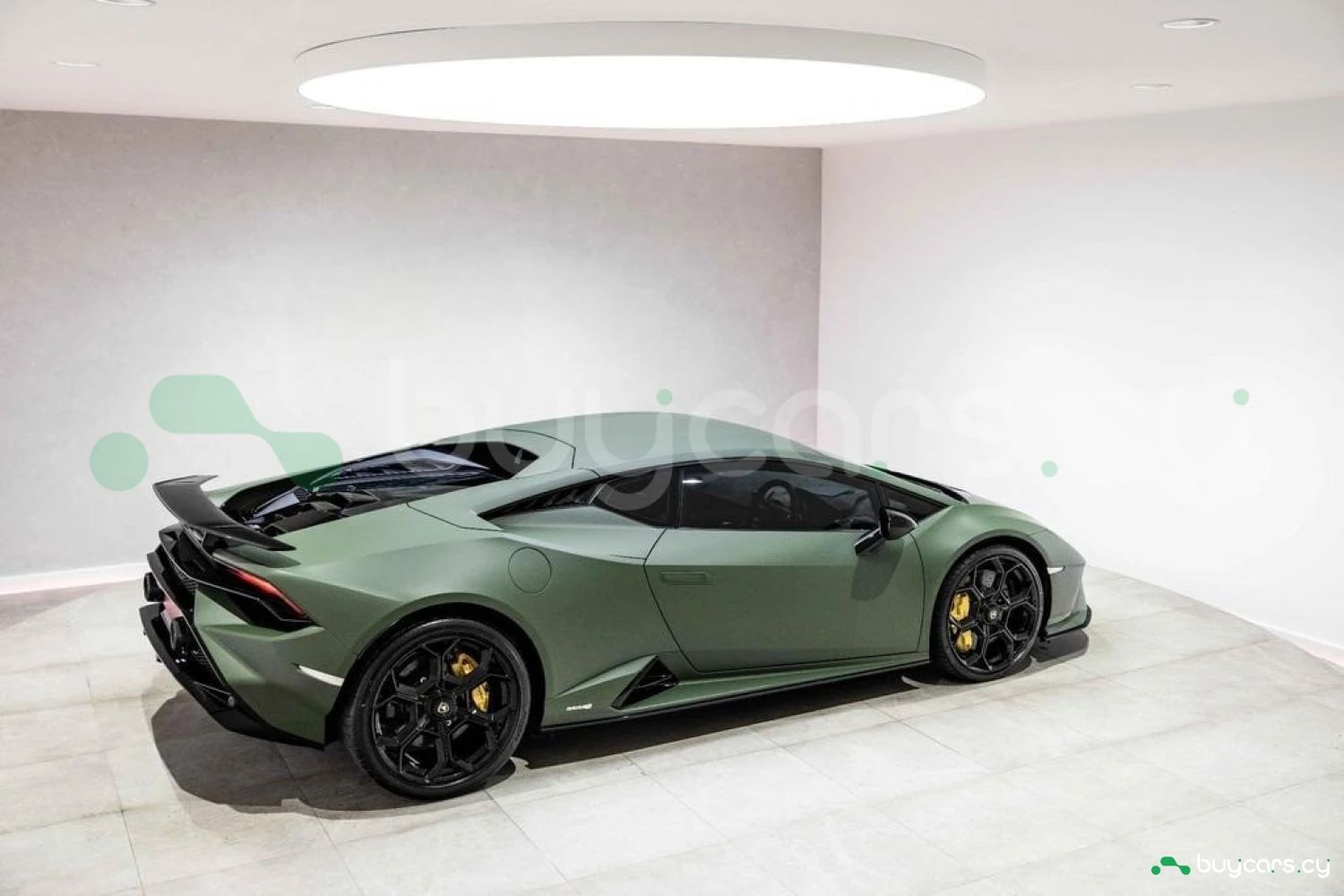 Экстерьер: Матовый зеленый виниловый кузов (включая скрытые зоны) придает автомобилю уникальный облик. 20-дюймовые легкосплавные диски Damiso Shiny Black с центральной гайкой Monolock в черном цвете усиливают спортивный характер. Желтые карбон-керамические тормозные суппорты в сочетании с карбон-керамическими дисками с внутренней вентиляцией и перфорацией обеспечивают высокую эффективность торможения. Задний бампер и диффузор в глянцевом черном цвете (Ad Personam), черный глянцевый логотип Lamborghini на задней панели и стильный пакет в глянцевом черном цвете подчеркивают эксклюзивность дизайна. Система подъема передней оси (Lifting System) помогает преодолевать препятствия и уклоны.
