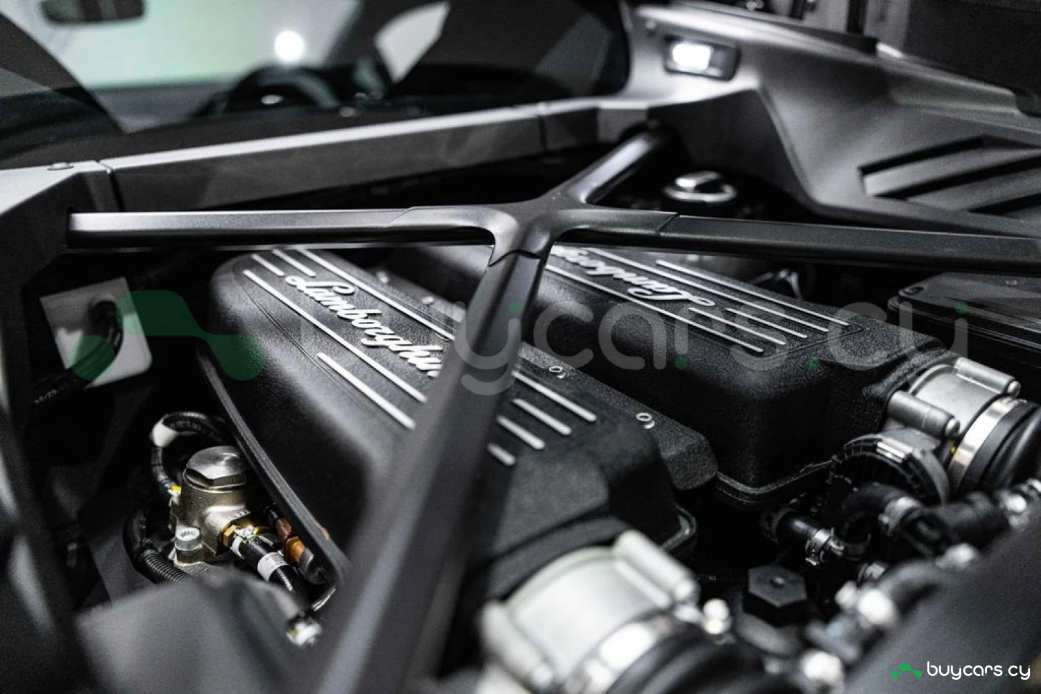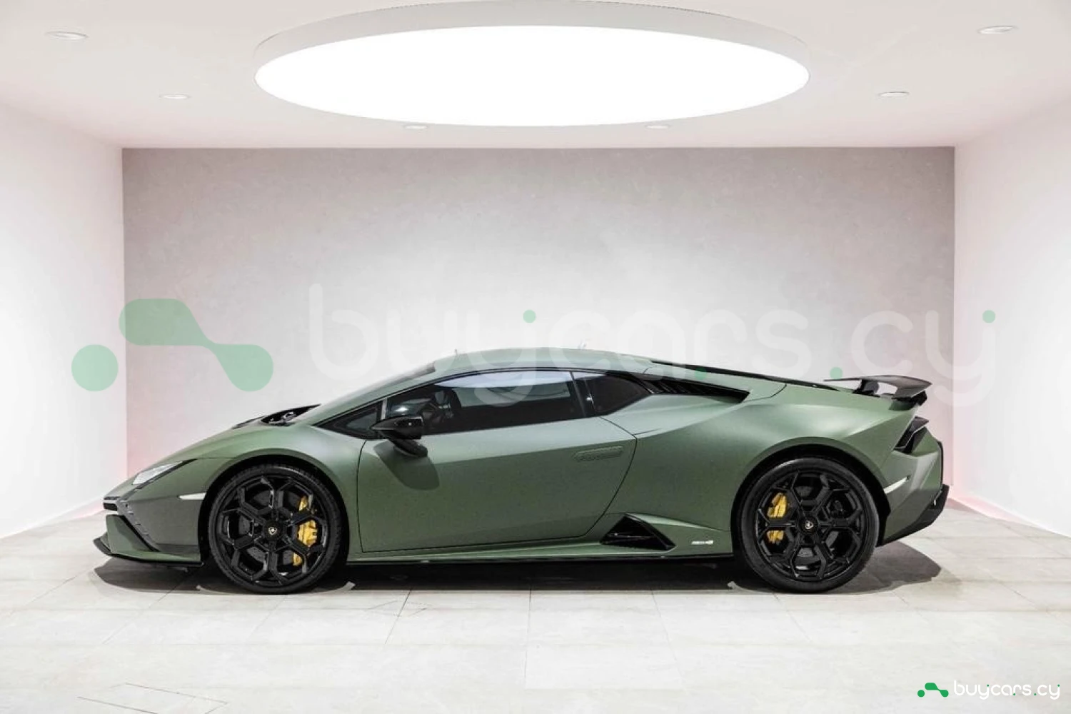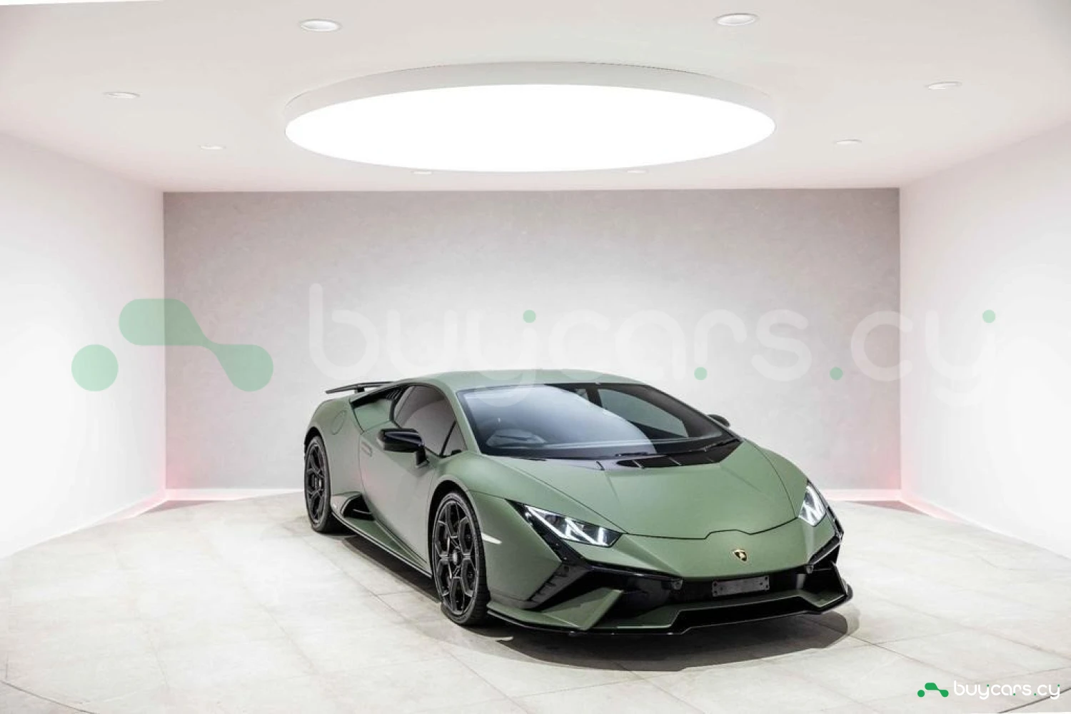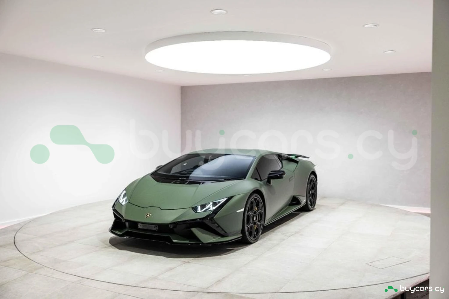 Экстерьер: Матовый зеленый виниловый кузов (включая скрытые зоны) придает автомобилю уникальный облик. 20-дюймовые легкосплавные диски Damiso Shiny Black с центральной гайкой Monolock в черном цвете усиливают спортивный характер. Желтые карбон-керамические тормозные суппорты в сочетании с карбон-керамическими дисками с внутренней вентиляцией и перфорацией обеспечивают высокую эффективность торможения. Задний бампер и диффузор в глянцевом черном цвете (Ad Personam), черный глянцевый логотип Lamborghini на задней панели и стильный пакет в глянцевом черном цвете подчеркивают эксклюзивность дизайна. Система подъема передней оси (Lifting System) помогает преодолевать препятствия и уклоны.