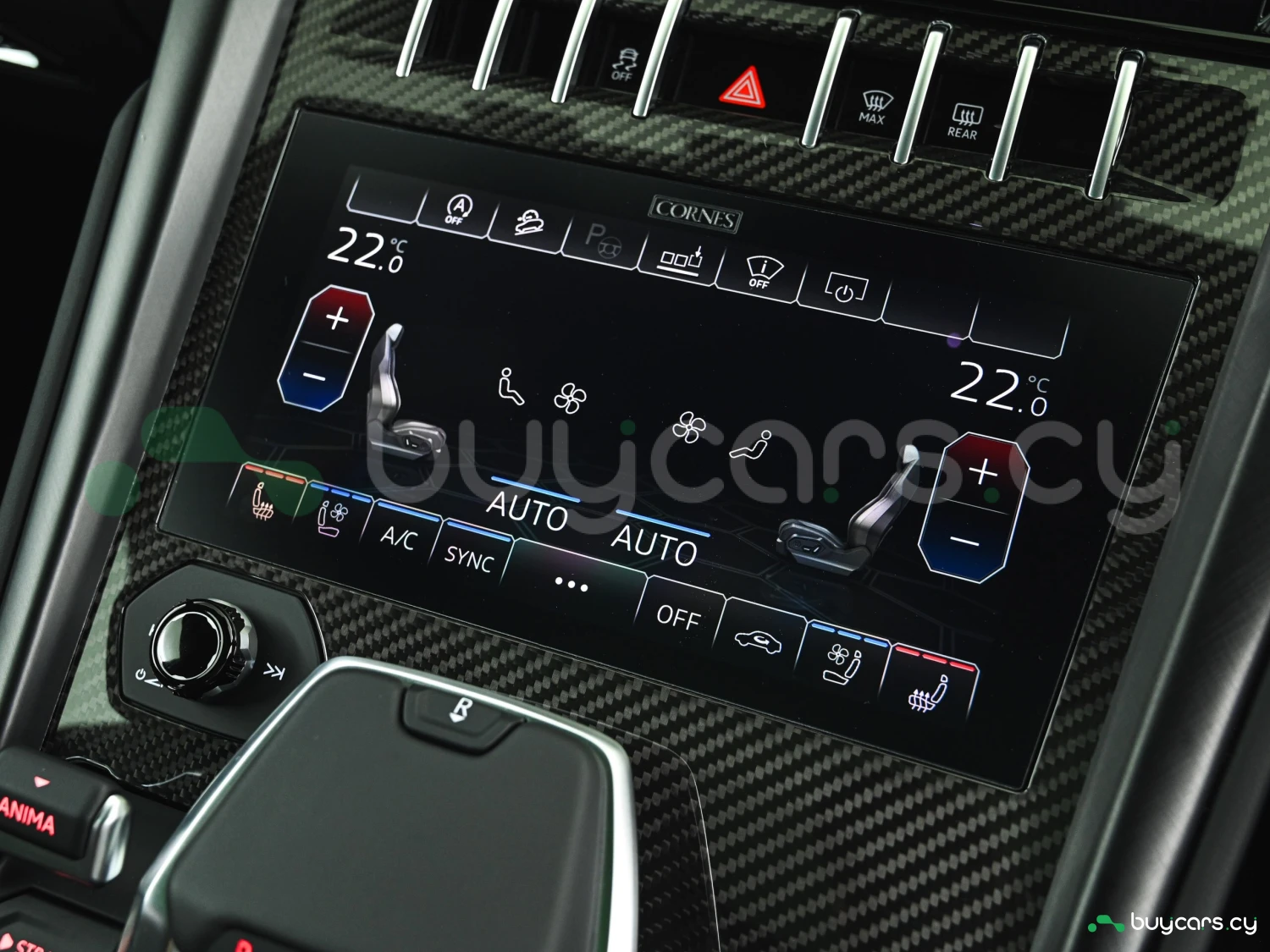 Салон выполнен из высококачественной кожи, алькантары, углеродного волокна и алюминия. Внутри — цифровая приборная панель, два сенсорных дисплея для мультимедиа и климата, фирменный селектор ANIMA и 4-зонный климат-контроль. В стандартной комплектации — подогрев и вентиляция передних сидений, Apple CarPlay, Android Auto, а также опционально — премиальная аудиосистема Bang & Olufsen.
