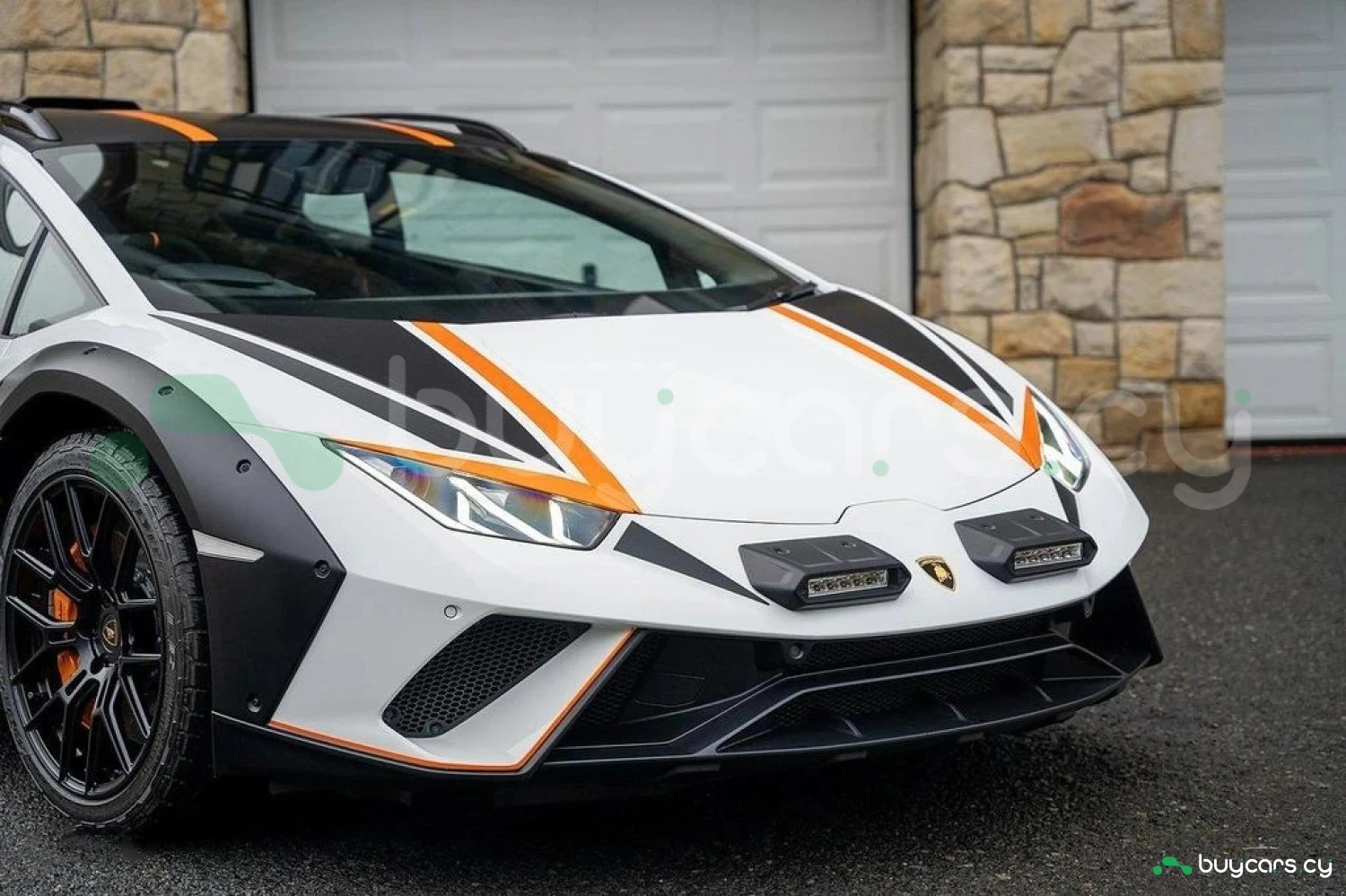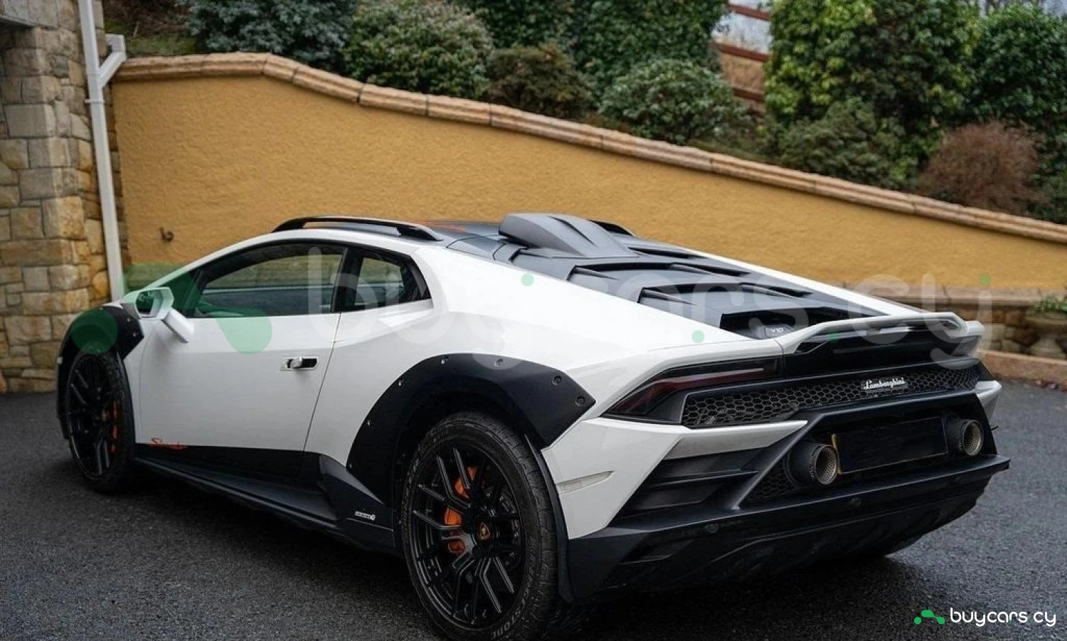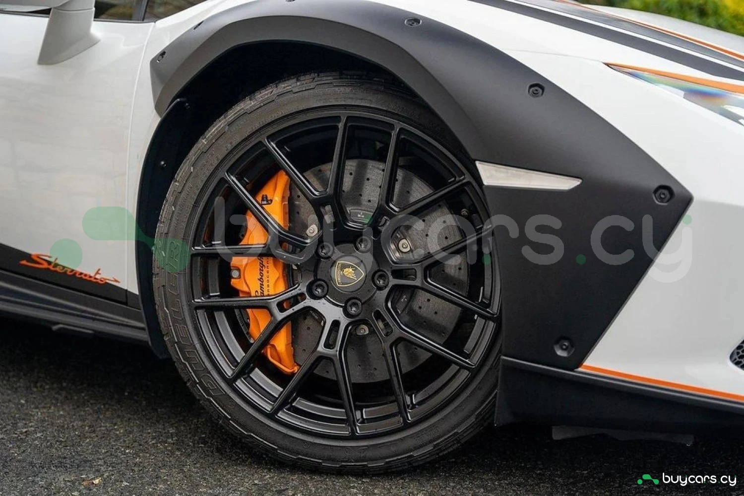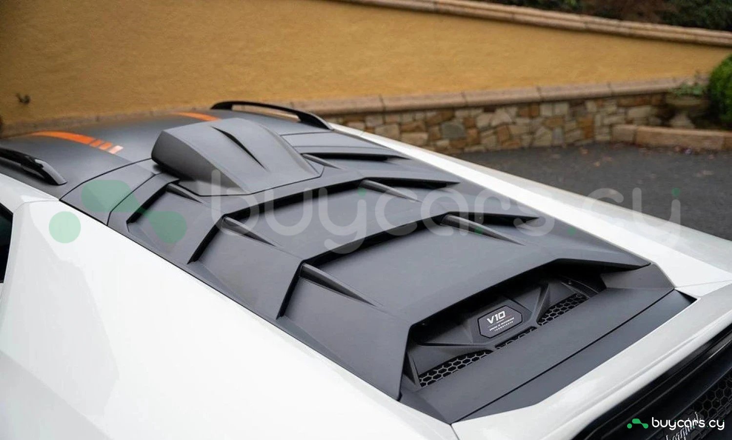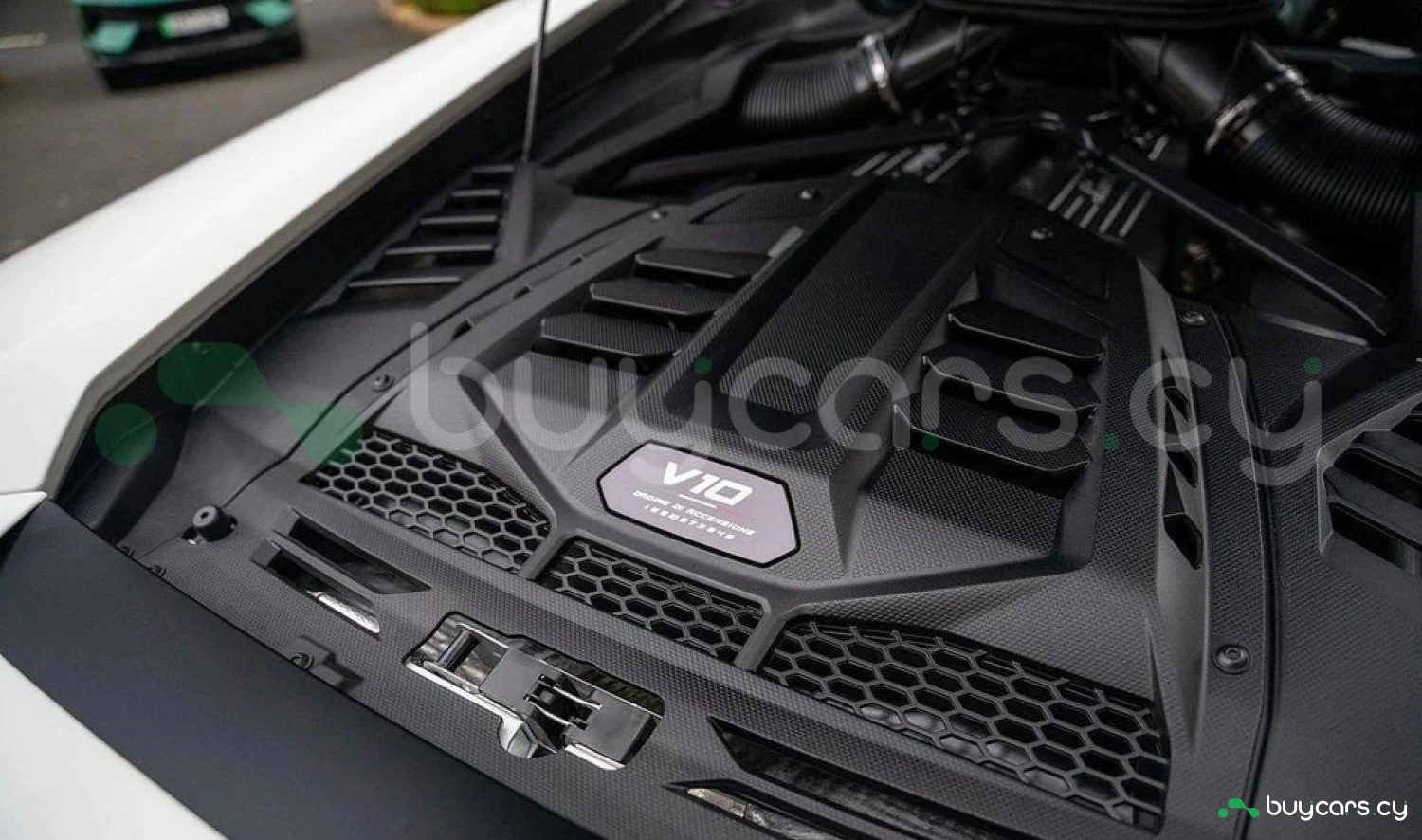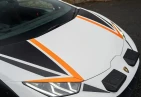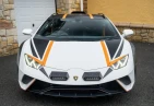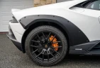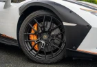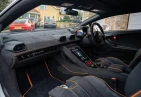 Экстерьер: Белый цвет кузова придает автомобилю элегантный и динамичный вид. Huracán оснащен 19-дюймовыми легкосплавными дисками Cerere Casted Silver, обутыми в шины Bridgestone Dueler (235/40 R19 спереди, 285/40 R19 сзади) для лучшего сцепления с дорогой. Электрически регулируемые, подогреваемые и складывающиеся боковые зеркала с креплением на одной опоре улучшают аэродинамику и удобство использования. Внешний вид дополняют матовые черные рейлинги на крыше, матовые черные боковые зеркала, серебристые карбон-керамические тормозные суппорты и выхлопные патрубки в матово-сером цвете.