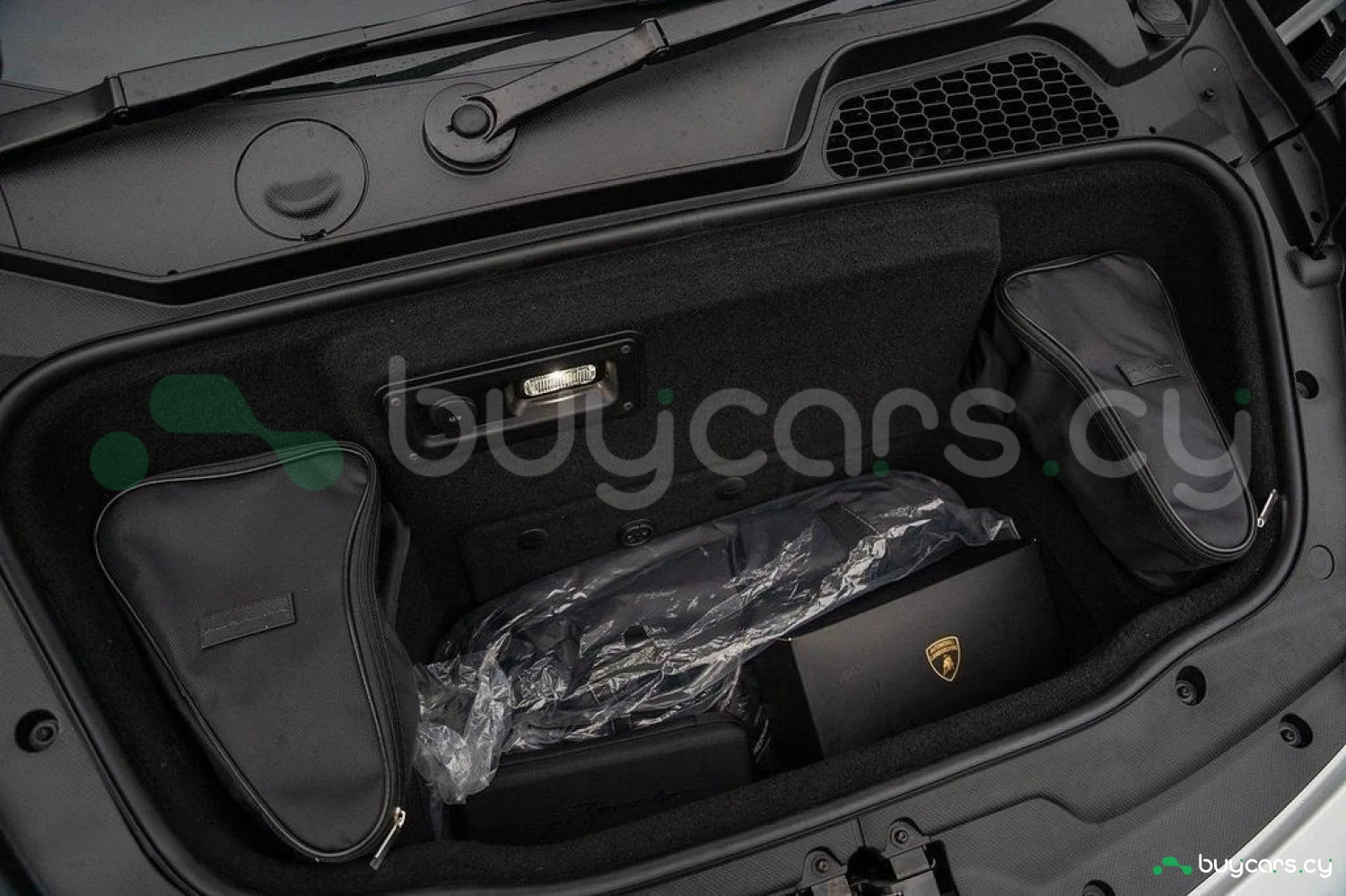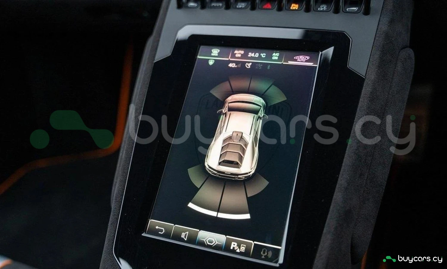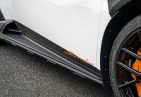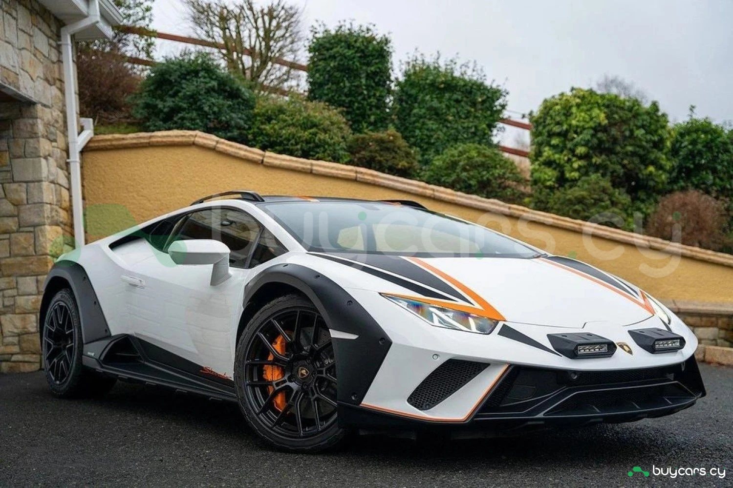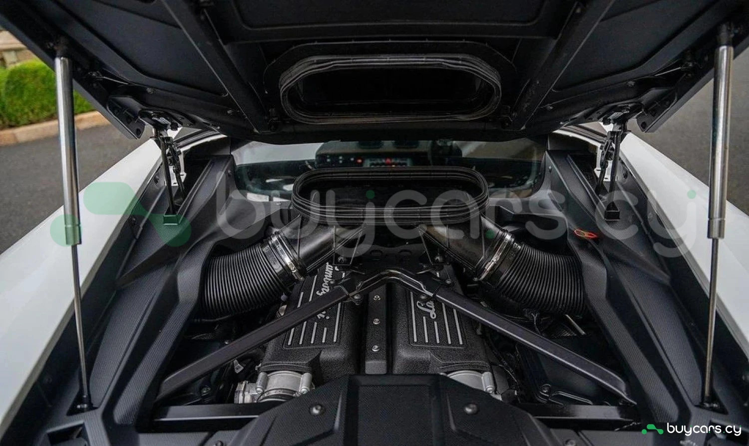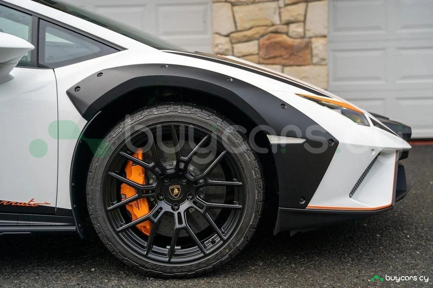 Экстерьер: Белый цвет кузова придает автомобилю элегантный и динамичный вид. Huracán оснащен 19-дюймовыми легкосплавными дисками Cerere Casted Silver, обутыми в шины Bridgestone Dueler (235/40 R19 спереди, 285/40 R19 сзади) для лучшего сцепления с дорогой. Электрически регулируемые, подогреваемые и складывающиеся боковые зеркала с креплением на одной опоре улучшают аэродинамику и удобство использования. Внешний вид дополняют матовые черные рейлинги на крыше, матовые черные боковые зеркала, серебристые карбон-керамические тормозные суппорты и выхлопные патрубки в матово-сером цвете.