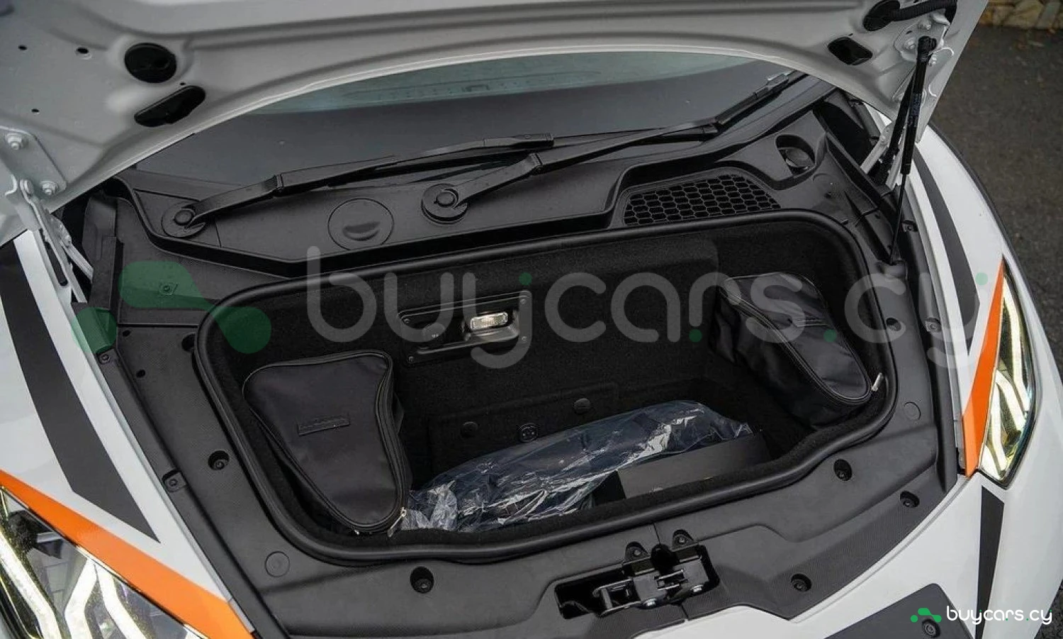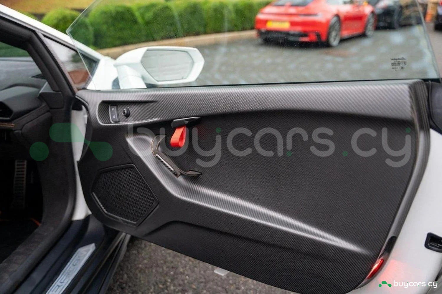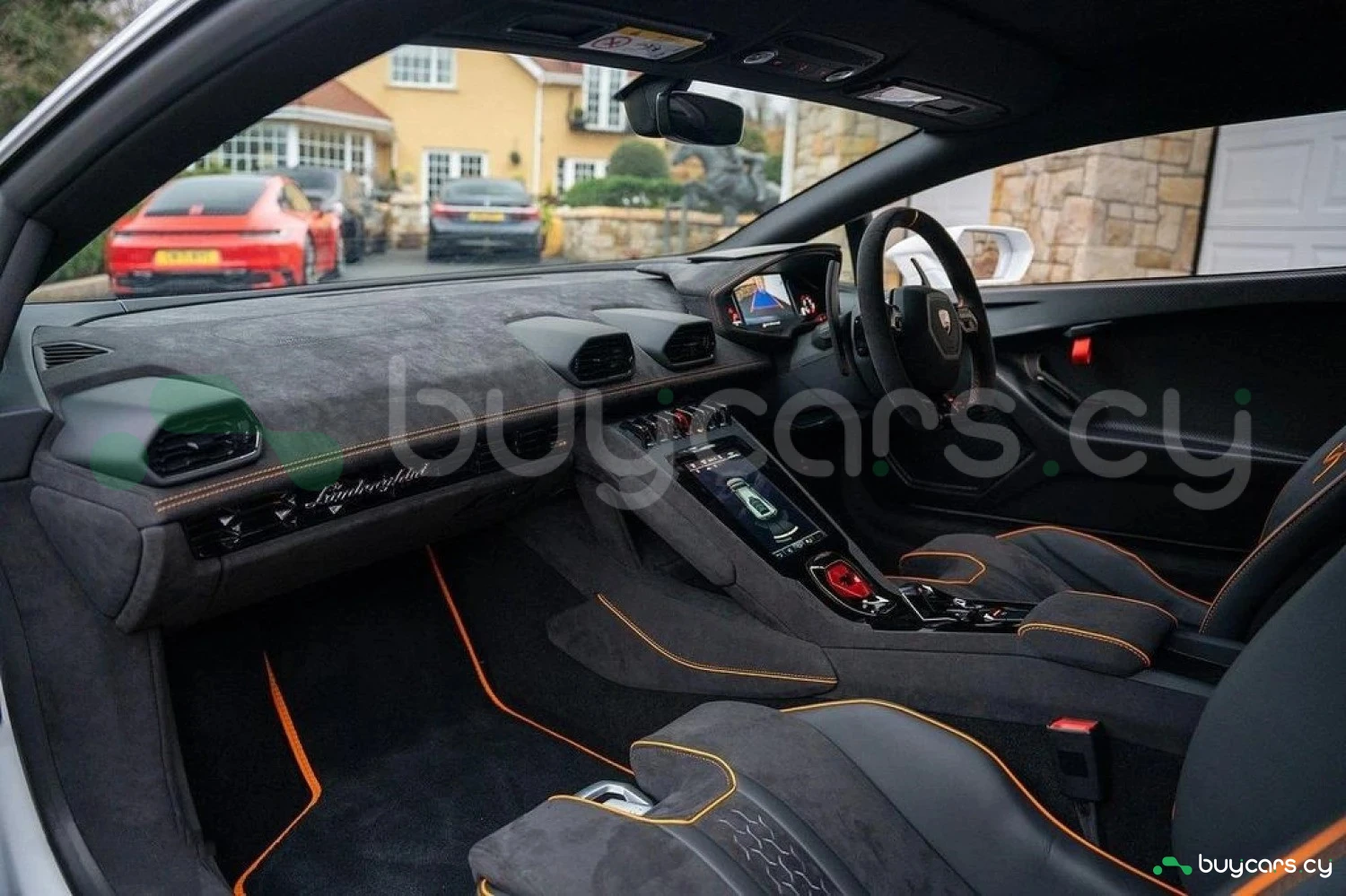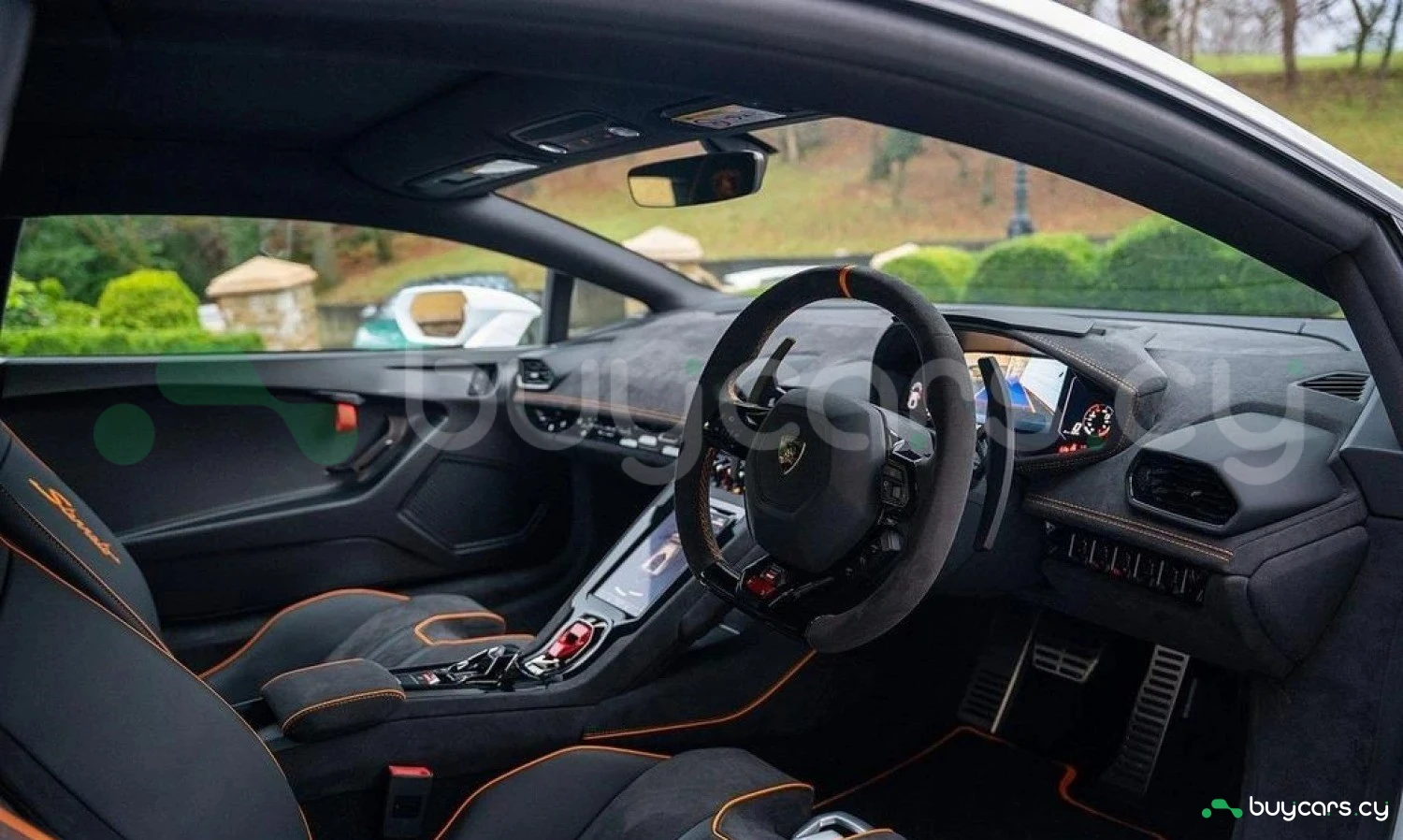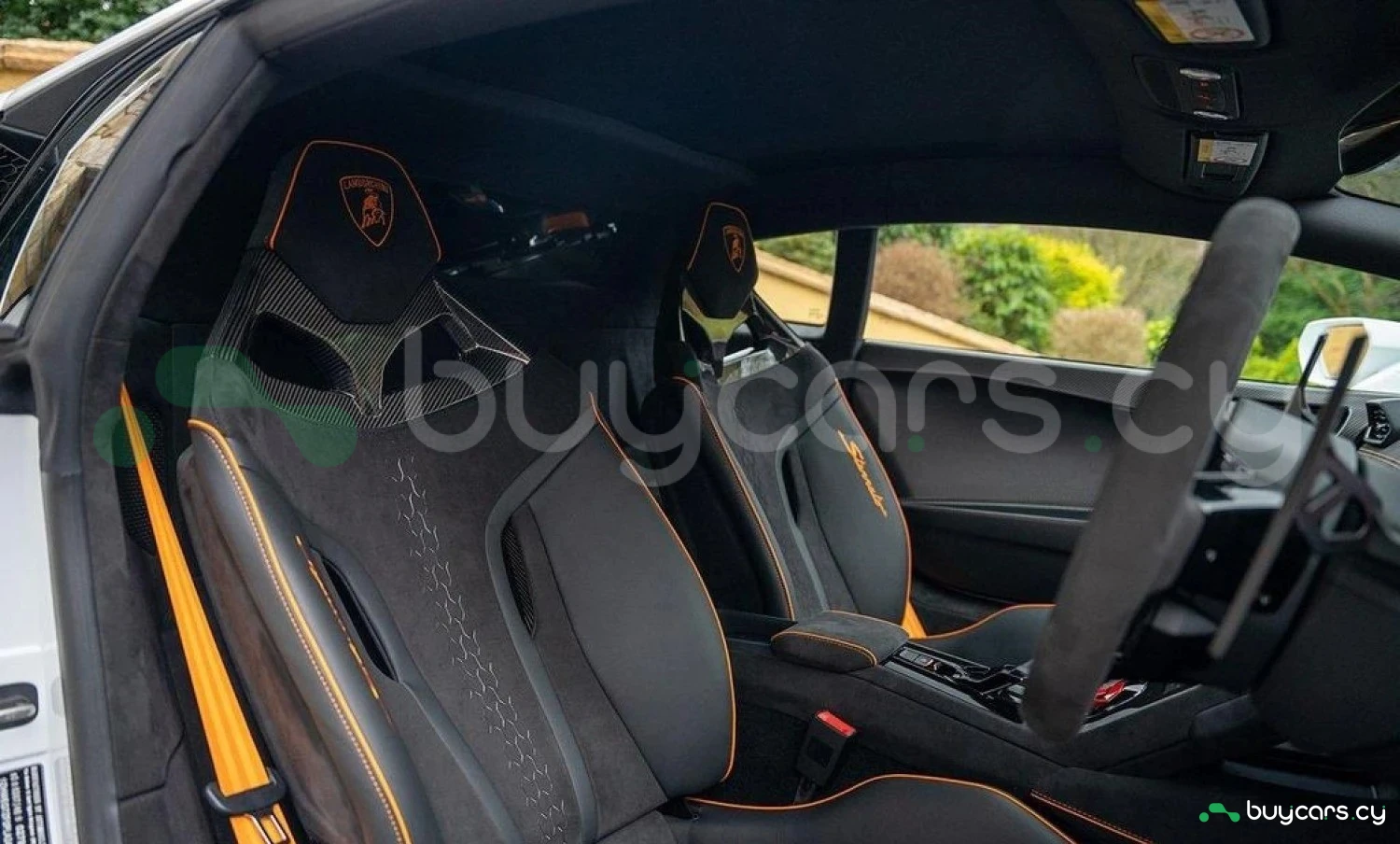 Экстерьер: Белый цвет кузова придает автомобилю элегантный и динамичный вид. Huracán оснащен 19-дюймовыми легкосплавными дисками Cerere Casted Silver, обутыми в шины Bridgestone Dueler (235/40 R19 спереди, 285/40 R19 сзади) для лучшего сцепления с дорогой. Электрически регулируемые, подогреваемые и складывающиеся боковые зеркала с креплением на одной опоре улучшают аэродинамику и удобство использования. Внешний вид дополняют матовые черные рейлинги на крыше, матовые черные боковые зеркала, серебристые карбон-керамические тормозные суппорты и выхлопные патрубки в матово-сером цвете.