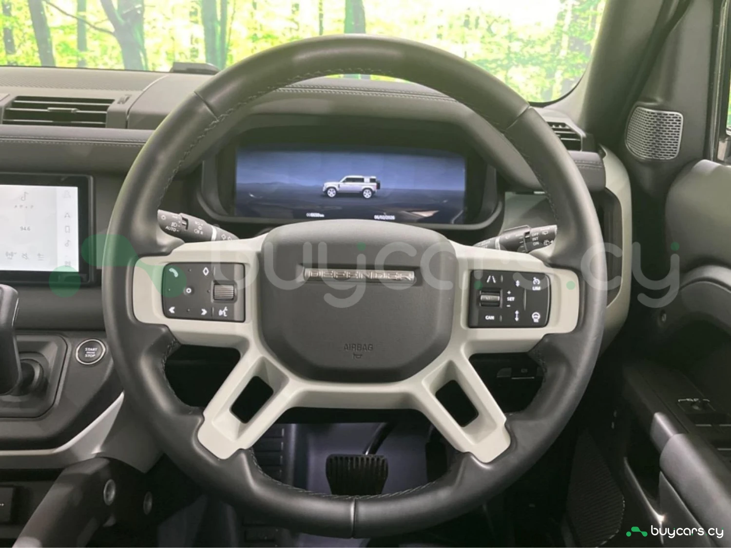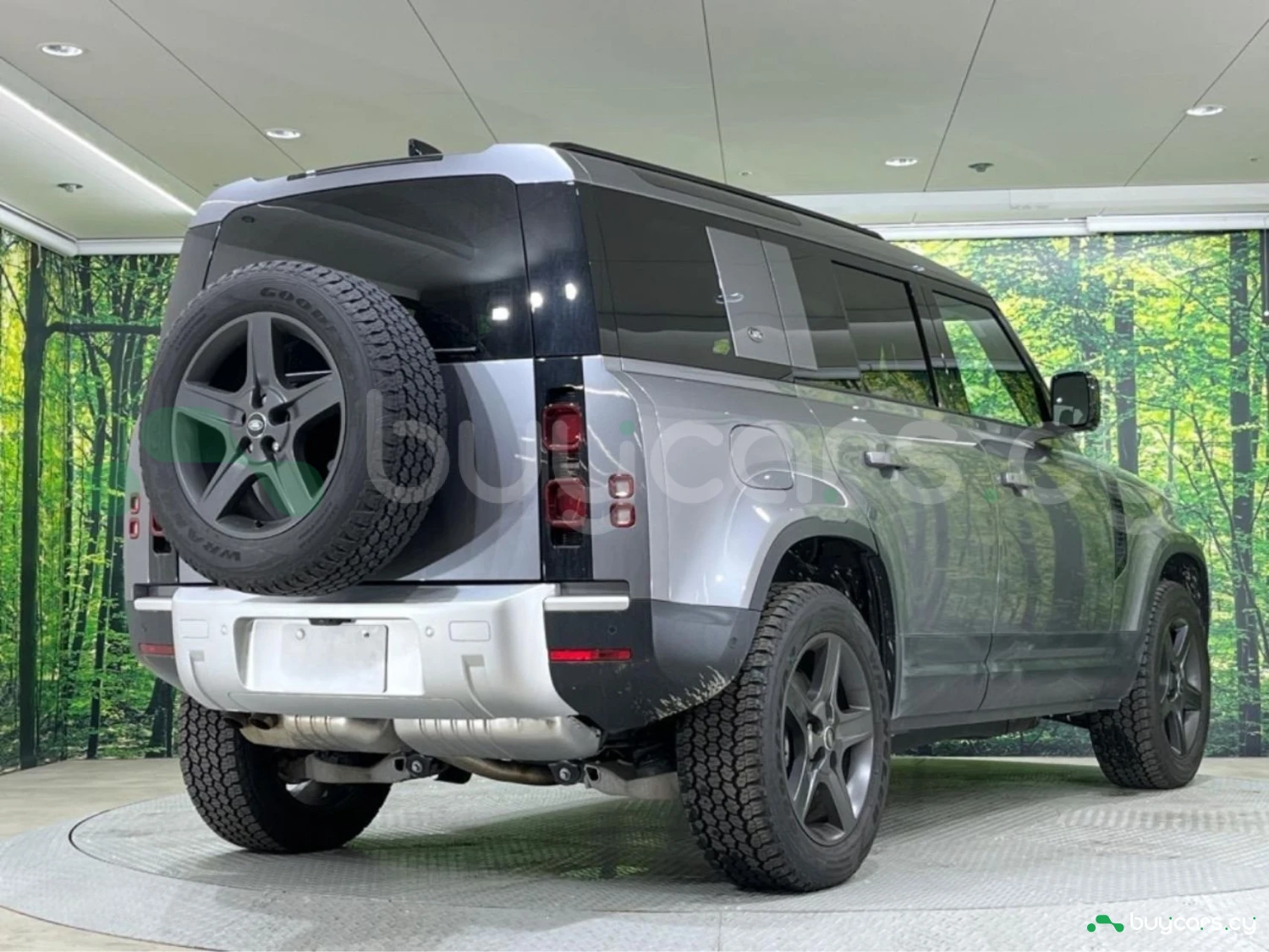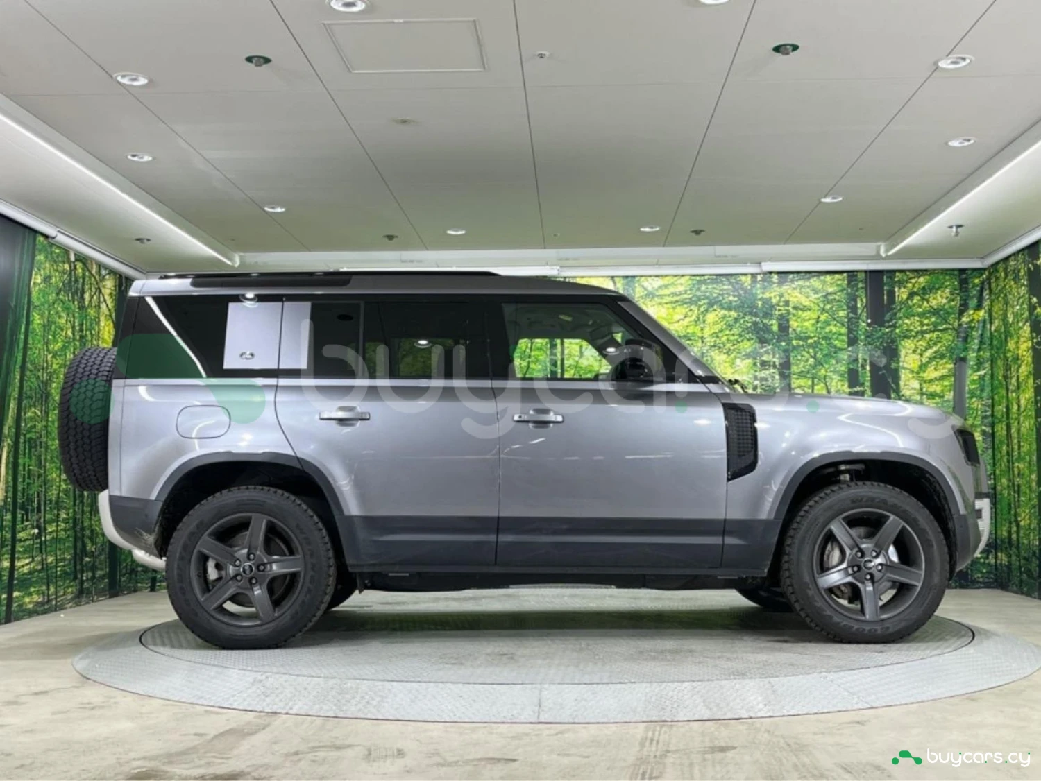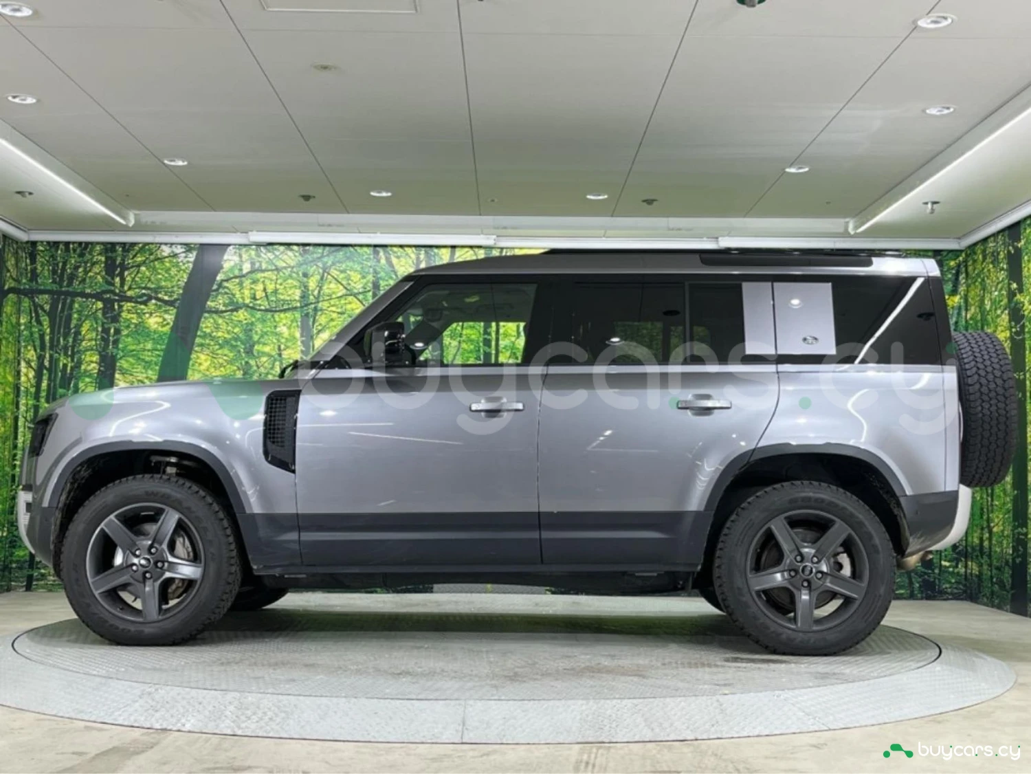 Кузов выполнен в цвете Eiger Gray (Metallic) и подчёркивает узнаваемый дизайн Defender. Светодиодная оптика, рейлинги и легкосплавные диски дополняют практичный и выразительный облик.