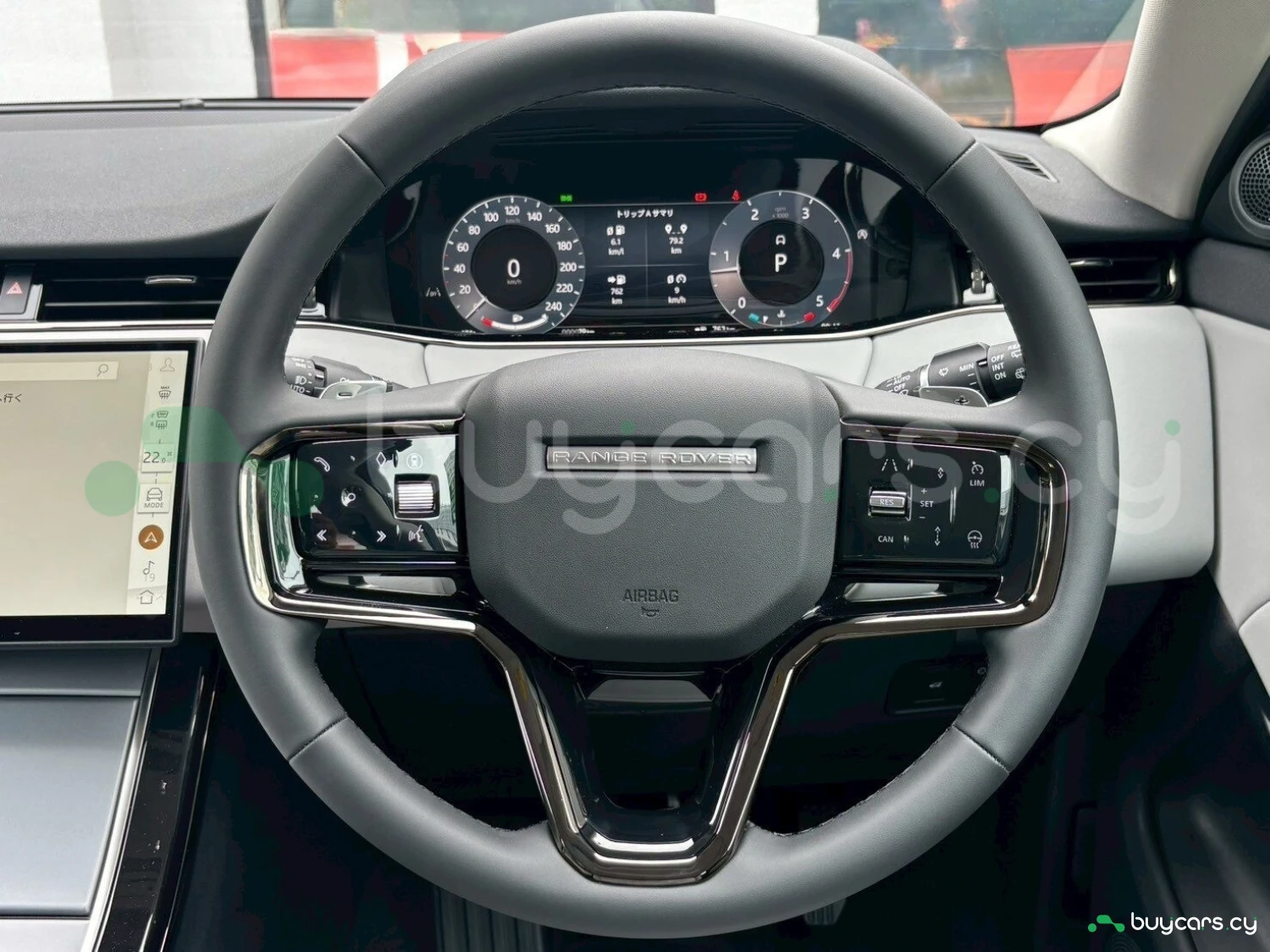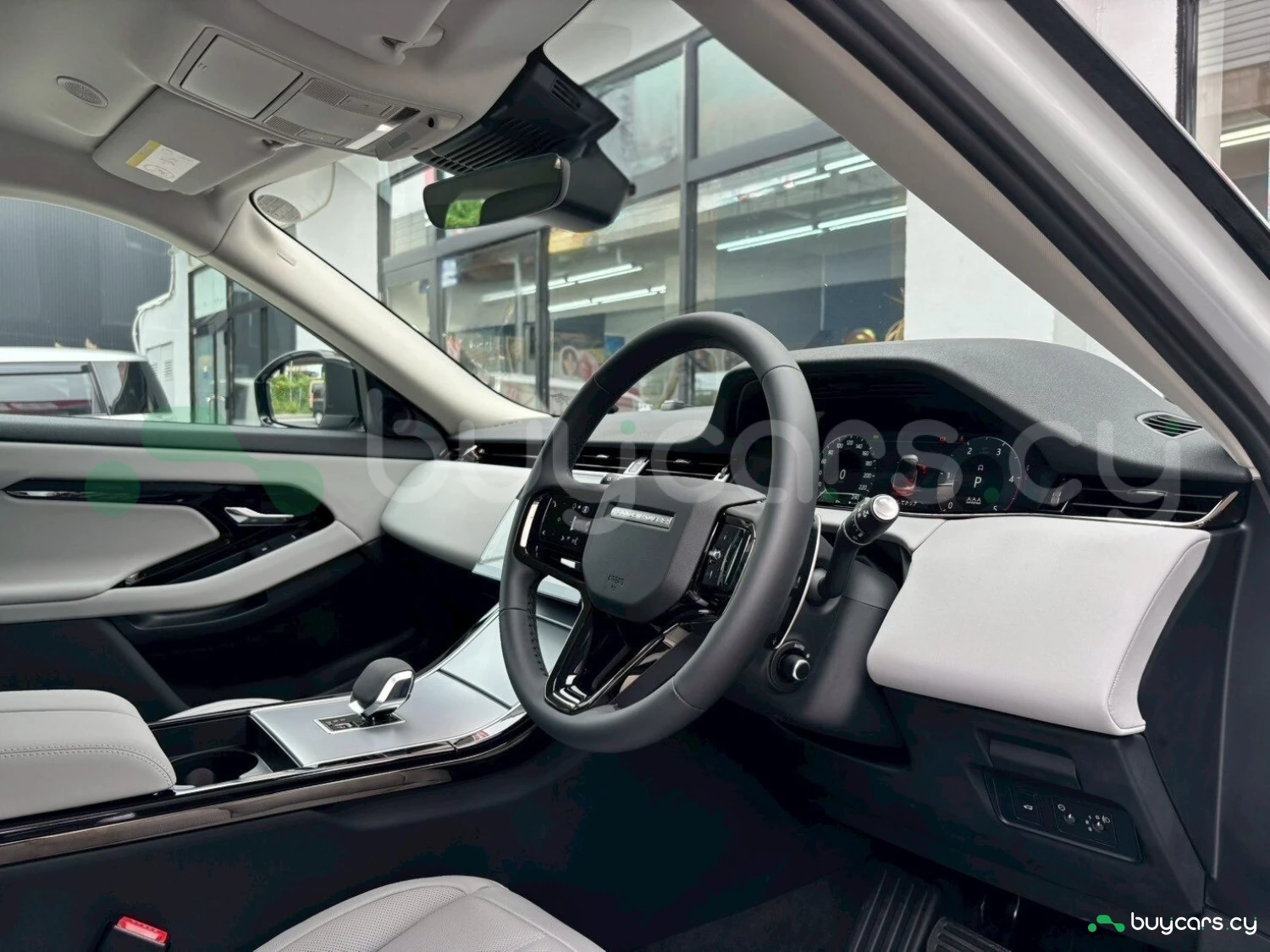 Кузов выполнен в формате кроссовера и окрашен в Fuji White. Внешний вид остаётся сдержанным и практичным, подходящим для Land Rover Range Rover Evoque купить и Land Rover Range Rover Evoque на Кипре.