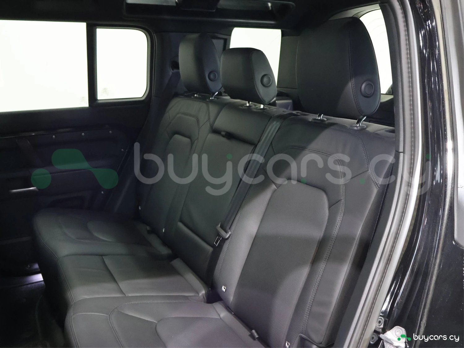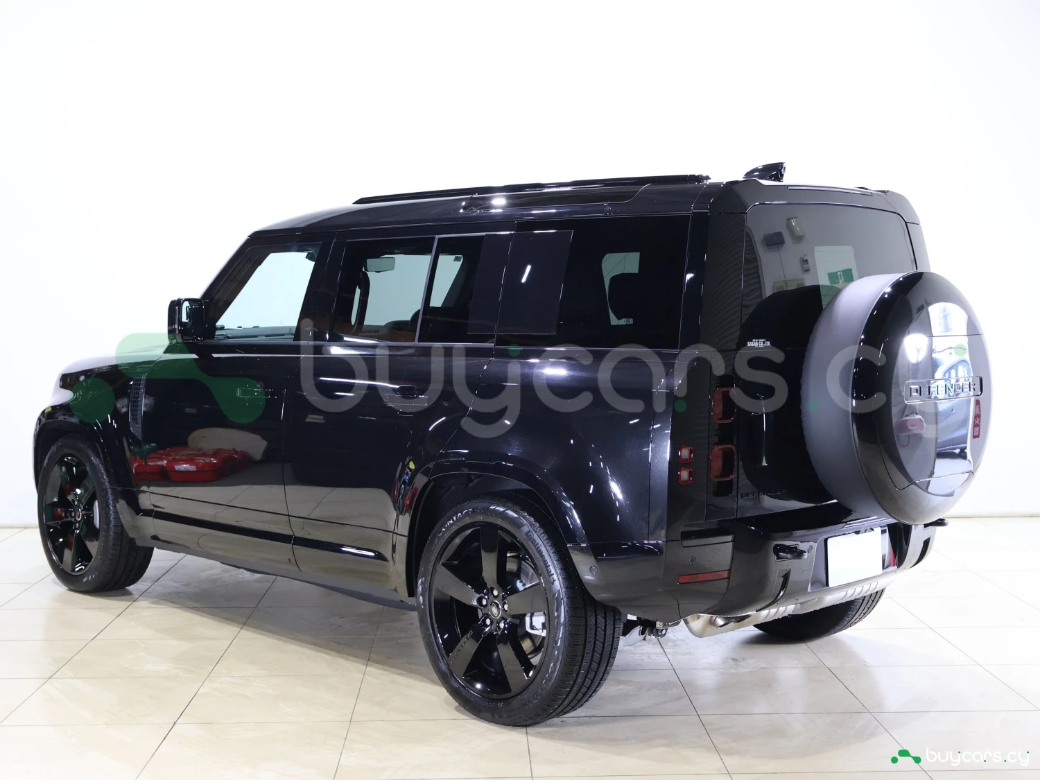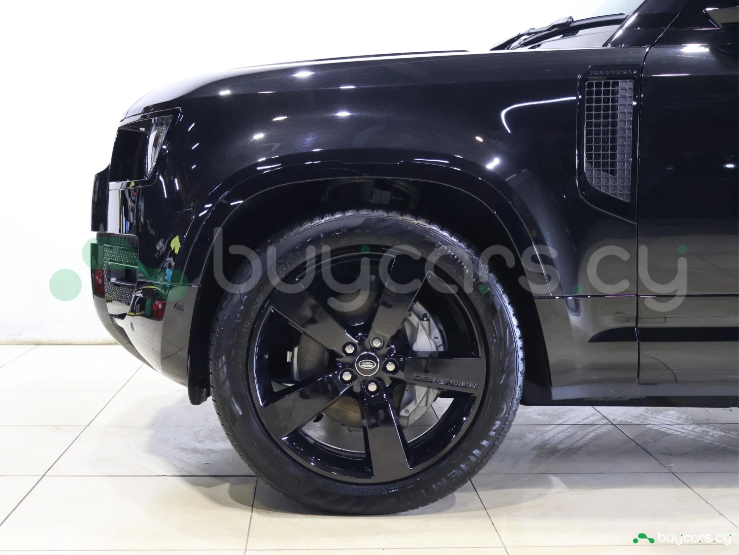 Land Rover Defender на Кипре представлен в кузове внедорожник SUV и цвете Santorini Black Metallic. Внешний вид отличается сдержанным и функциональным силуэтом.