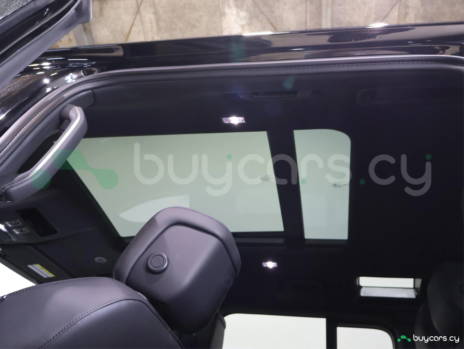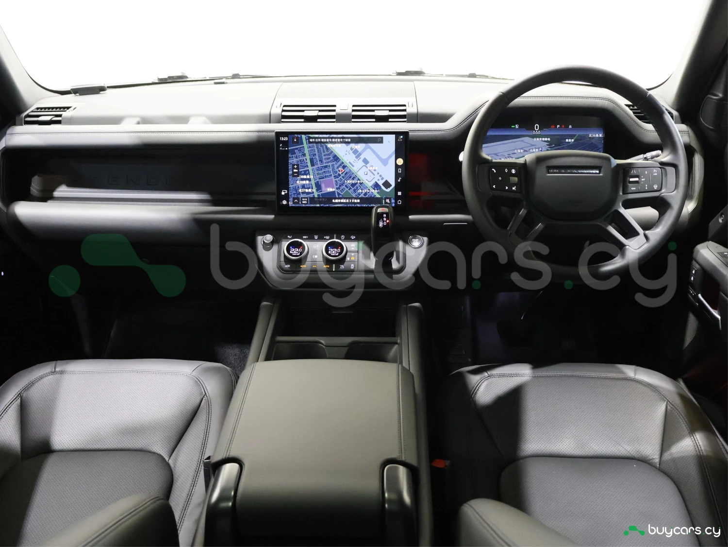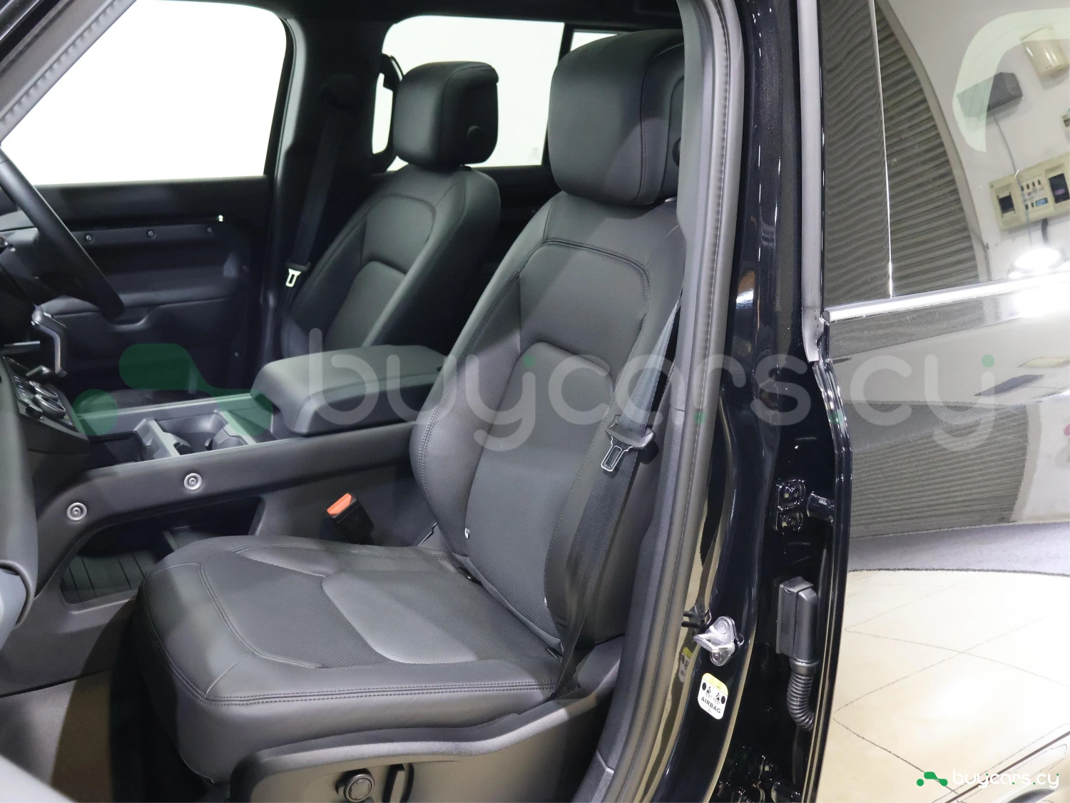 Land Rover Defender на Кипре представлен в кузове внедорожник SUV и цвете Santorini Black Metallic. Внешний вид отличается сдержанным и функциональным силуэтом.