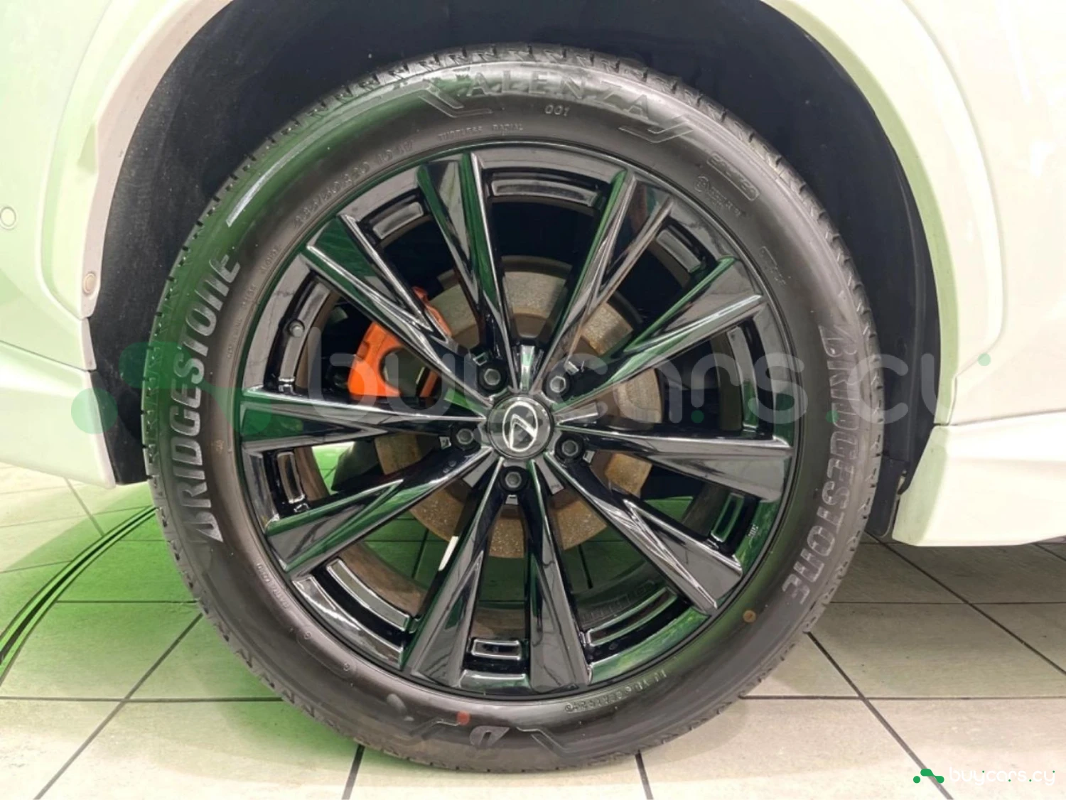 Белый цвет White Nova Glass Flake в сочетании с пакетом F SPORT и аэродинамическим обвесом TRD подчёркивает спортивный характер модели, а оранжевые суппорты и фирменные диски усиливают её выразительный стиль.