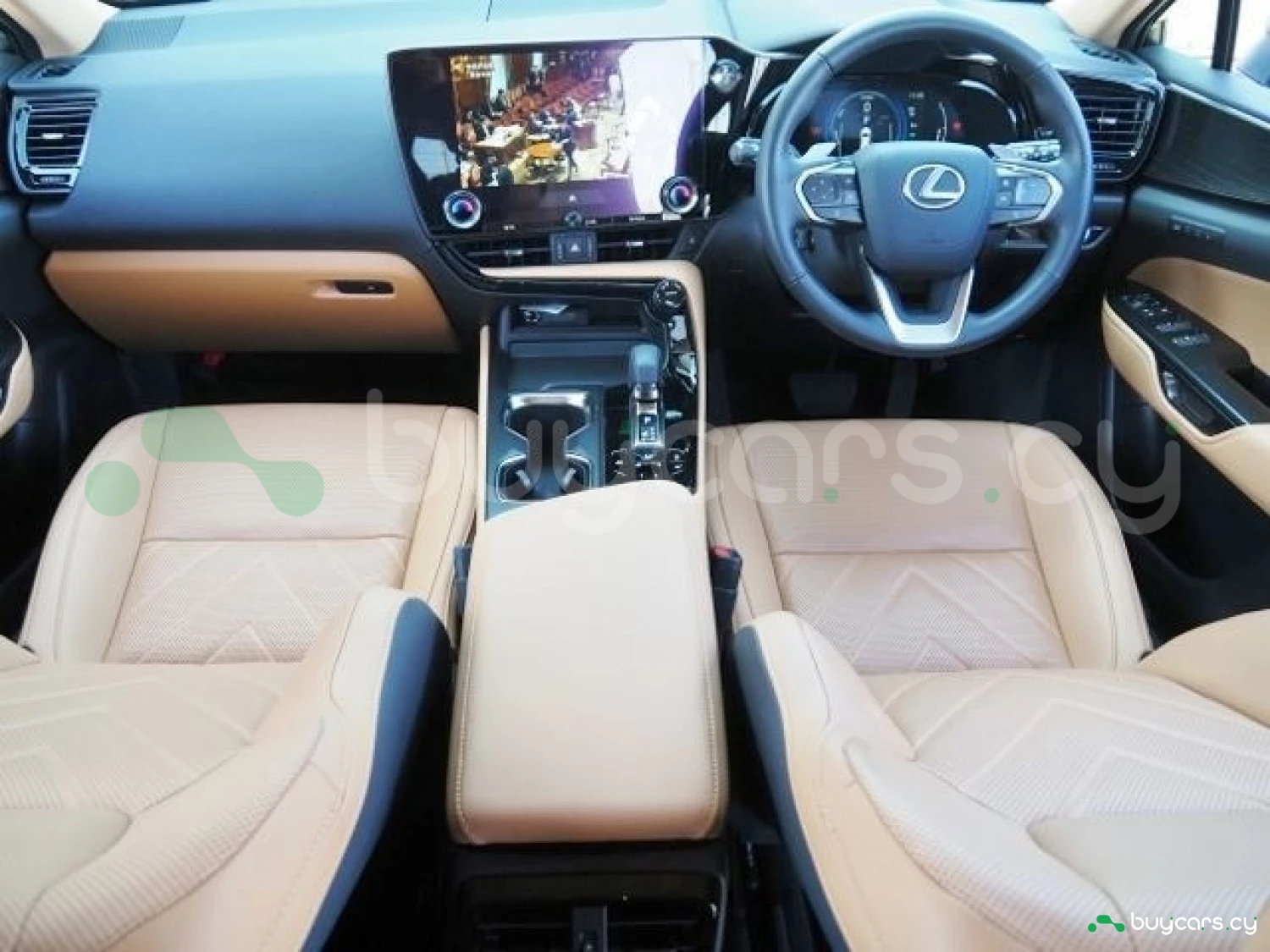 NX350h оборудован мультимедийной системой с 14-дюймовым дисплеем, функцией телевизора и встроенной навигацией. Для удобства водителя и пассажиров доступны электропривод багажника с функцией бесконтактного открытия, автоматический климат-контроль (AC), электростеклоподъёмники (PW) и аудиосистема высокого класса. Розетка на 100V/100W делает автомобиль ещё более практичным.