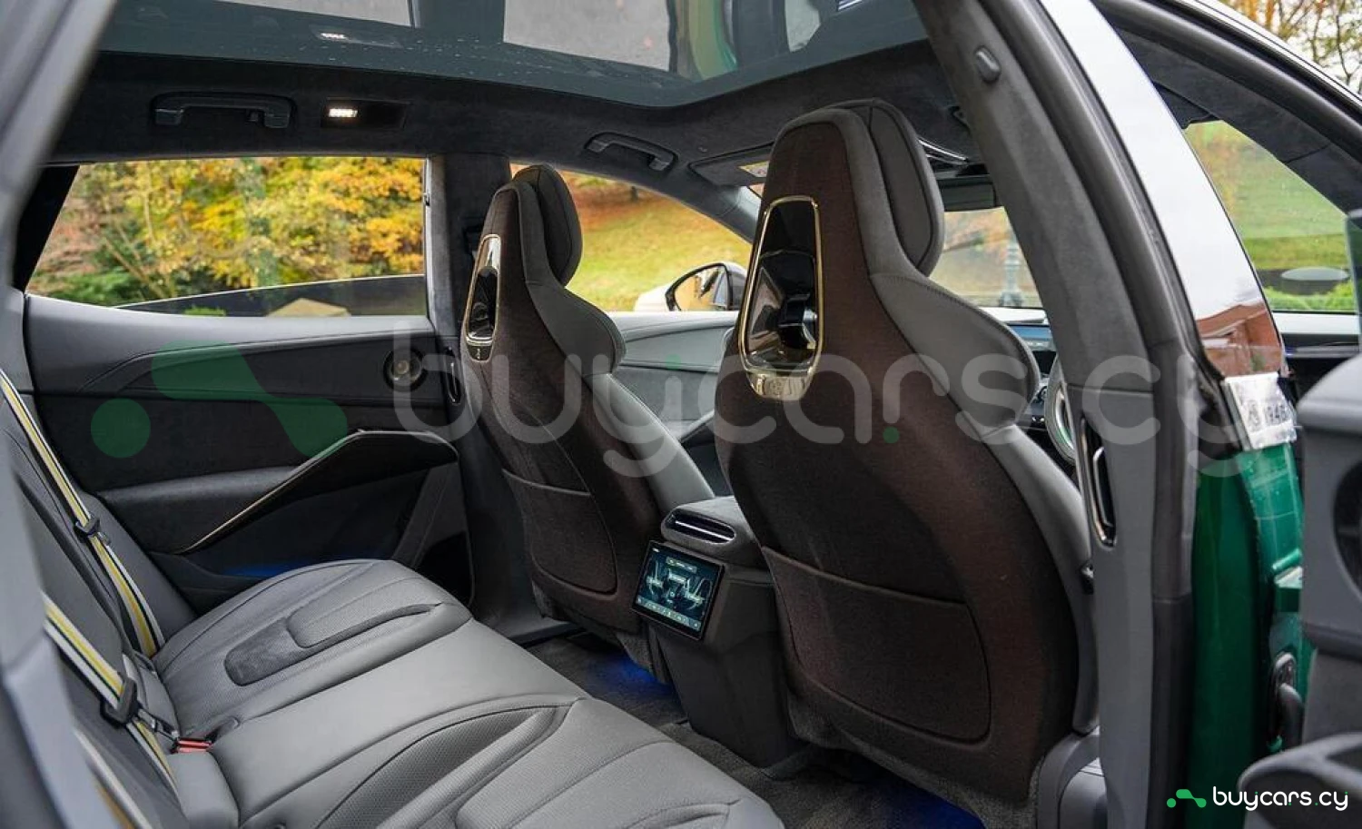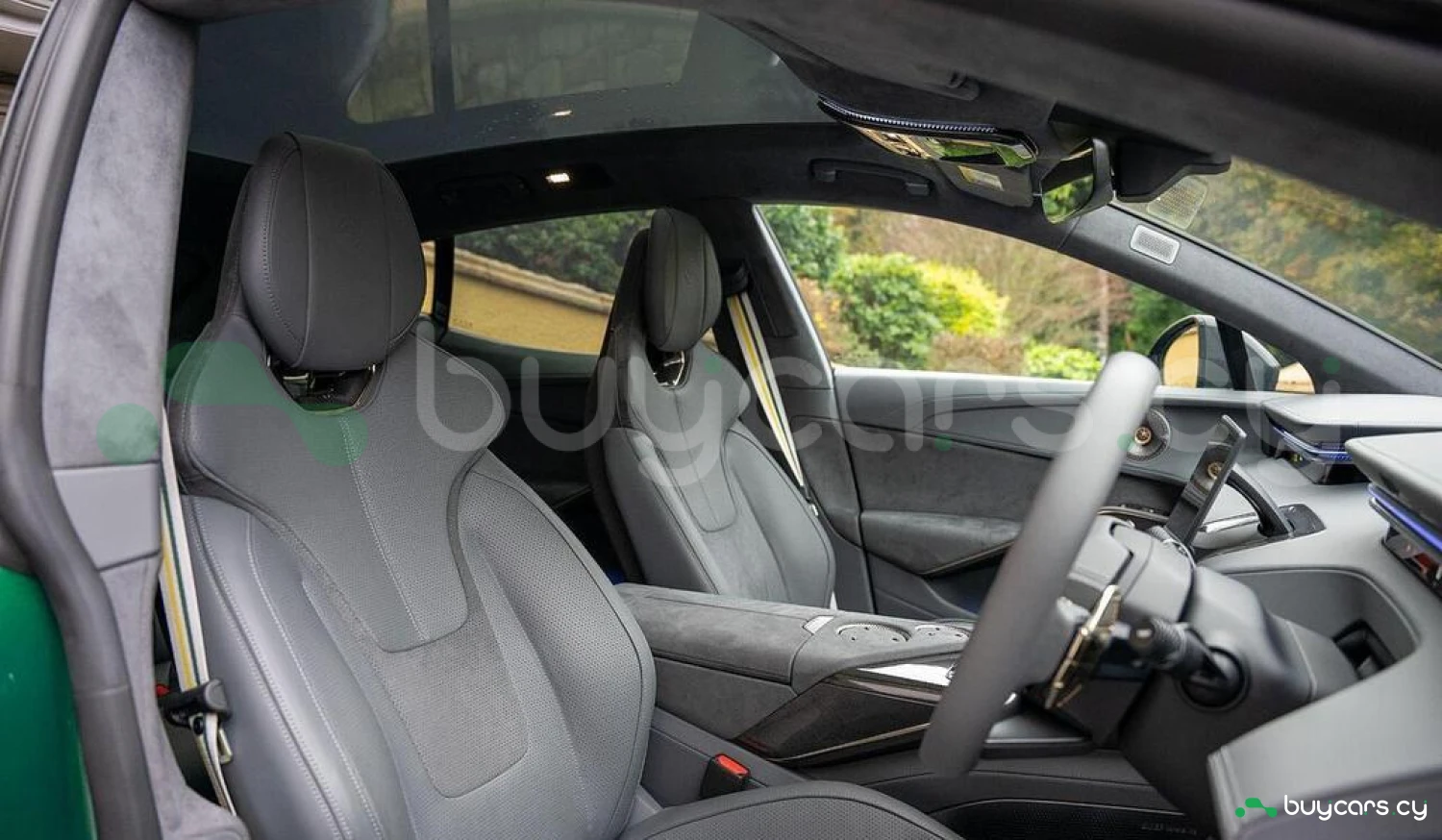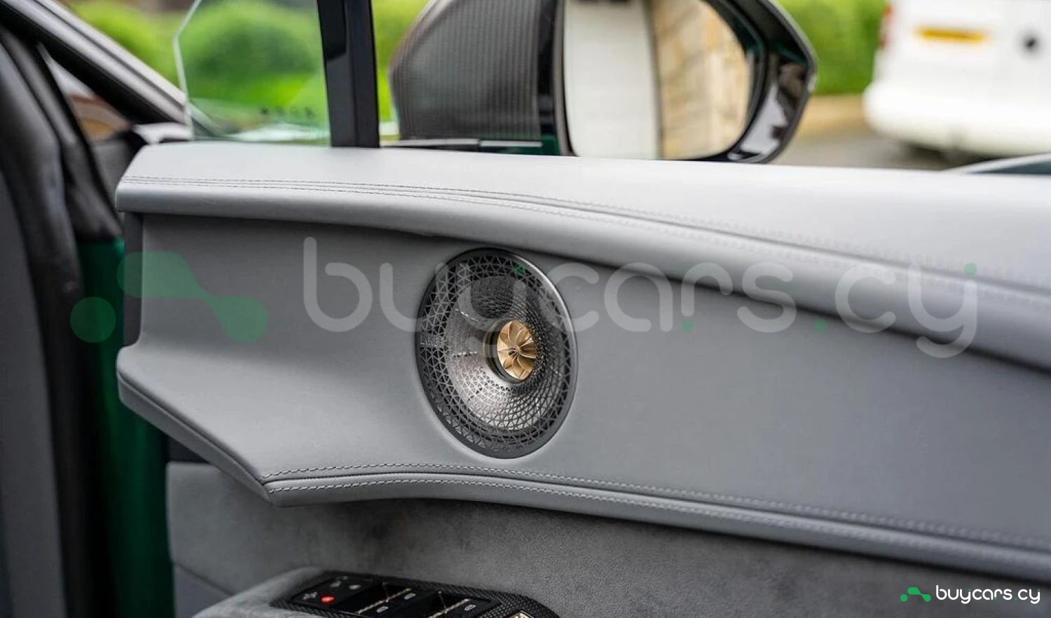 Экстерьер и дизайн: Металлик Galloway Green, 23" многоспицевые легкосплавные диски глянцево-черного цвета, активный задний спойлер, аэродинамический пакет, карбоновый внешний пакет, складывающиеся и подогреваемые зеркала, тонировка стекол, подсвечиваемые пороги, черные логотипы, черный стиль-пакет, миллиметровый радар, выдвижной лидар, Cantilevered Carbon Fibre Floating Split Roof Spoiler, глянцевая черная крыша, адаптивные LED-фары дальнего света, дневные ходовые огни с динамическими поворотниками.