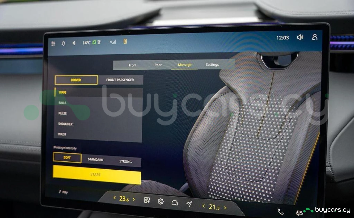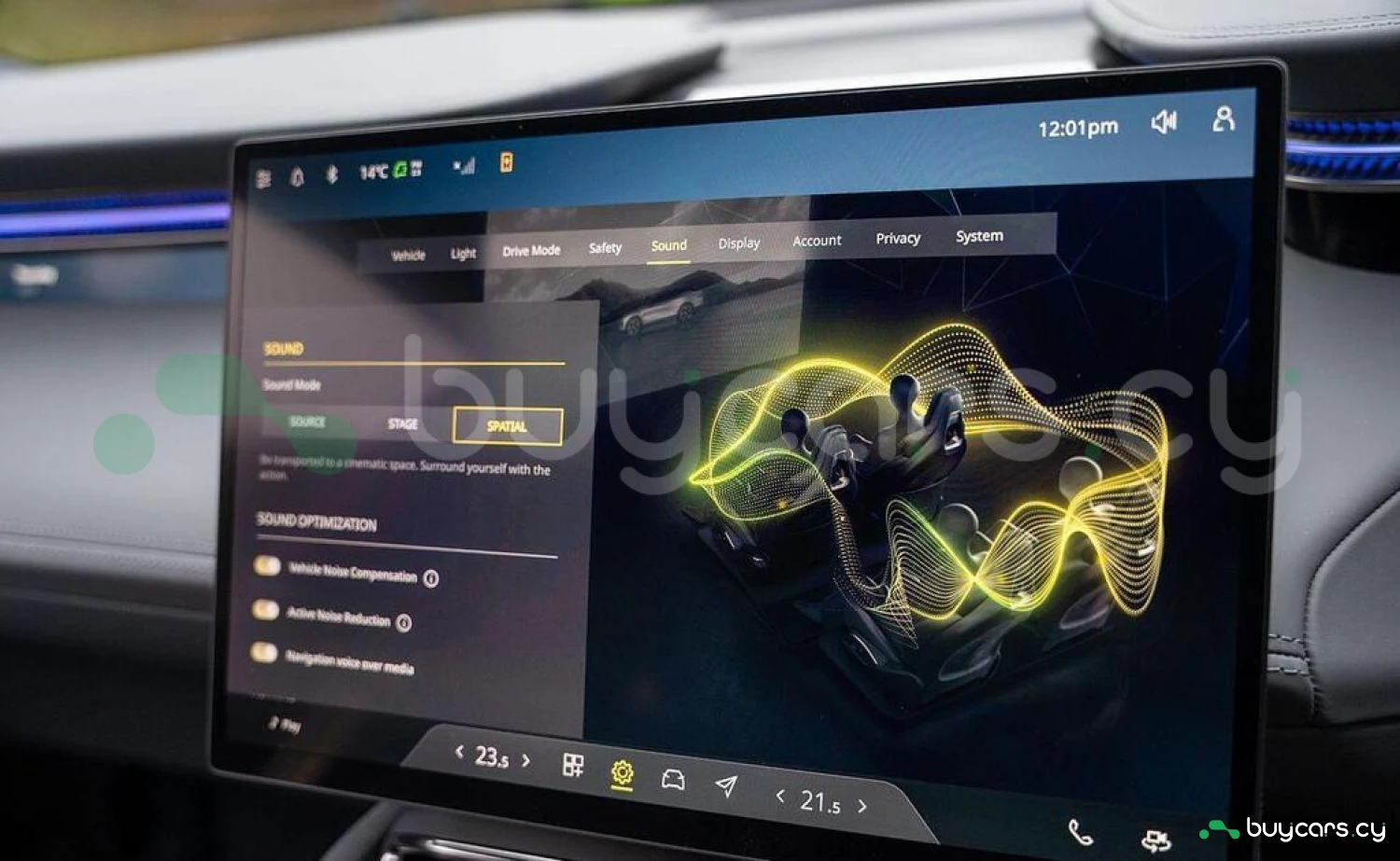Инфотейнмент и аудиосистема: 15.1" HD OLED дисплей, аудиосистема KEF Reference с Dolby Atmos, спутниковая навигация, беспроводные Apple CarPlay и Android Auto, поддержка 5G, аварийный вызов (E-Call), интеллектуальная мультимедийная система, дисплей для пассажира, Bluetooth, беспроводная зарядка смартфона.