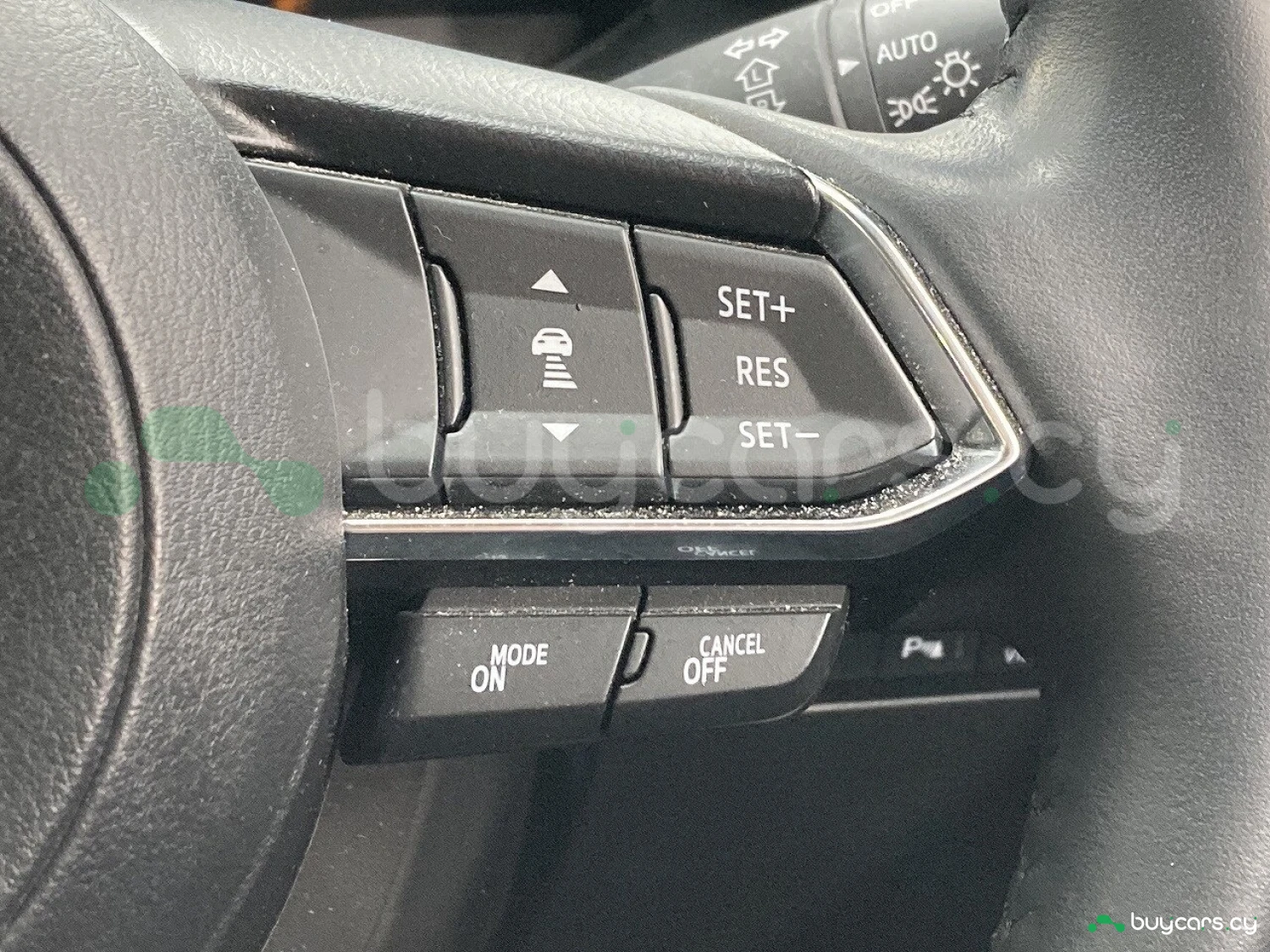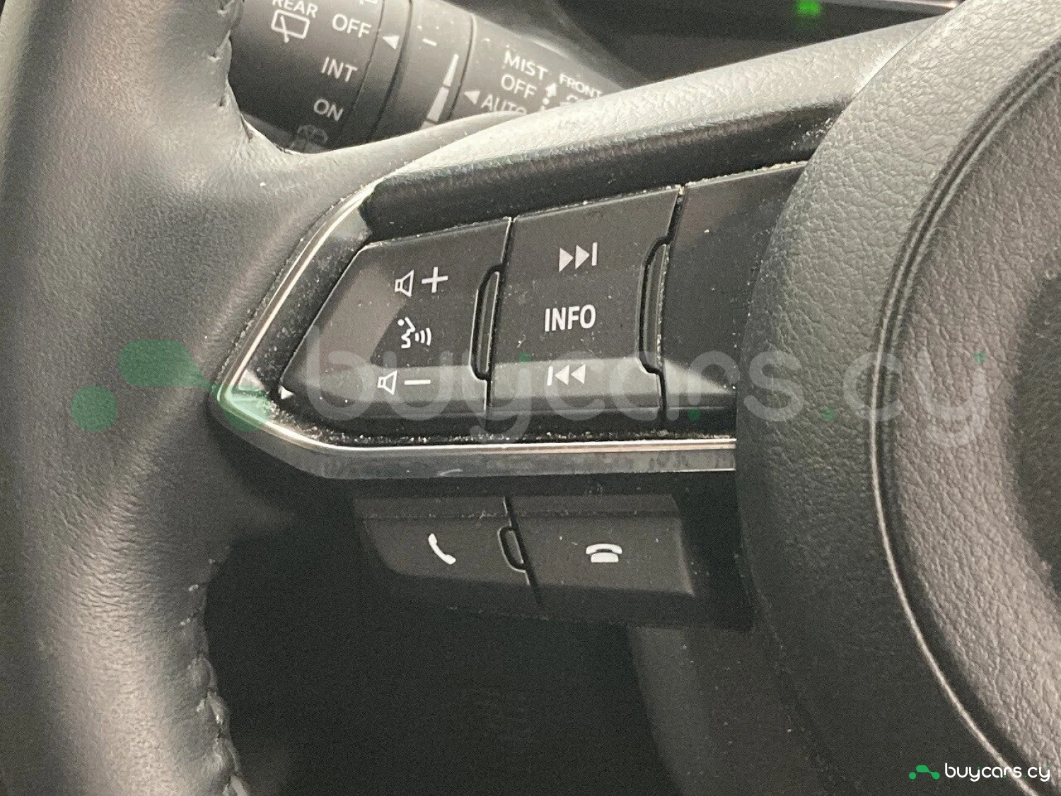 Салон выполнен в современном стиле с качественными материалами отделки. В комплектации Touring предусмотрены тканевая обивка сидений, мультимедийная система с 7-дюймовым дисплеем Mazda Connect, Bluetooth, USB-портами и поддержкой смартфонов, многофункциональное рулевое колесо, камера заднего вида, климат-контроль, бесключевой доступ и запуск двигателя с кнопки.
