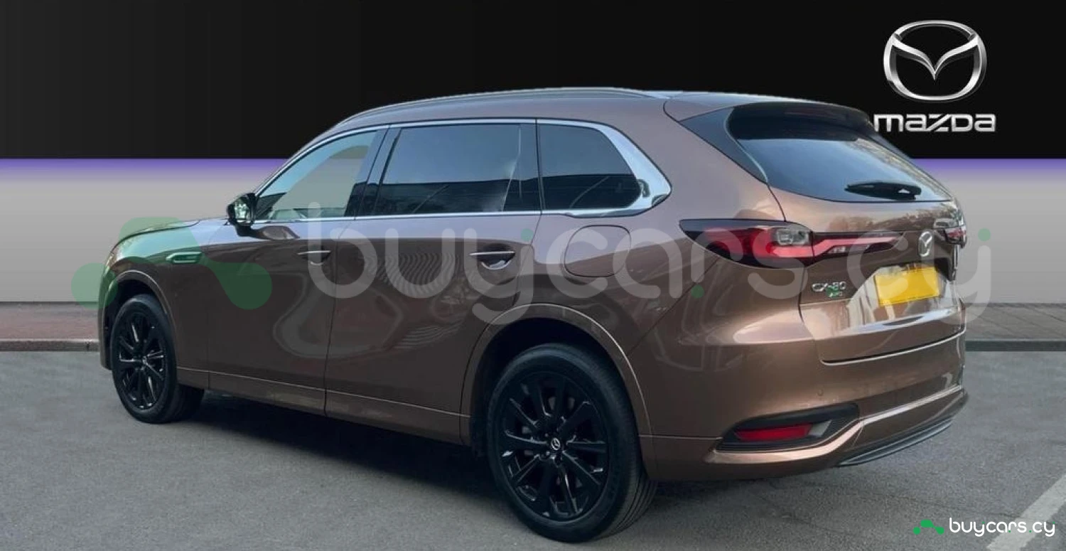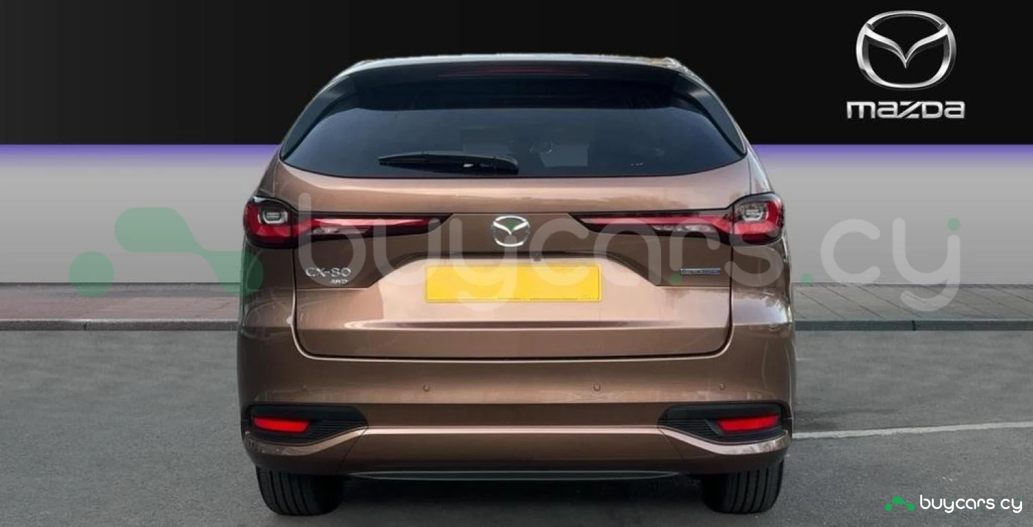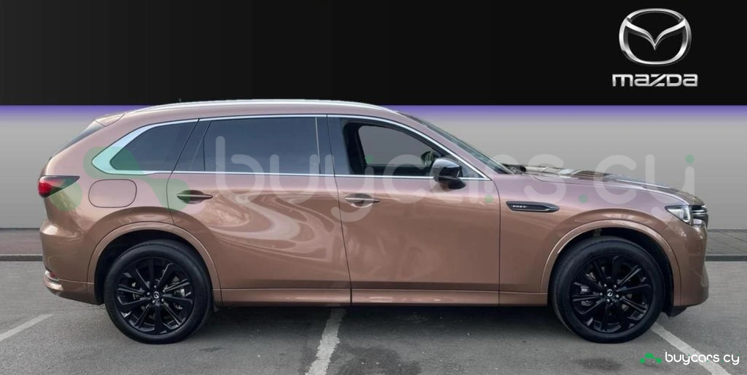 Эта впечатляющая Mazda CX‑80 Plug‑in Hybrid (PHEV) представлена в элегантном цвете Melting Copper с дополненной отделкой салона из черной кожи Nappa. Экстерьер выполнен в фирменном стиле Kodo с элементами из черного глянца и темного хрома, зеркалами в черном глянце, окрашенными в цвет кузова бамперами и молдингами, 20‑дюймовыми легкосплавными дисками и панорамным электрическим люком, подчеркивающим роскошь и динамику автомобиля.