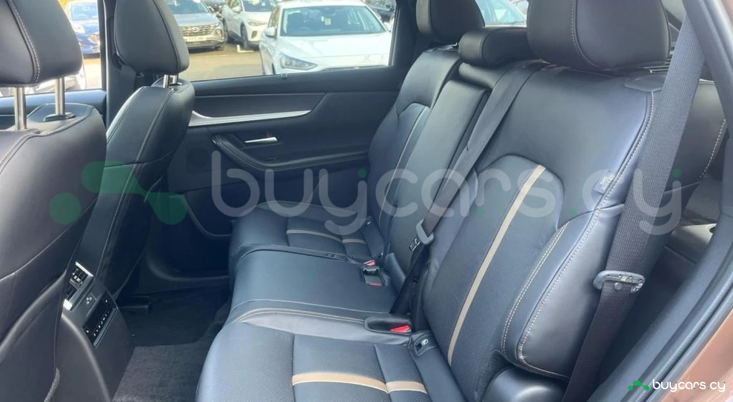 Салон отделан премиальной черной кожей Nappa с атмосферной подсветкой, панелью приборов и вставками в дверях в стиле Cordovan и черным потолком. В числе удобств — обогреваемый кожаный руль, подрулевые лепестки, бескаркасное автозатемняющееся зеркало, сиденья с электроприводом и памятью, трехзонный климат‑контроль, просторная компоновка со вторым рядом сидений и задними вентиляционными отверстиями. Практичные детали включают большое освещаемое хранилище, перчаточный ящик, держатель для очков и электрическую дверь багажника с функцией hands‑free.