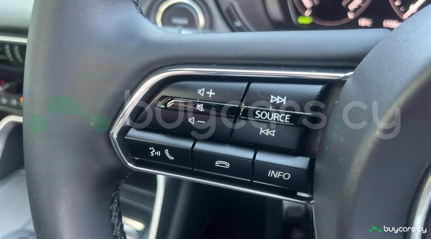 Автомобиль оснащен 12.3″ центральным дисплеем с Mazda Connect, 12.3″ TFT дисплеем водителя, навигацией с европейскими картами, премиальной аудиосистемой Bose с 12 динамиками, полной интеграцией смартфонов (Apple CarPlay/Android Auto, беспроводная), Bluetooth, радио DAB и несколькими разъемами USB‑C спереди и сзади.
