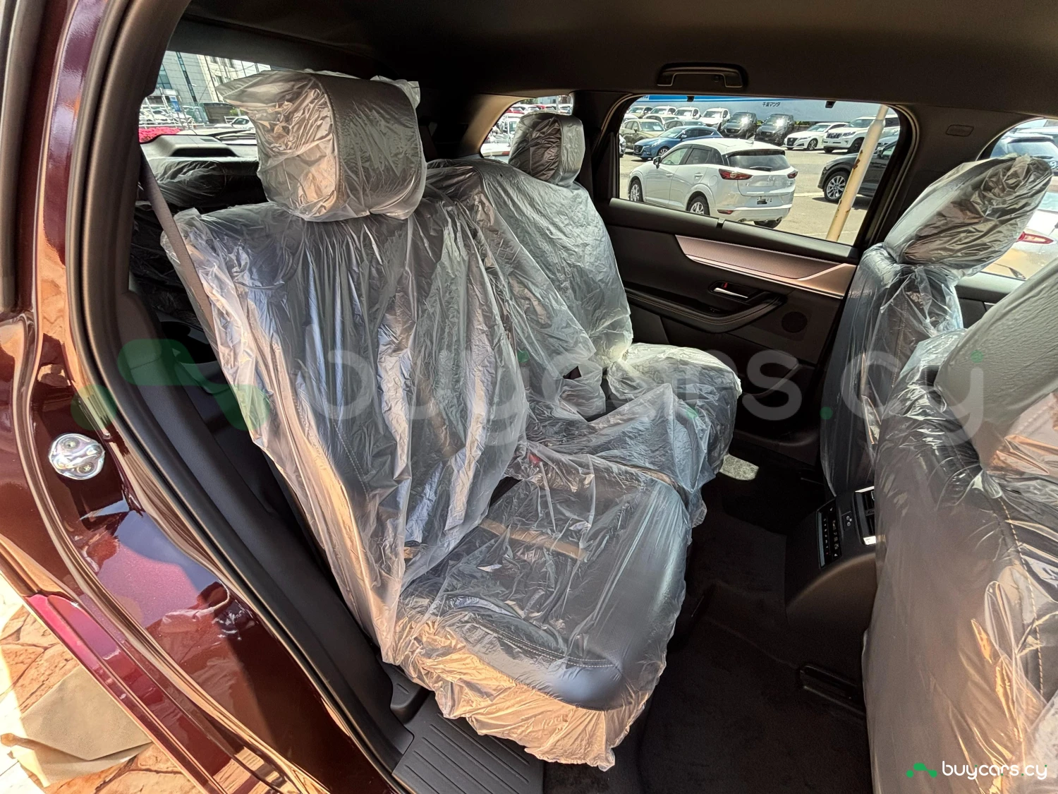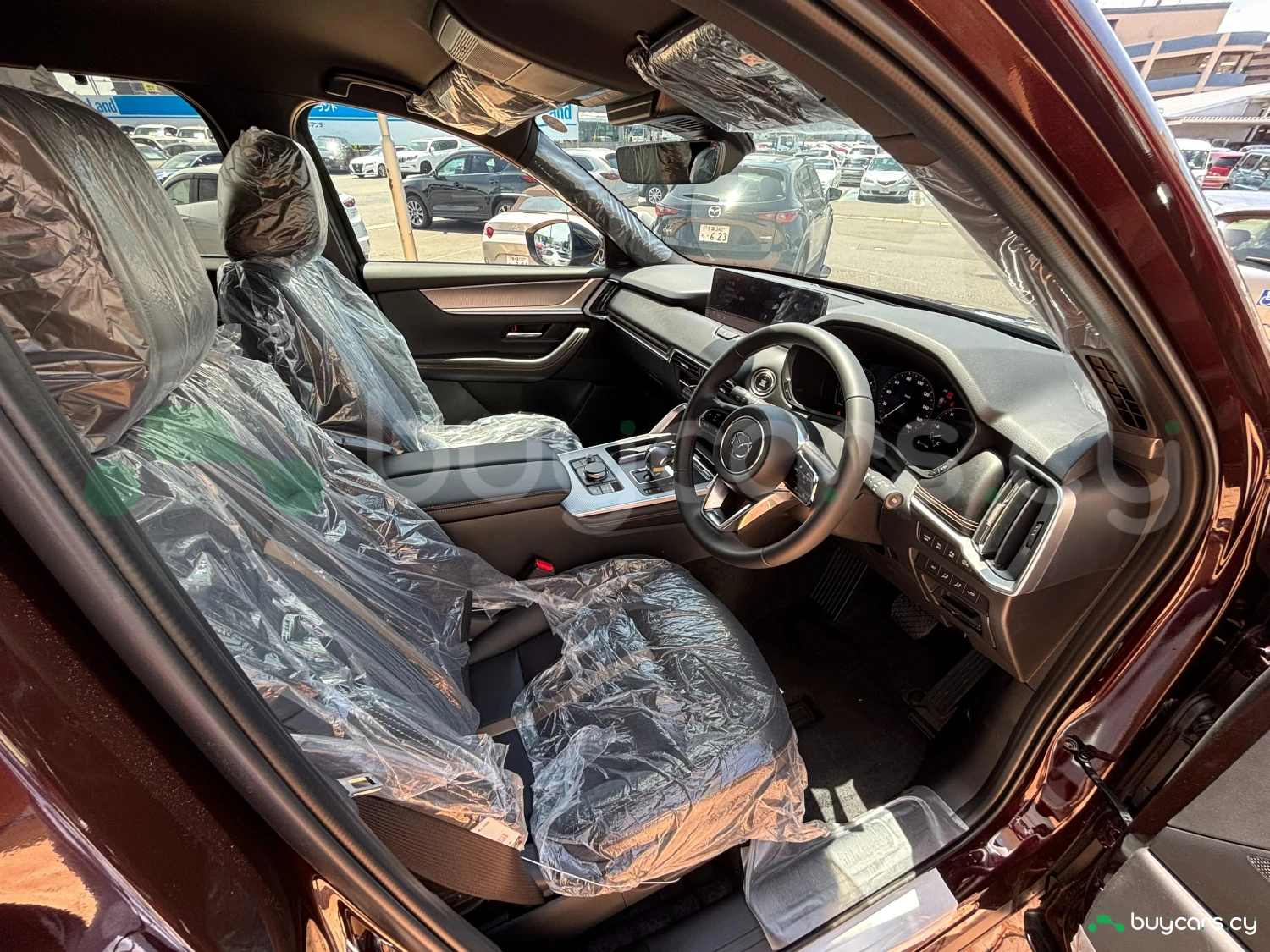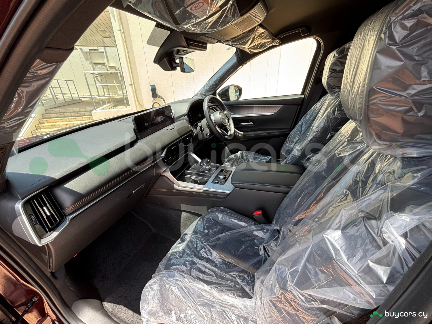 Интерьер рассчитан на 6 человек и выполнен в премиальном стиле, включая капитанские кресла второго ряда. Высококачественные материалы, атмосферная подсветка и внимание к деталям создают ощущение роскоши. Установлены цифровая приборная панель и 12.3-дюймовый экран мультимедийной системы Mazda Connect с поддержкой беспроводных Apple CarPlay и Android Auto. В комплектацию входят панорамная крыша, трёхзонный климат-контроль, подогрев передних сидений, проекционный дисплей и премиальная аудиосистема Bose.