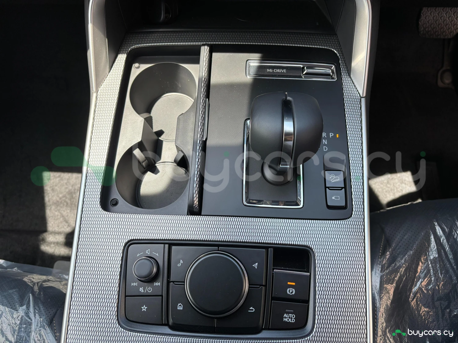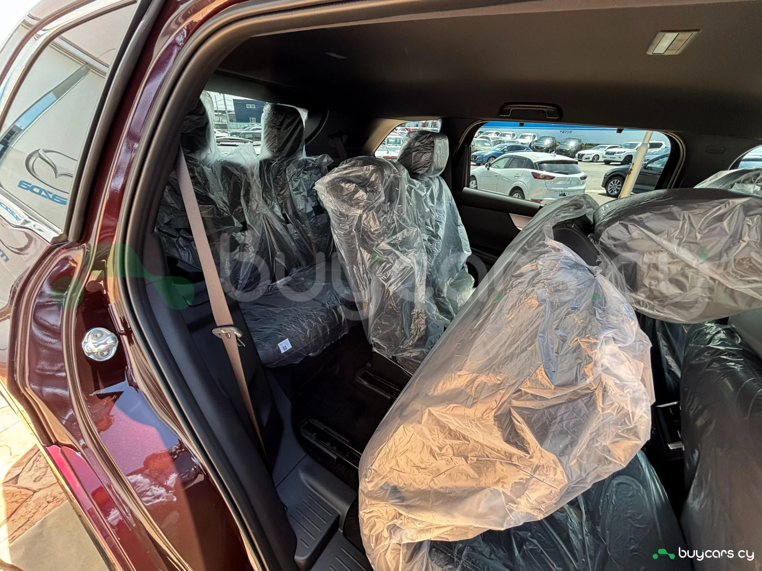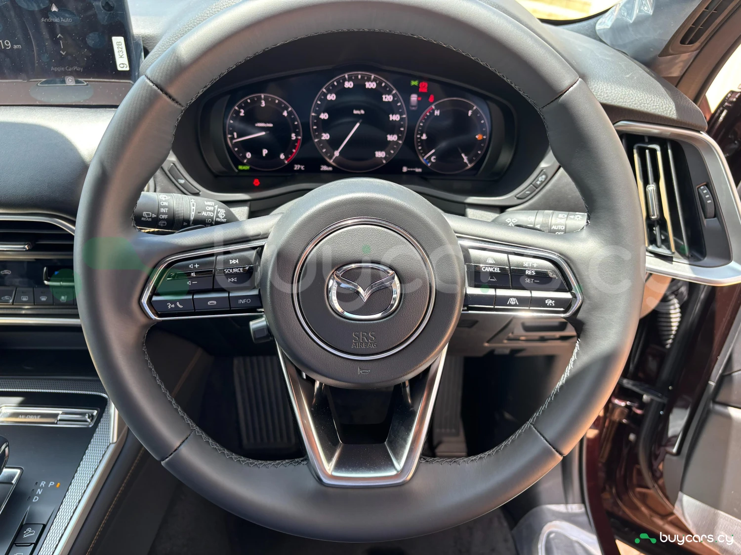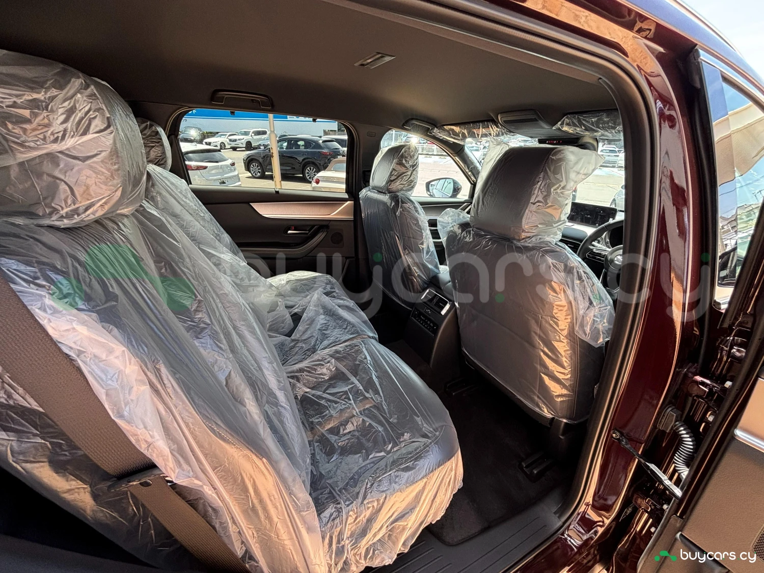 Интерьер рассчитан на 6 человек и выполнен в премиальном стиле, включая капитанские кресла второго ряда. Высококачественные материалы, атмосферная подсветка и внимание к деталям создают ощущение роскоши. Установлены цифровая приборная панель и 12.3-дюймовый экран мультимедийной системы Mazda Connect с поддержкой беспроводных Apple CarPlay и Android Auto. В комплектацию входят панорамная крыша, трёхзонный климат-контроль, подогрев передних сидений, проекционный дисплей и премиальная аудиосистема Bose.