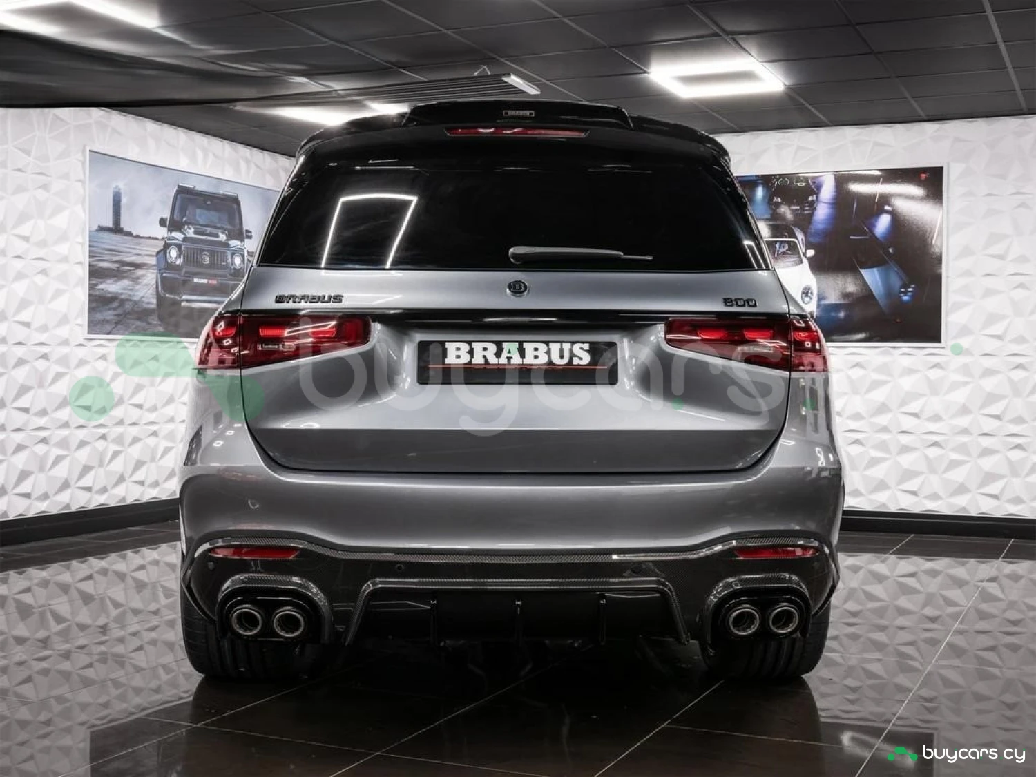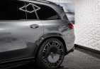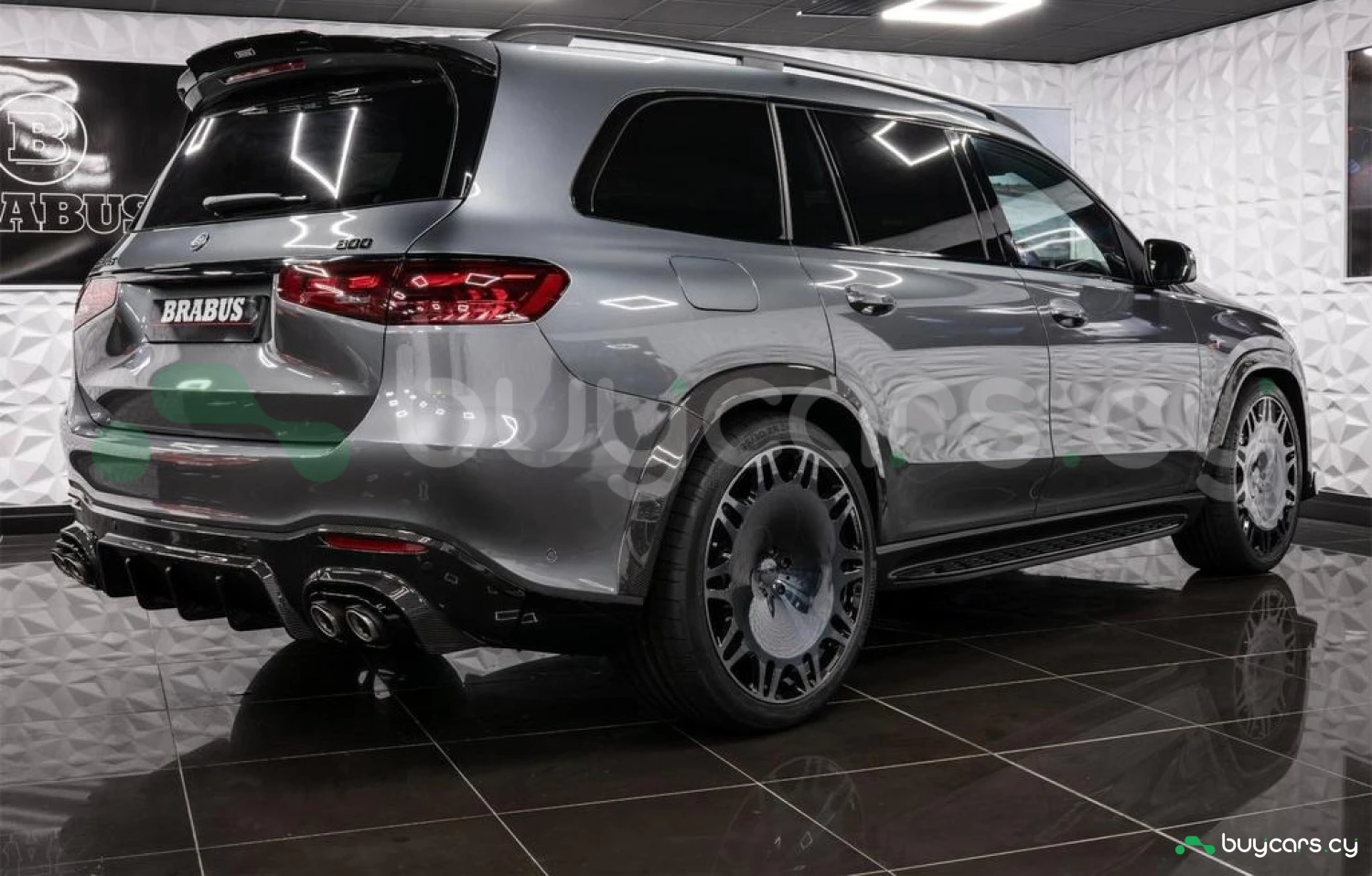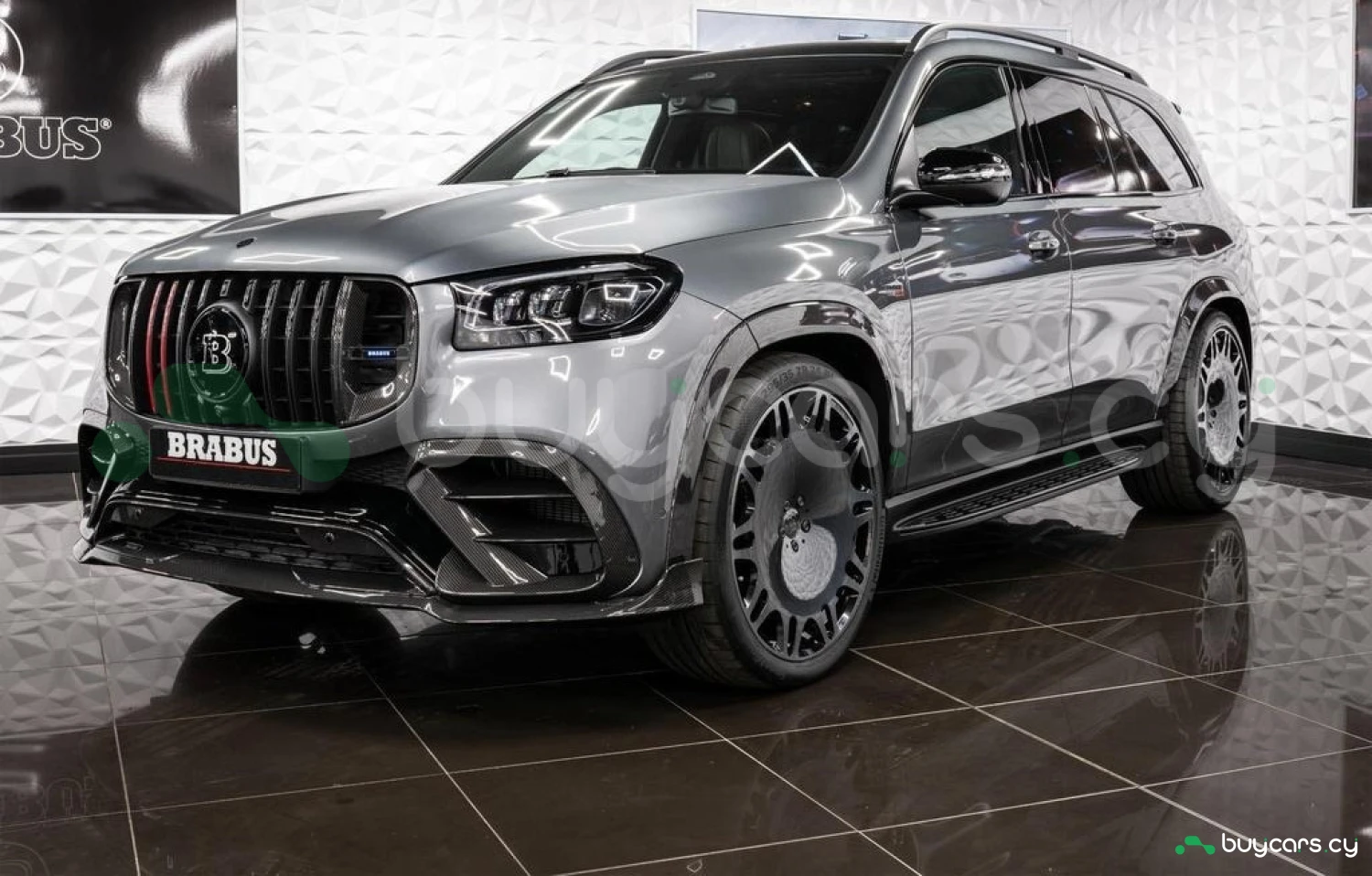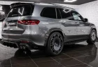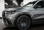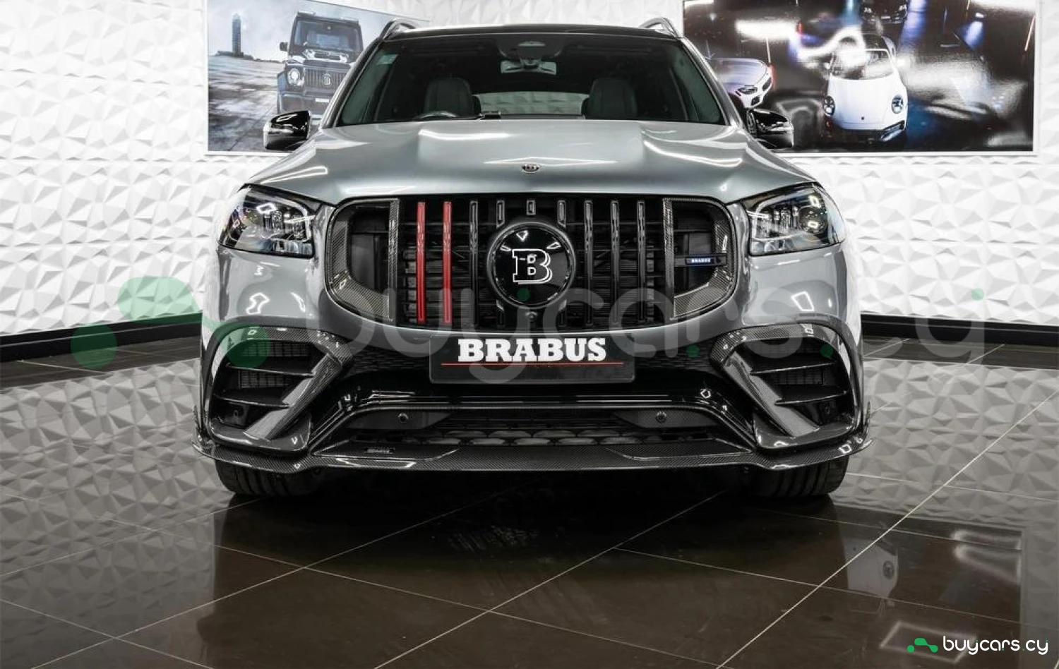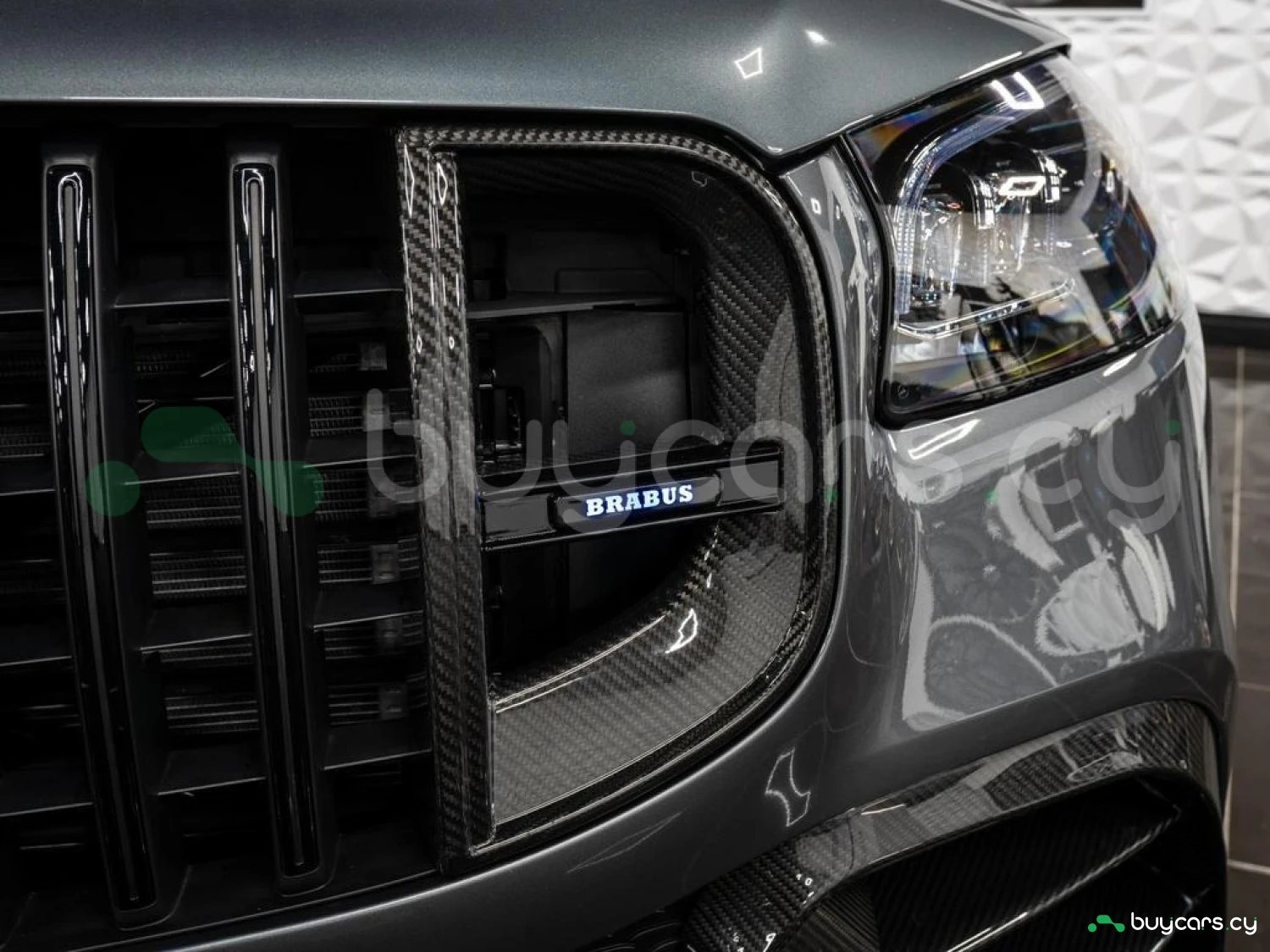 Экстерьер: GLS представлен в сером цвете с эксклюзивным карбоновым аэродинамическим обвесом BRABUS, включающим карбоновый передний спойлер, карбоновые накладки на передний бампер, вставки в решетку радиатора, задний диффузор с выпускными патрубками спортивного дизайна и расширители колесных арок. Задний спойлер BRABUS улучшает аэродинамику, а подсвечиваемый логотип BRABUS на решетке радиатора подчеркивает эксклюзивность модели. Автомобиль оснащен 24-дюймовыми коваными дисками BRABUS Monoblock M, придающими ему мощный и внушительный вид.