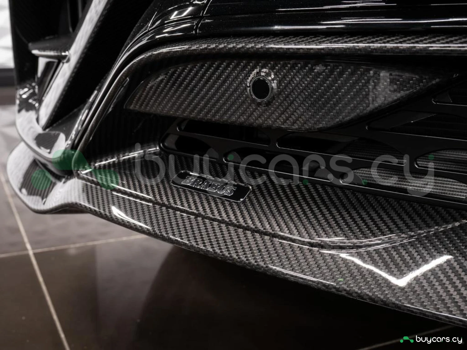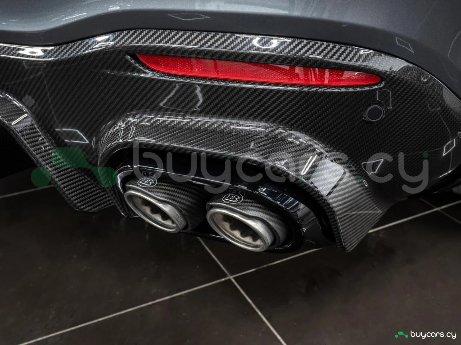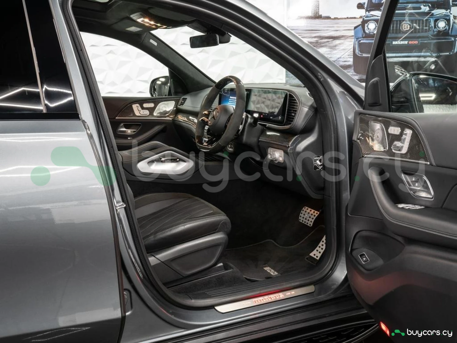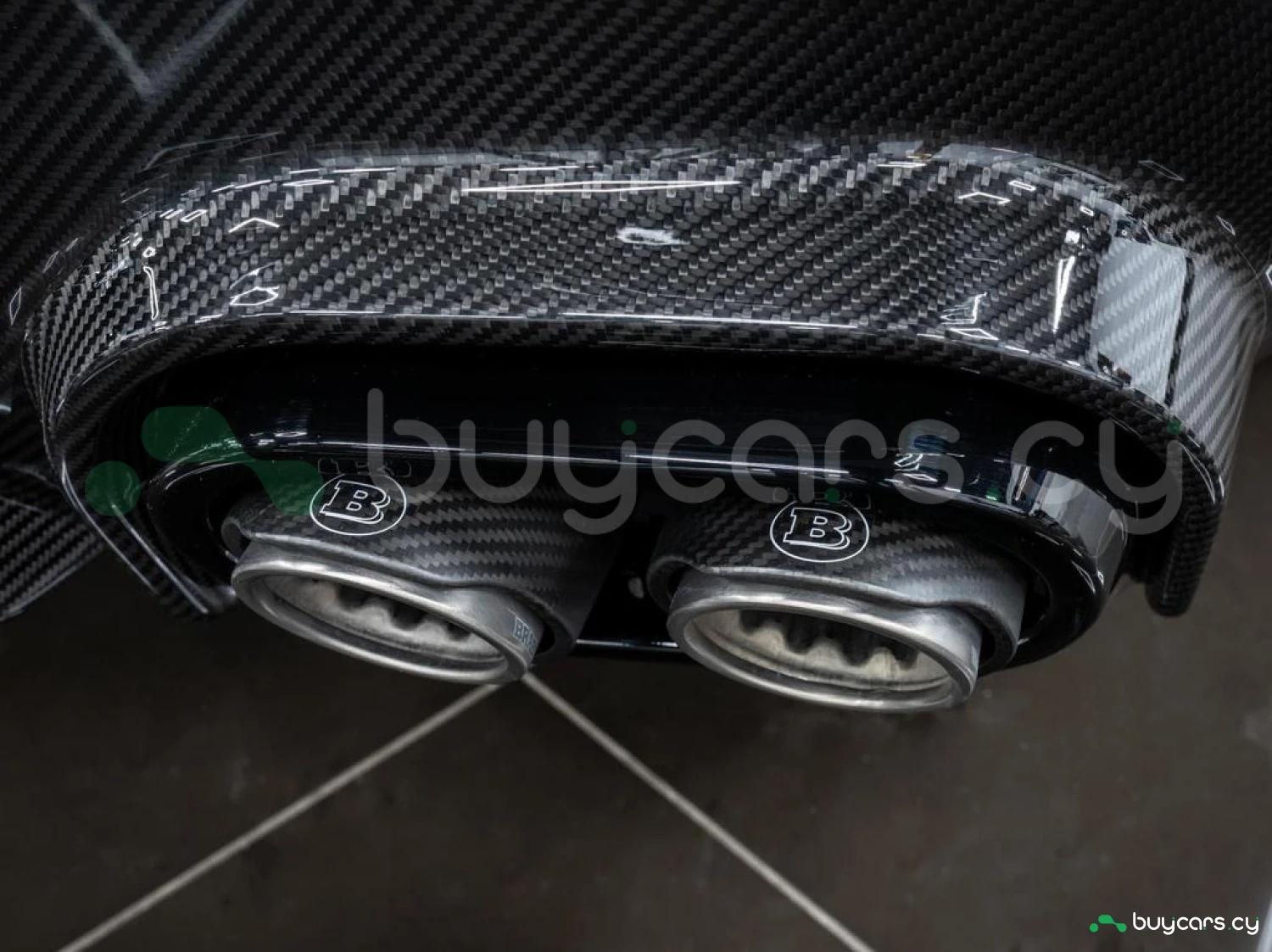 Экстерьер: GLS представлен в сером цвете с эксклюзивным карбоновым аэродинамическим обвесом BRABUS, включающим карбоновый передний спойлер, карбоновые накладки на передний бампер, вставки в решетку радиатора, задний диффузор с выпускными патрубками спортивного дизайна и расширители колесных арок. Задний спойлер BRABUS улучшает аэродинамику, а подсвечиваемый логотип BRABUS на решетке радиатора подчеркивает эксклюзивность модели. Автомобиль оснащен 24-дюймовыми коваными дисками BRABUS Monoblock M, придающими ему мощный и внушительный вид.