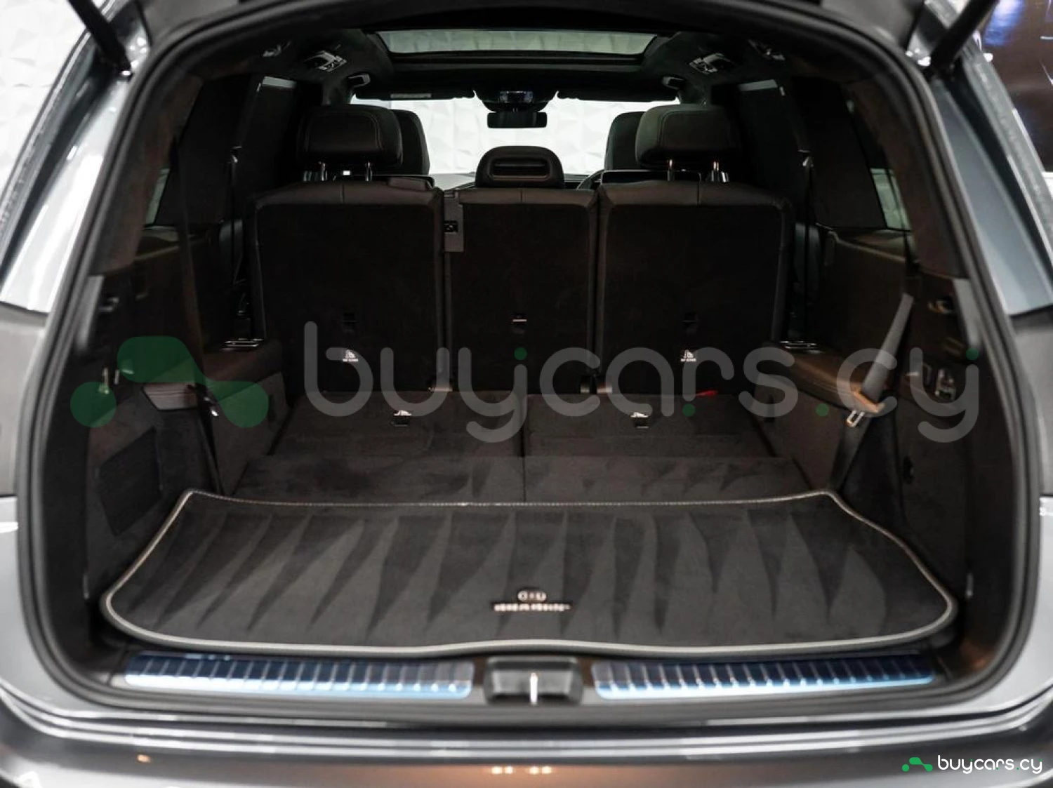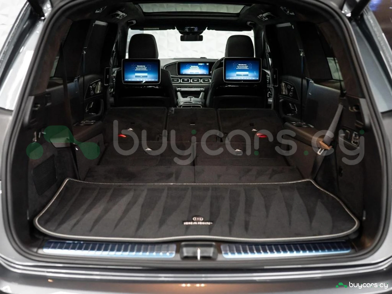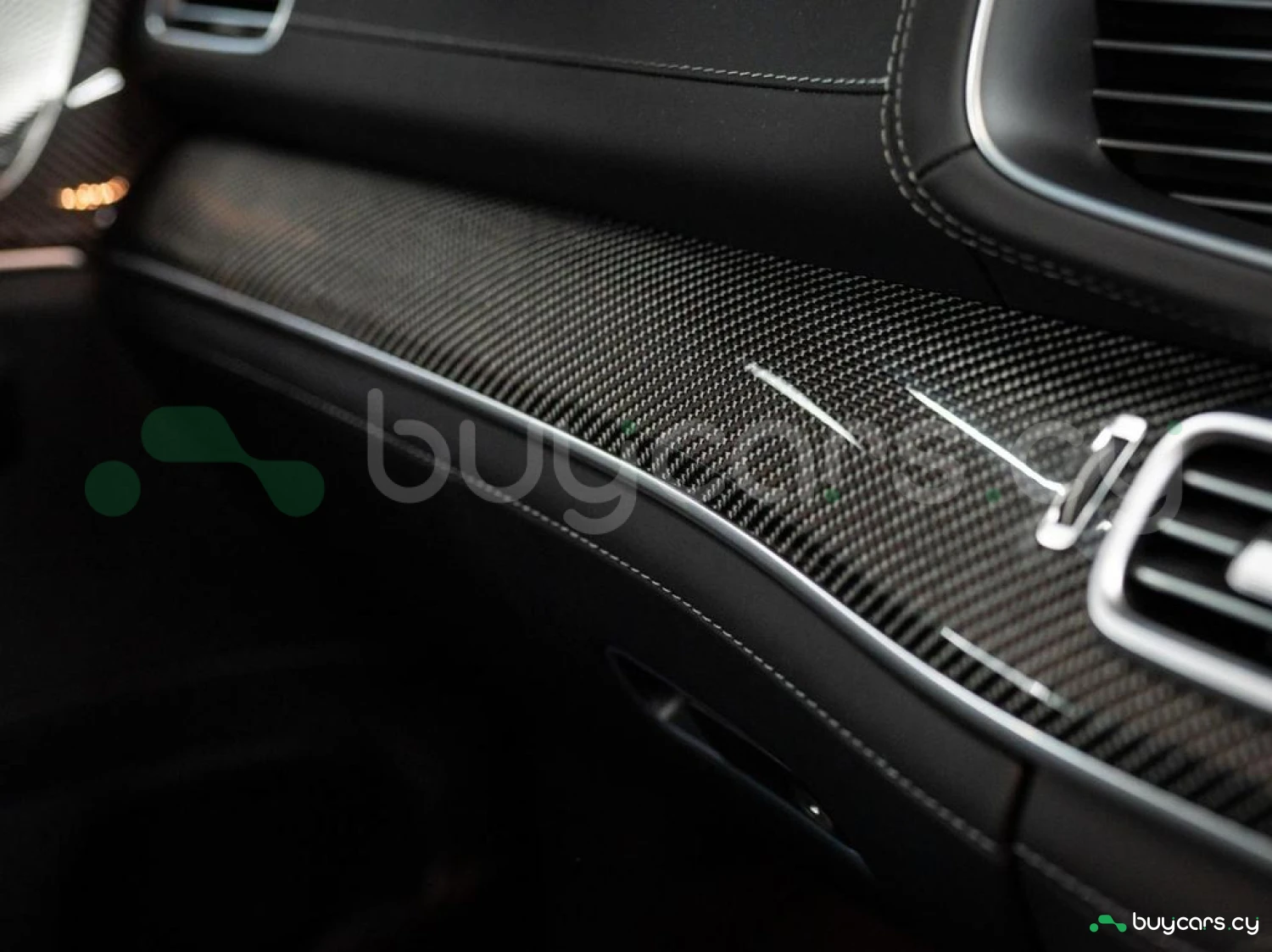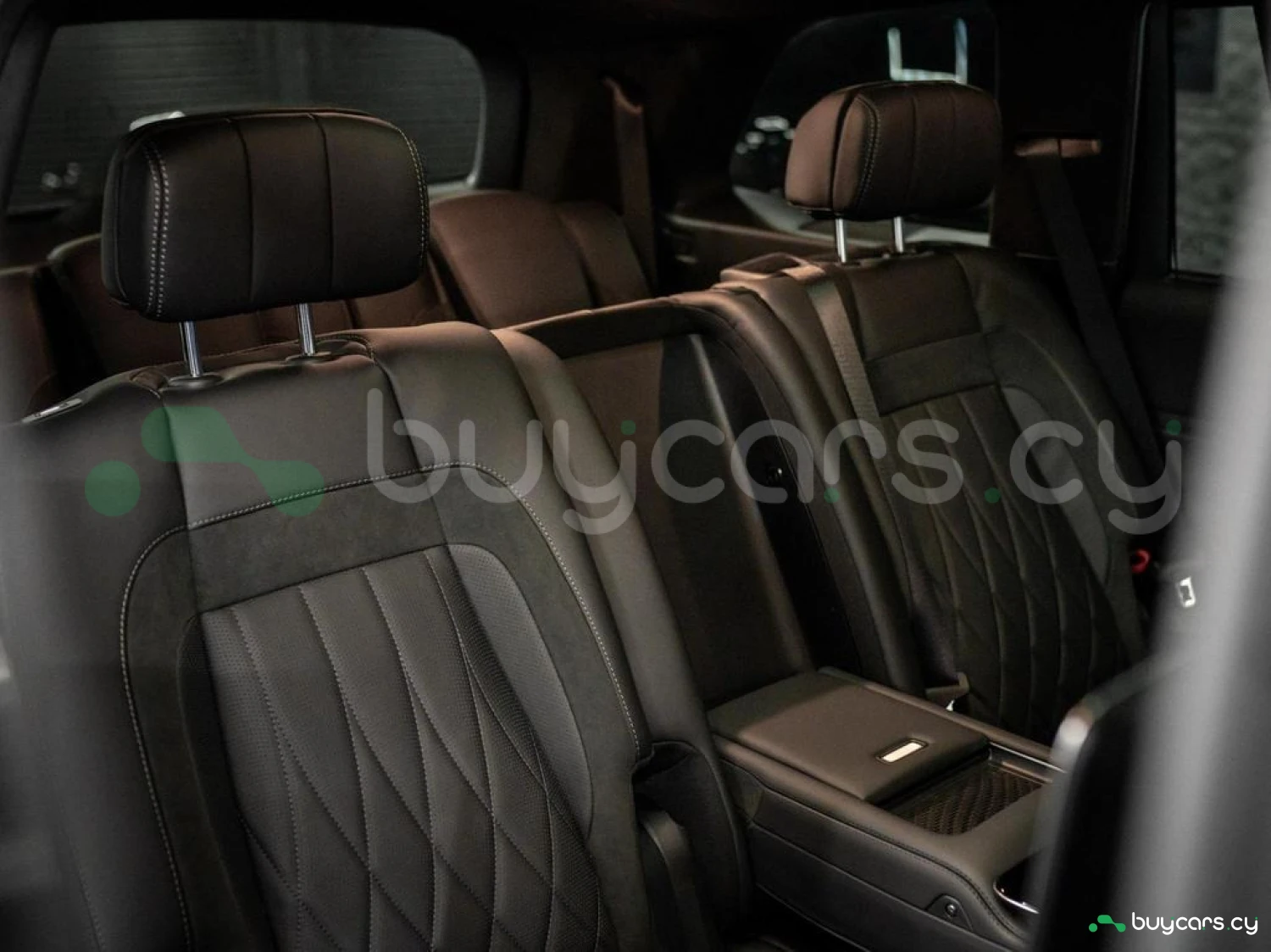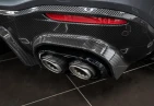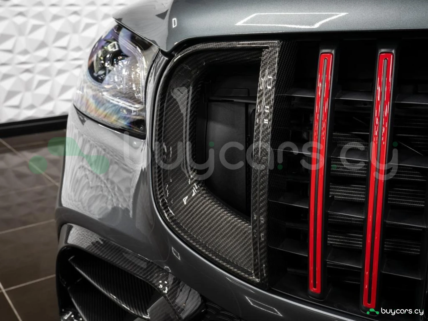 Экстерьер: GLS представлен в сером цвете с эксклюзивным карбоновым аэродинамическим обвесом BRABUS, включающим карбоновый передний спойлер, карбоновые накладки на передний бампер, вставки в решетку радиатора, задний диффузор с выпускными патрубками спортивного дизайна и расширители колесных арок. Задний спойлер BRABUS улучшает аэродинамику, а подсвечиваемый логотип BRABUS на решетке радиатора подчеркивает эксклюзивность модели. Автомобиль оснащен 24-дюймовыми коваными дисками BRABUS Monoblock M, придающими ему мощный и внушительный вид.