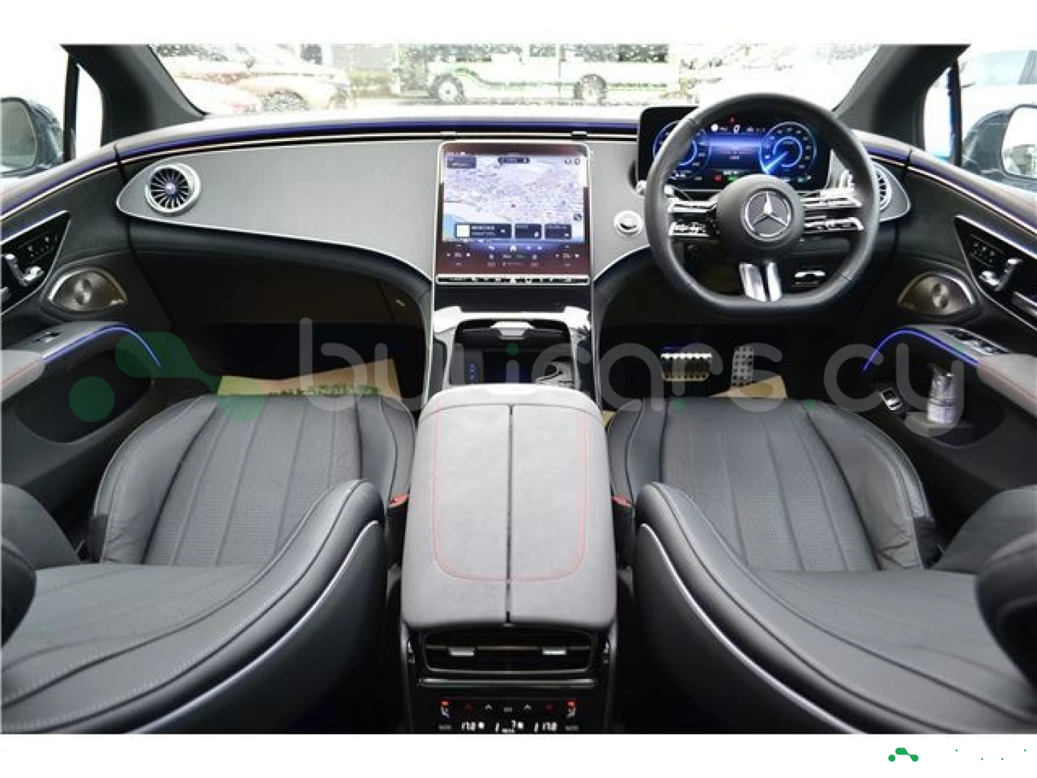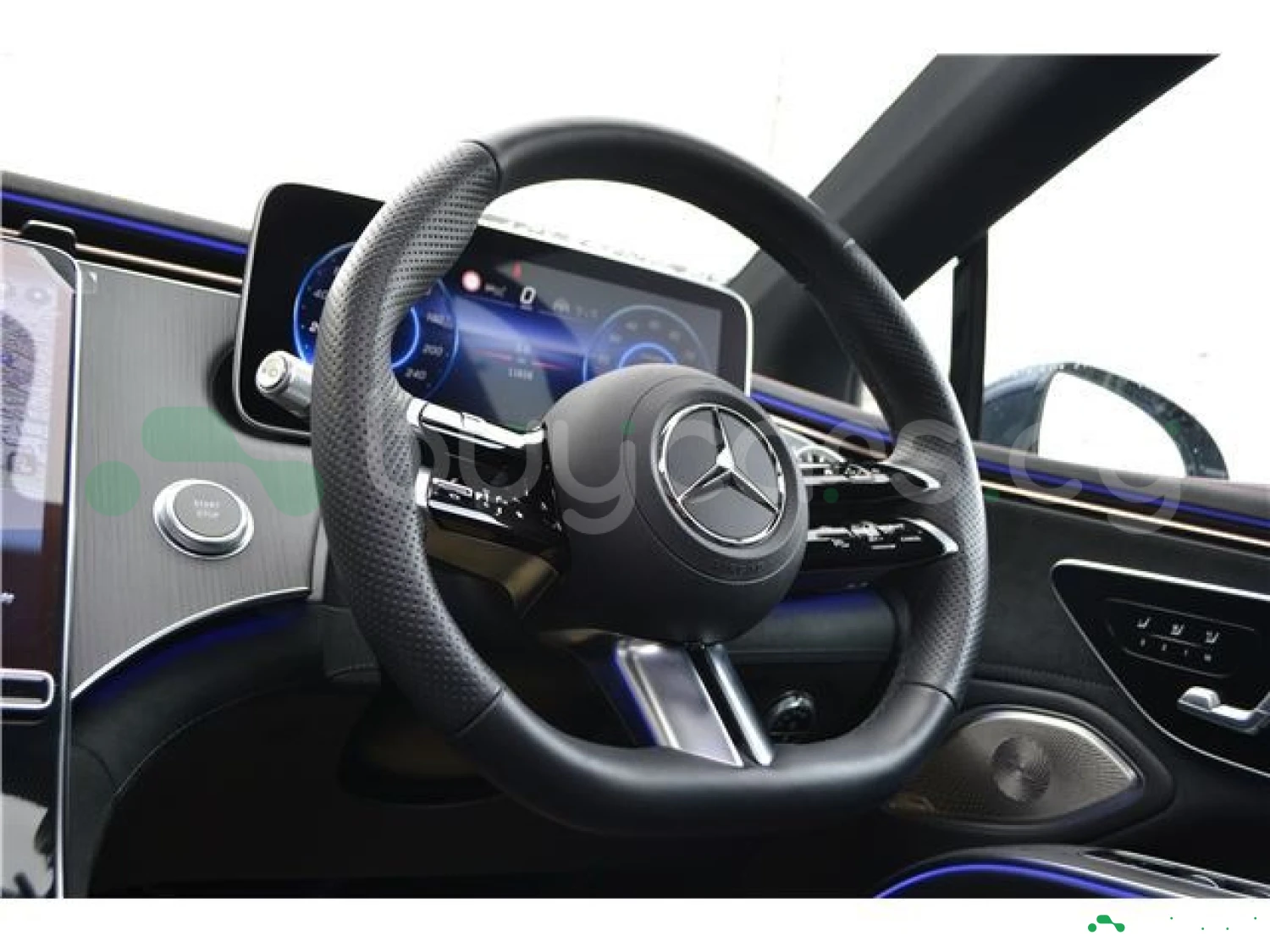 Этот EQS 450+ представлен в изысканном цвете Nautical Blue Metallic, подчеркивающем плавные линии и футуристичный дизайн флагманского электроседана Mercedes-Benz. Пакет AMG Line добавляет спортивные акценты, а элегантные пропорции и аэродинамический кузов подчёркивают эффективность и престиж. Большая панорамная крыша и фирменная LED-оптика придают автомобилю ещё более роскошный вид.