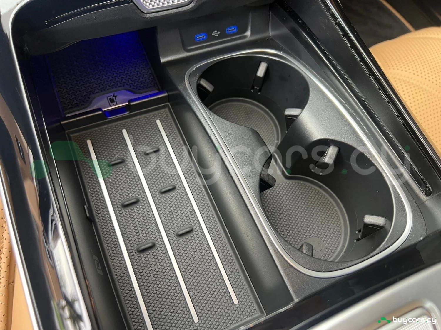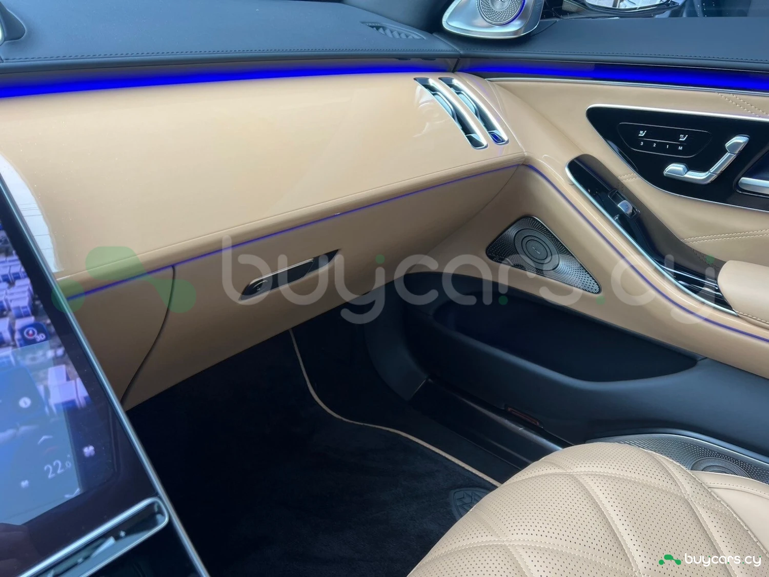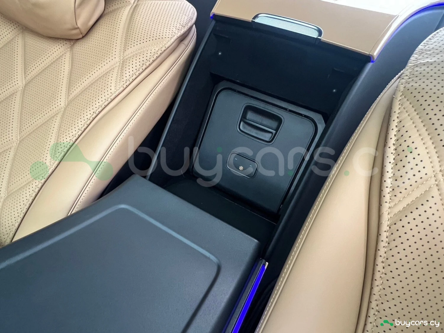 Салон модели Virgil Abloh — это настоящее произведение дизайнерского искусства. В оформлении использована эксклюзивная комбинация Colorado Beige и Obsidian Black, выполненная вручную. Задние кресла Executive с функцией полного раскладывания, вентиляцией, подогревом и массажем, встроенный холодильник и держатели для фужеров — всё подчинено идее максимального комфорта. Дисплеи MBUX — 12.3-дюймовая цифровая панель приборов и 12.8-дюймовый OLED-дисплей мультимедиа — обеспечивают высший уровень цифровой интеграции. Аудиосистема Burmester 4D создаёт объёмный звук с виброэффектами.