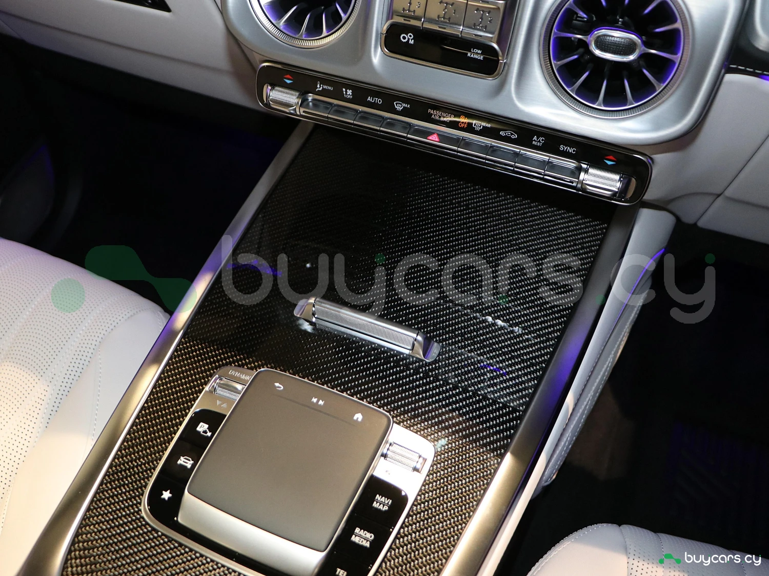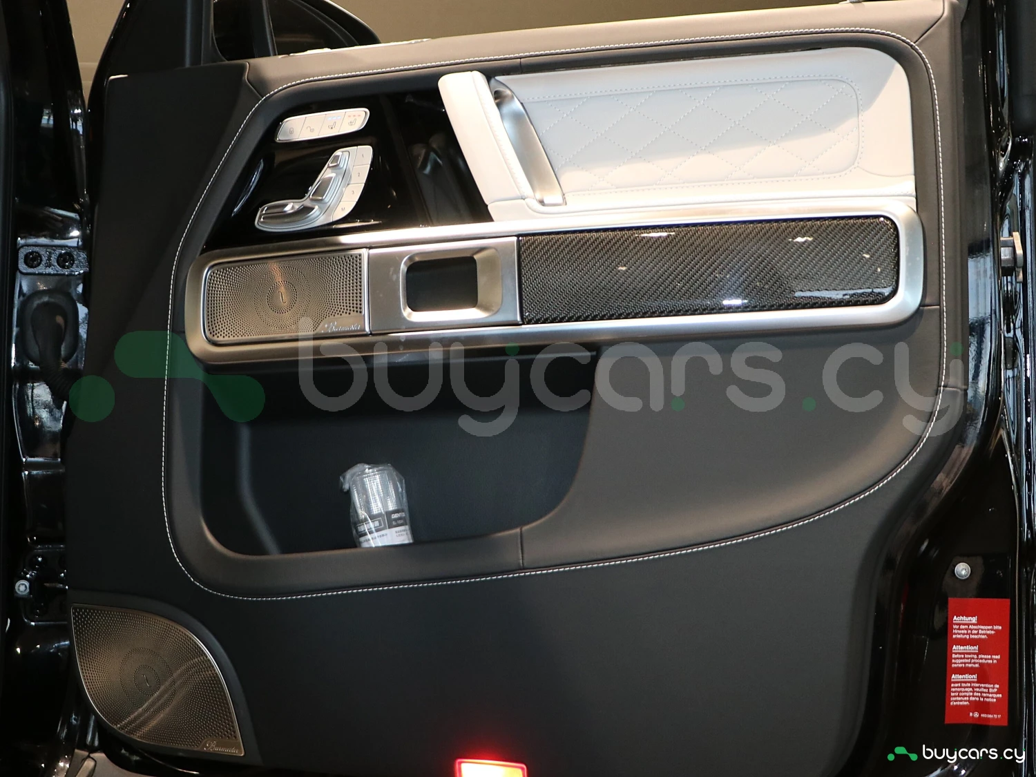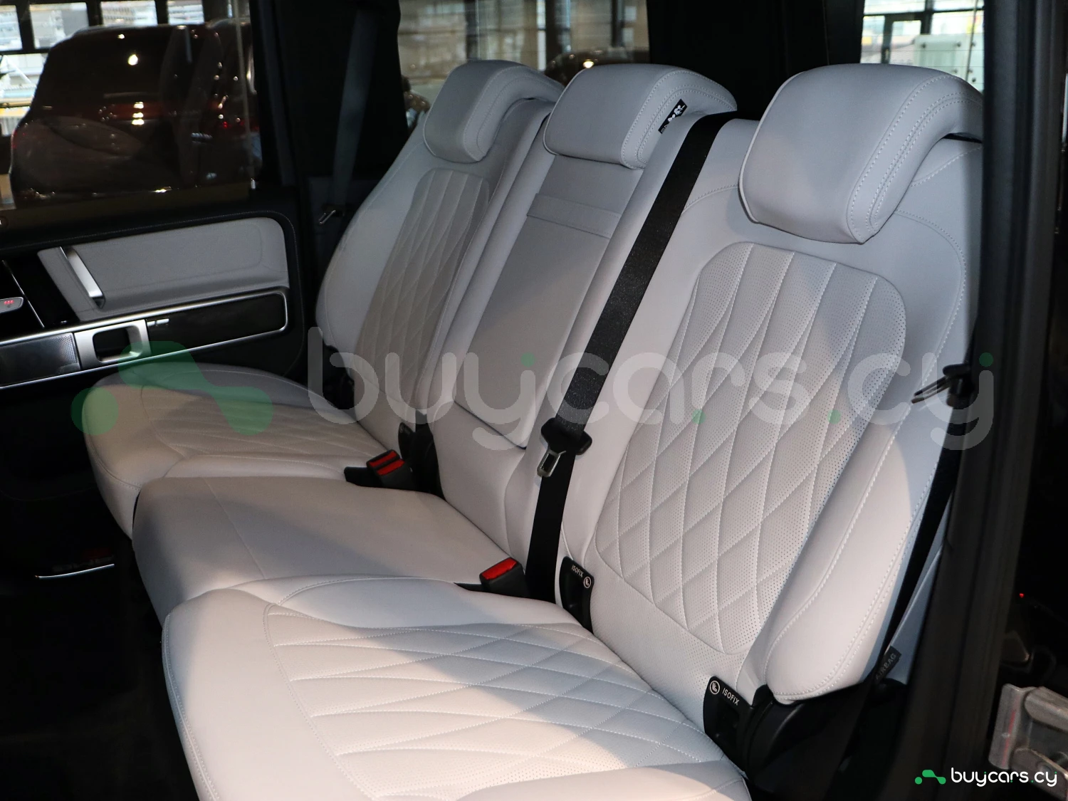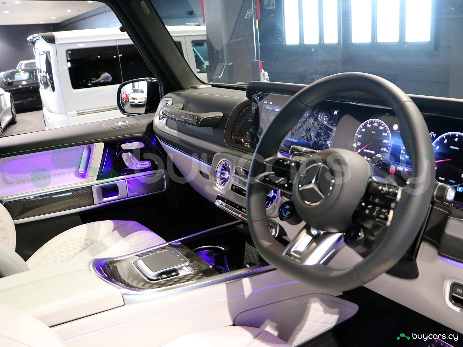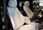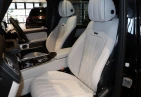 Салон G63 оформлен с акцентом на роскошь и технологии: кожаная обивка Nappa, контрастная строчка, карбоновые или алюминиевые вставки, сиденья с подогревом и вентиляцией, а также функция массажа. Двойной цифровой дисплей MBUX объединяет 12.3-дюймовую приборную панель и мультимедийный экран с поддержкой Apple CarPlay/Android Auto. В комплектации доступны премиальная аудиосистема Burmester, атмосферная подсветка, мультимедиа-пакет для задних пассажиров, проекционный дисплей и панорамная крыша.