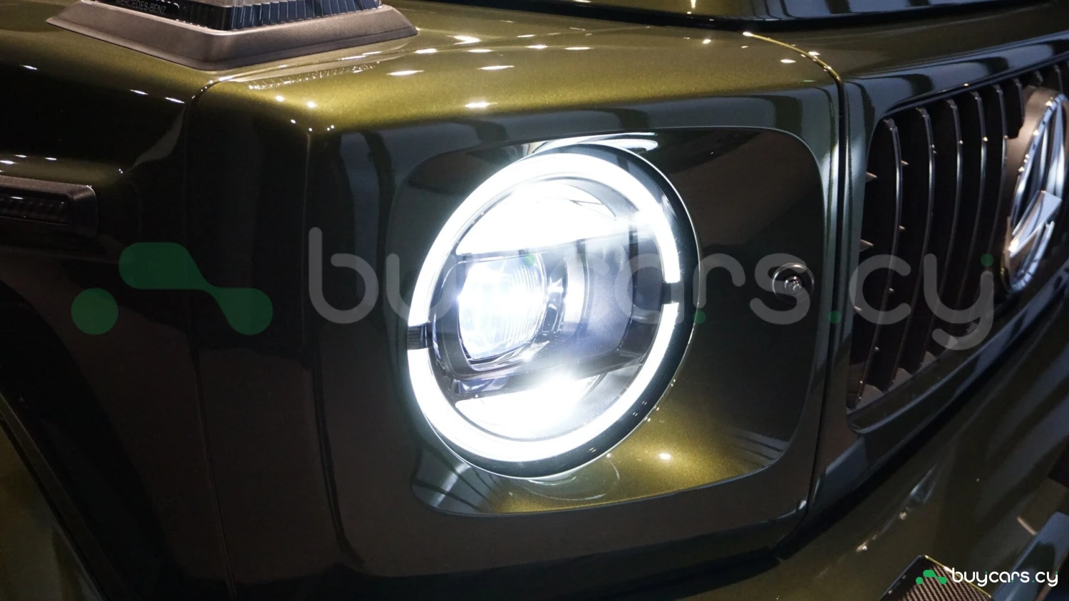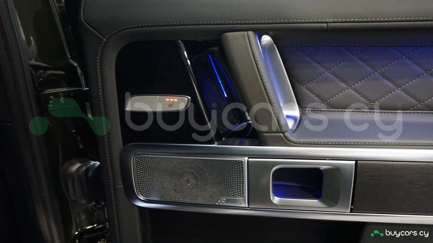 G63 оснащён полным набором современных систем безопасности: адаптивный круиз-контроль, ассистент удержания в полосе, мониторинг слепых зон, автоматическое экстренное торможение, система кругового обзора, ассистент парковки. Также доступны внедорожные режимы движения, контроль спуска с горы и настраиваемые профили AMG Dynamic Select. Это один из самых мощных, узнаваемых и роскошных внедорожников премиум-класса на рынке.
