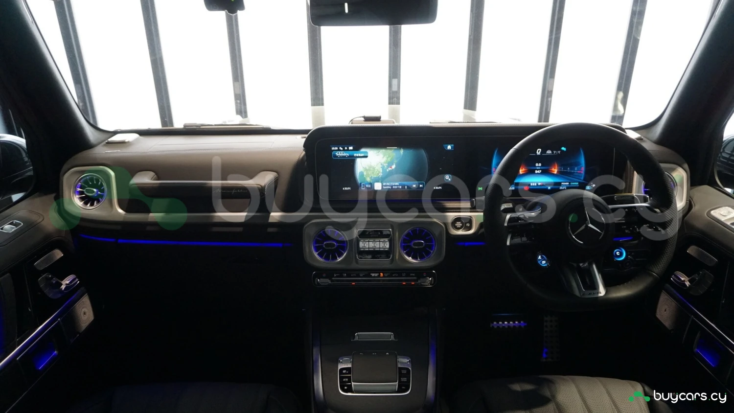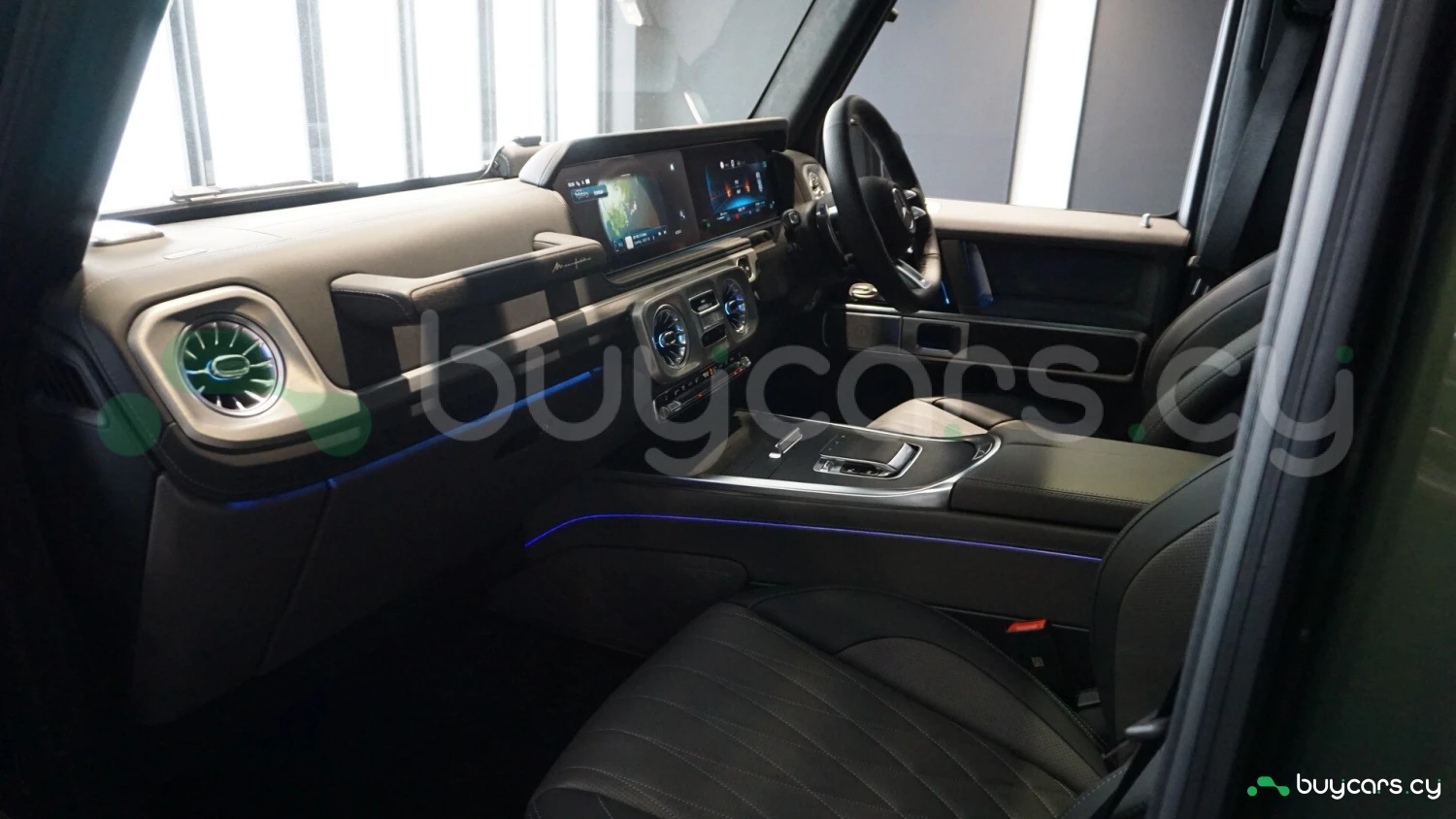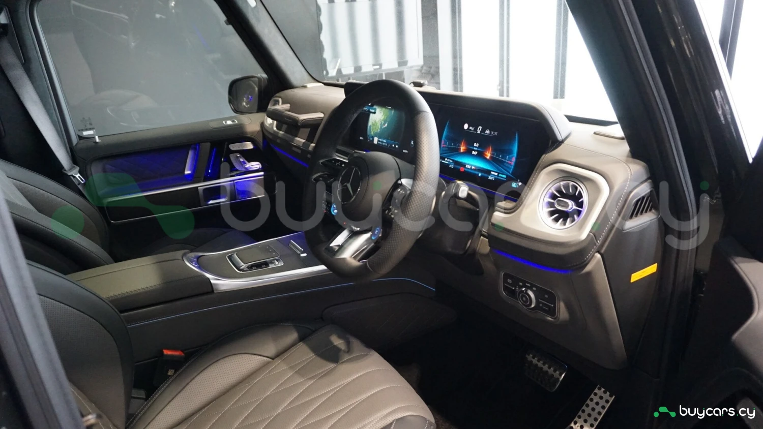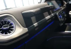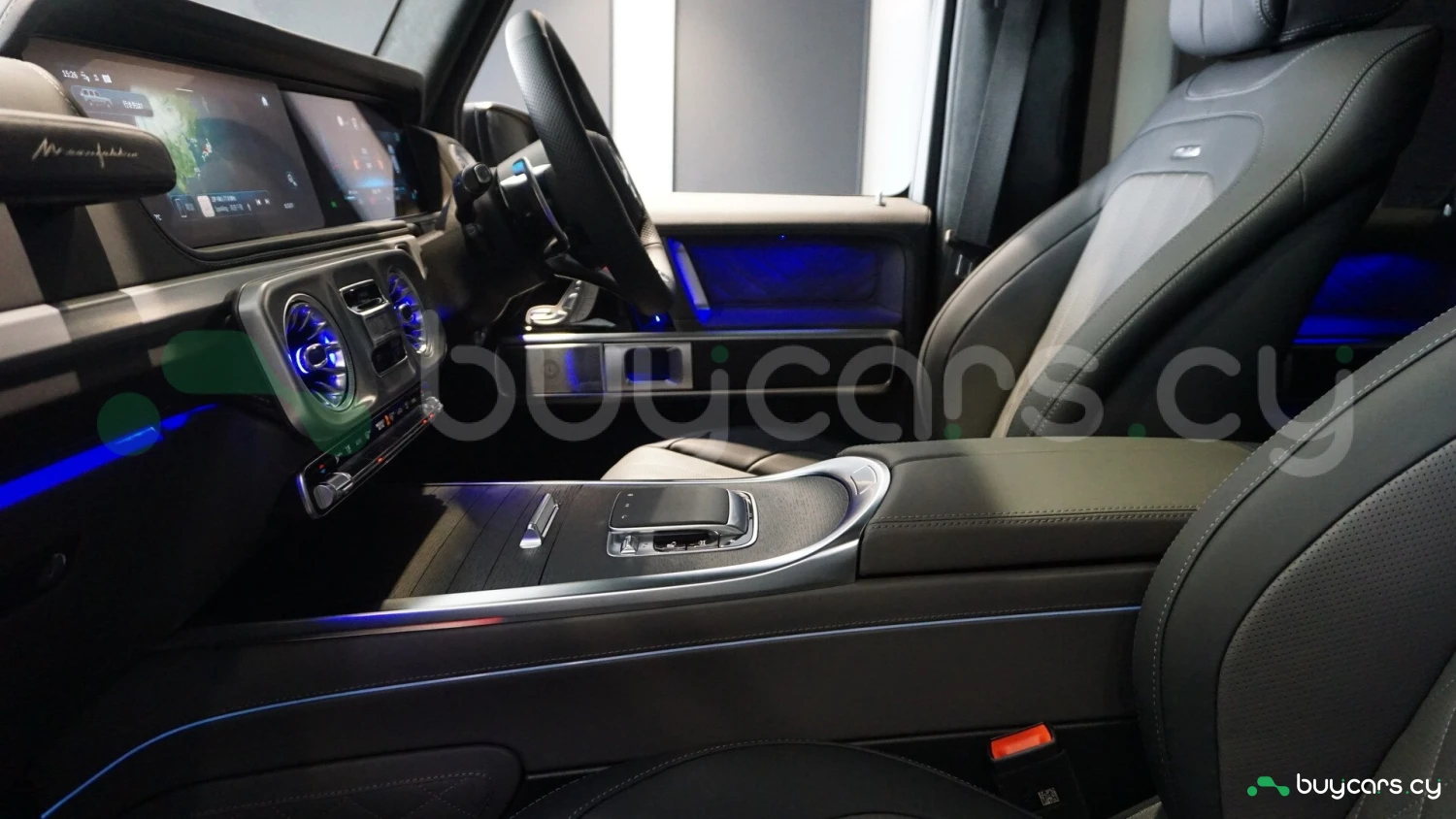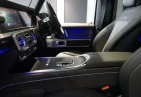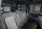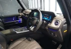 Салон G63 сочетает премиальную роскошь с внедорожной прочностью. Отделка из кожи Nappa с прострочкой AMG, вставки из карбона или дерева, спортивный руль AMG с плоским ободом и металлическими лепестками переключения. Два дисплея по 12.3 дюйма (приборная панель и мультимедиа MBUX), поддержка Apple CarPlay и Android Auto (беспроводные), премиальная аудиосистема Burmester, подогрев и вентиляция сидений (включая задний ряд), панорамная крыша и настраиваемая подсветка создают атмосферу максимального комфорта. Автомобиль рассчитан на 5 посадочных мест.