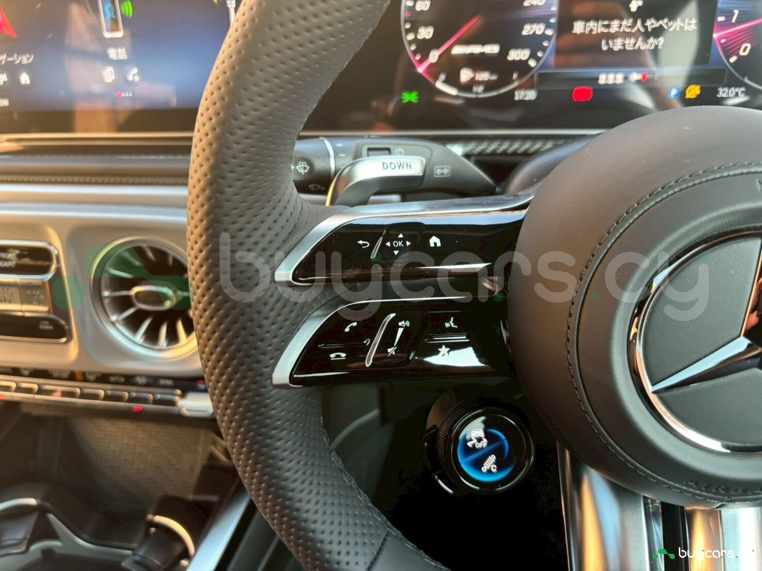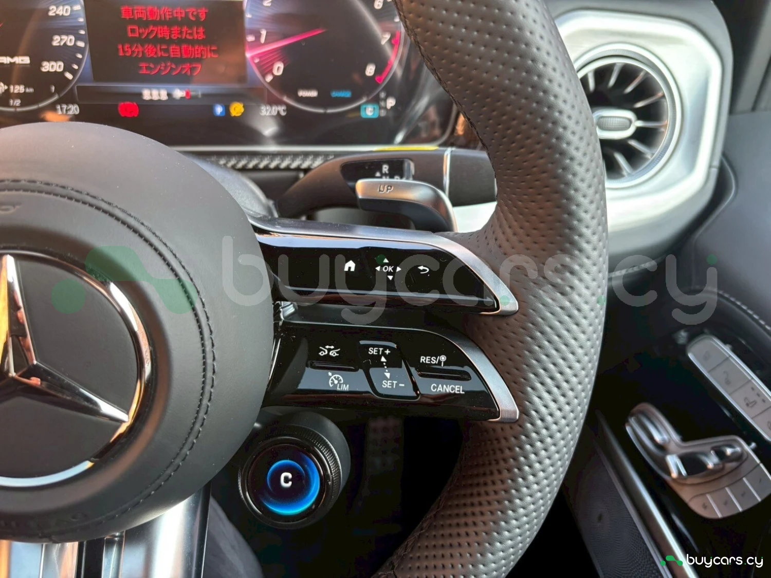 Салон выполнен с использованием премиальных материалов: кожа Nappa, спортивные сиденья AMG, вставки из карбона или дерева. Цифровая приборная панель на 12.3 дюйма сочетается с 12.3-дюймовым мультимедийным экраном MBUX, поддерживающим сенсорное управление, голосовые команды, Apple CarPlay и Android Auto. Оснащение также включает многоцветную подсветку салона, четырёхзонный климат-контроль, подогрев и вентиляцию сидений спереди и сзади, а также аудиосистему Burmester 3D.