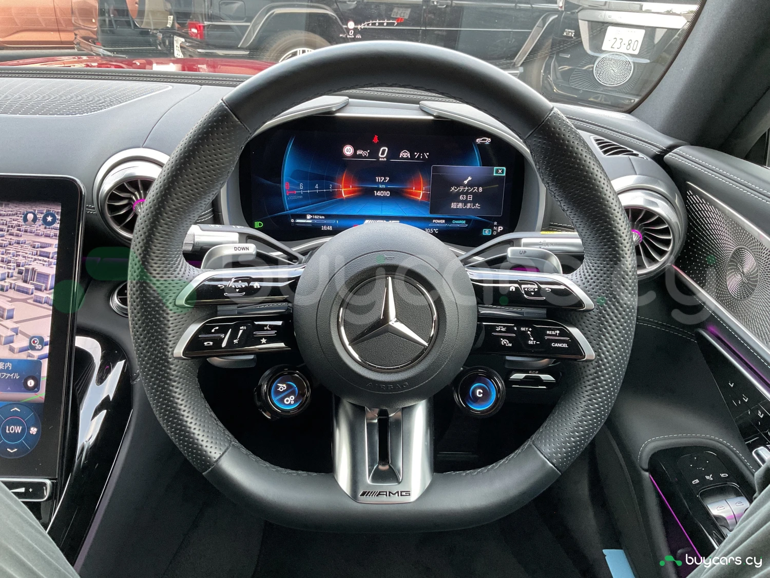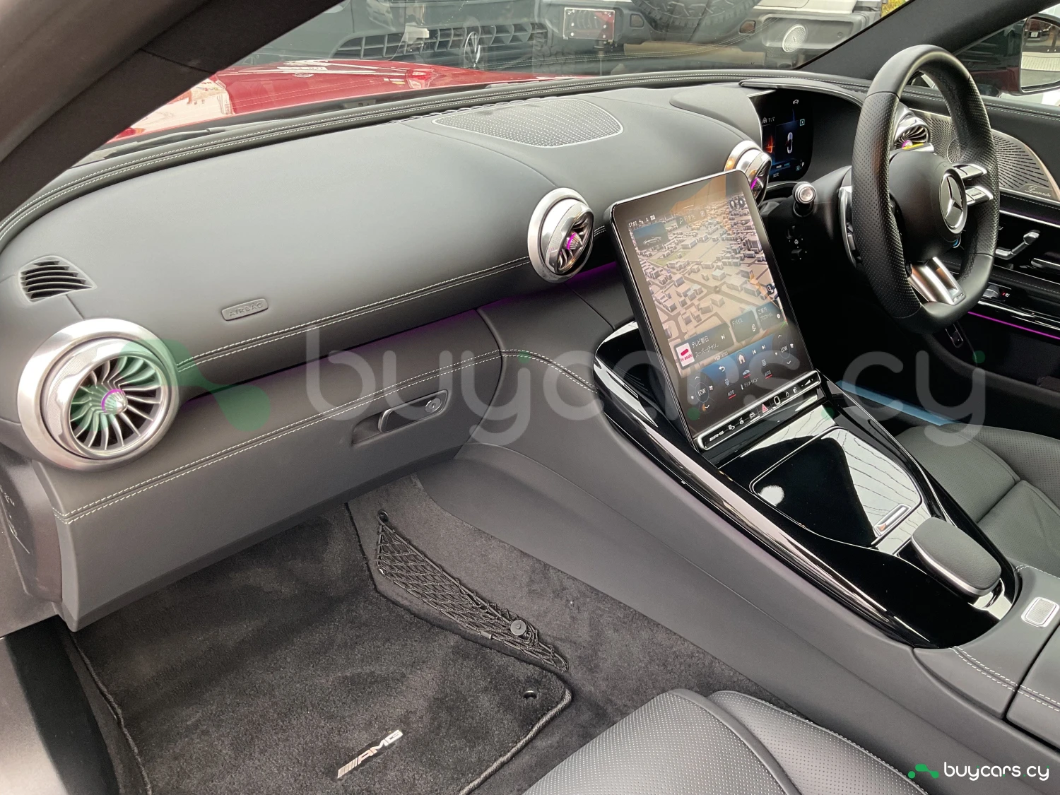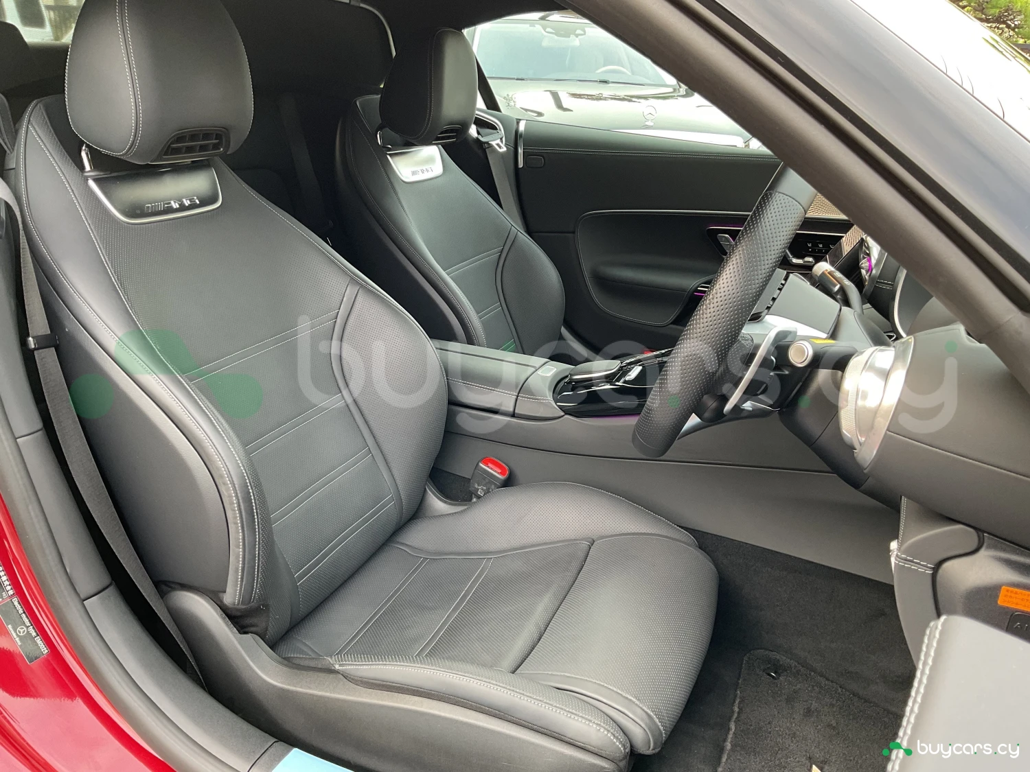 Салон выполнен из премиальных материалов с высоким качеством отделки, оснащён спортивными сиденьями AMG, современной мультимедийной системой и акустикой Burmester Surround Sound System для превосходного звучания. В комплектацию входят фирменная навигация, проекционный дисплей и двухзонный климат-контроль. Интерьер сочетает спортивность и роскошь, обеспечивая комфорт как в динамичной, так и в размеренной поездке.