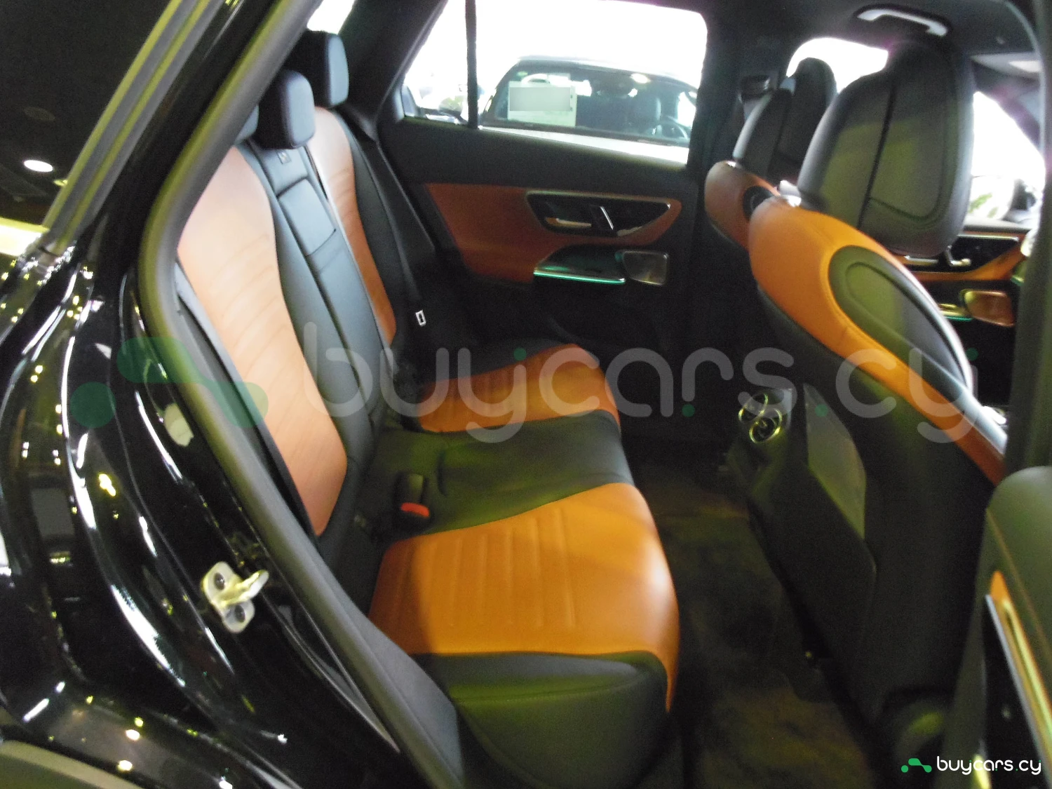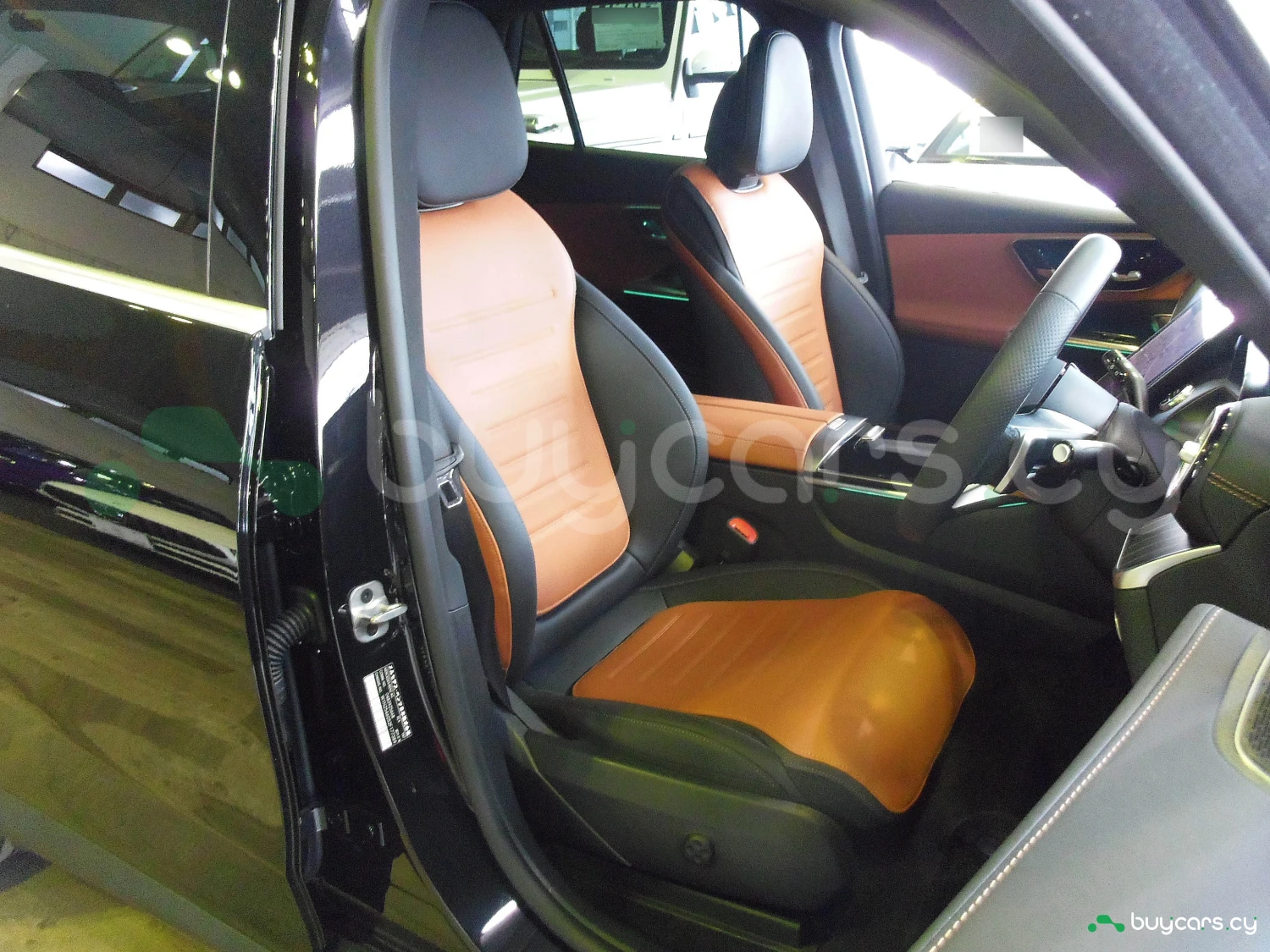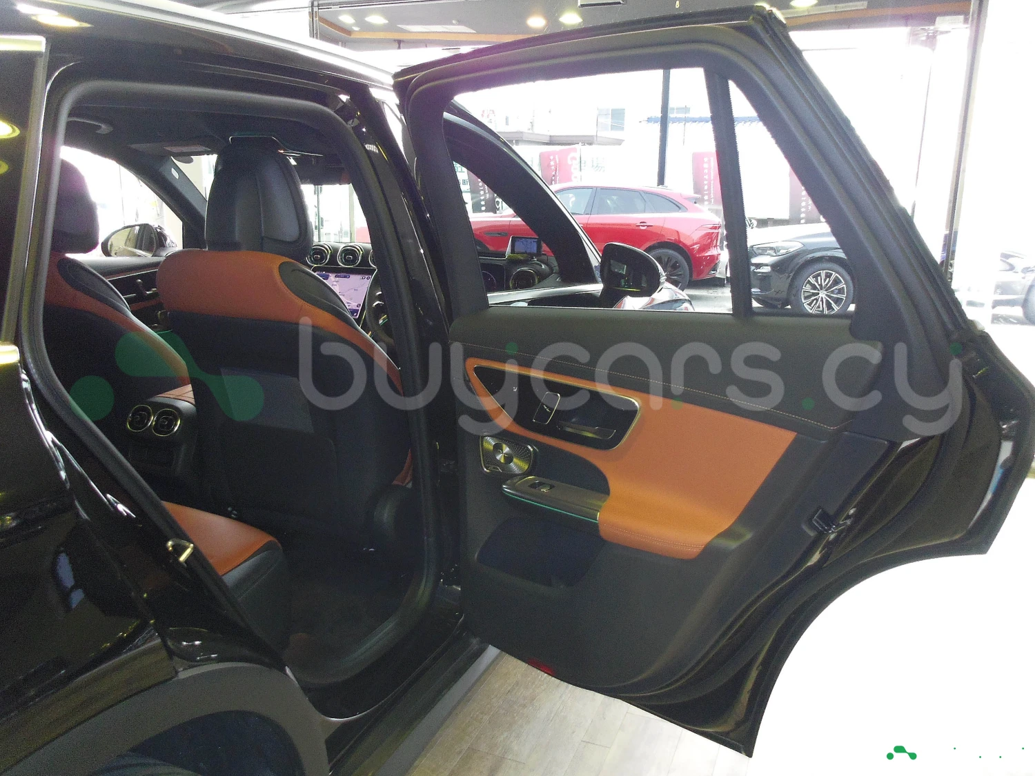 Снаружи GLC в цвете Obsidian Black выглядит спортивно и изысканно благодаря стилистике AMG Line: спортивные бамперы, хромированные элементы, большие легкосплавные диски и фары Digital Light. Дополнительные удобства — система кругового обзора 360° и электропривод багажника.