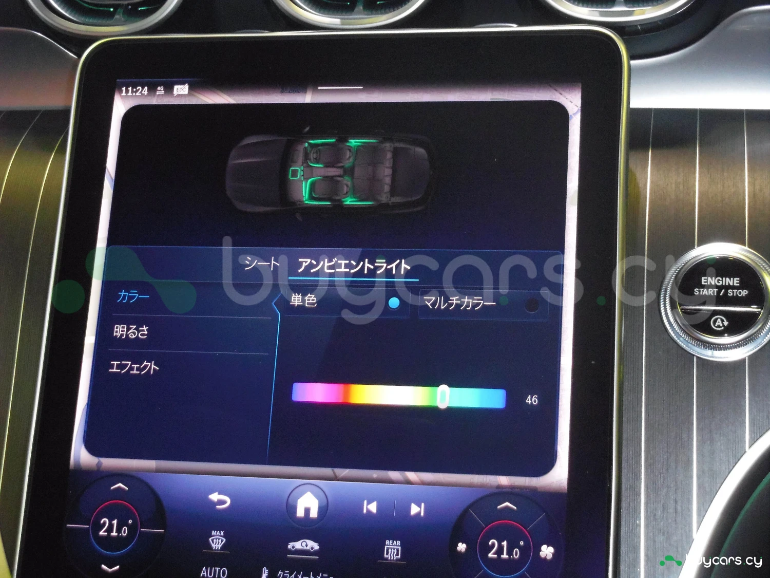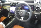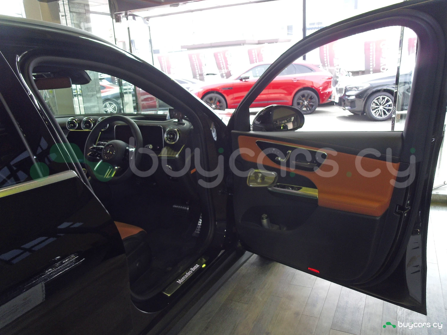 Салон выполнен по стандартам AMG Leather Exclusive, с двухцветной отделкой из чёрной и красной кожи, декоративной прострочкой и премиальными материалами. Водитель и пассажиры могут наслаждаться комфортом с подогреваемыми сиденьями с электрорегулировками, двухзонным климат-контролем и панорамной сдвижной крышей. Мультимедийная система нового поколения MBUX включает широкий цифровой дисплей, навигацию, Apple CarPlay, Android Auto, голосовое управление и полноценную поддержку цифрового ТВ. Акустическая система Burmester 3D Surround обеспечивает звучание высокого класса.
