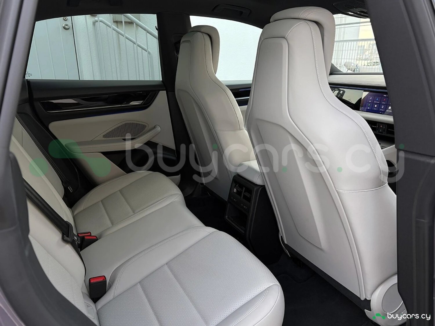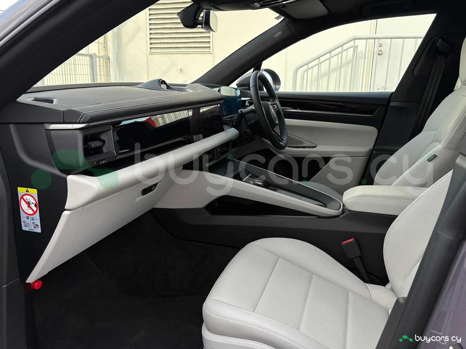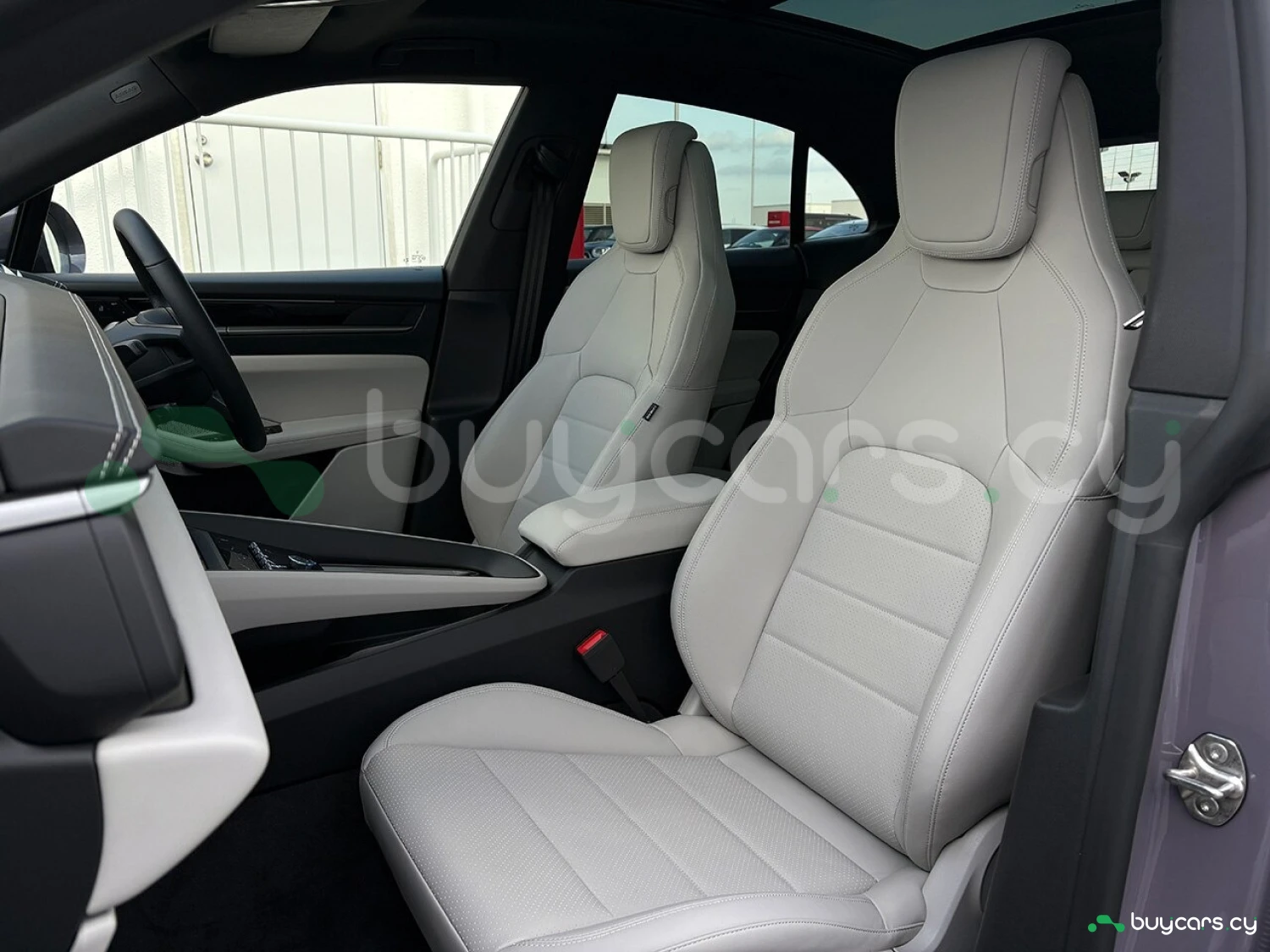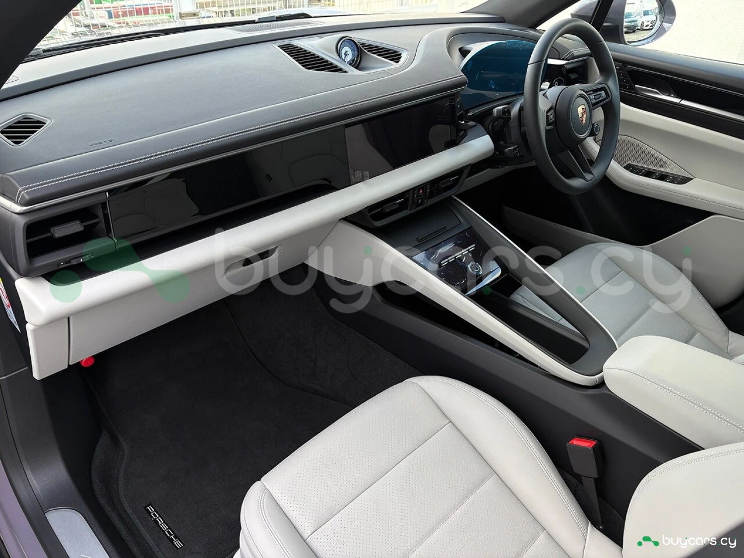 Салон отделан белой кожей, подчёркивая роскошь и чистоту дизайна. На передней панели размещены 12.6-дюймовая цифровая приборная панель, 10.9-дюймовый центральный дисплей, а также дополнительный 10.9-дюймовый экран для пассажира (опция). Информационно-развлекательная система поддерживает Android Auto и Apple CarPlay, предлагая удобную интеграцию смартфона. Также в комплектацию входят подогрев передних и задних сидений, подогрев руля, передние сиденья с электроприводом (14 направлений) и электропривод багажной двери.