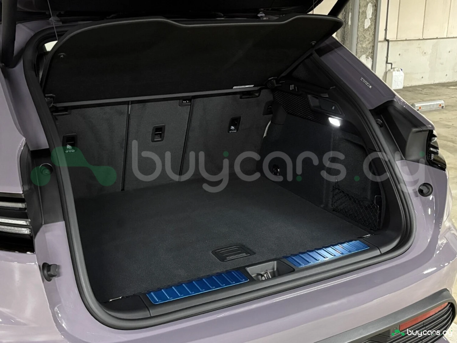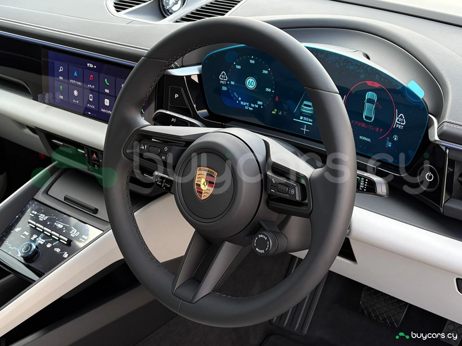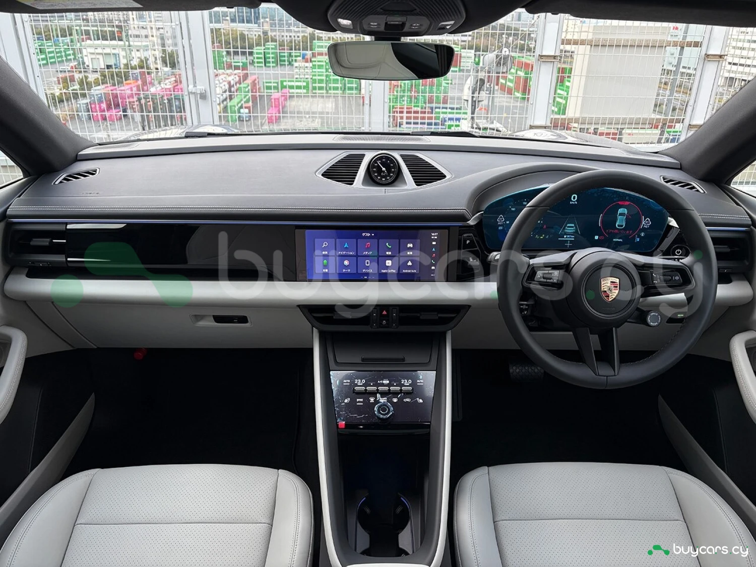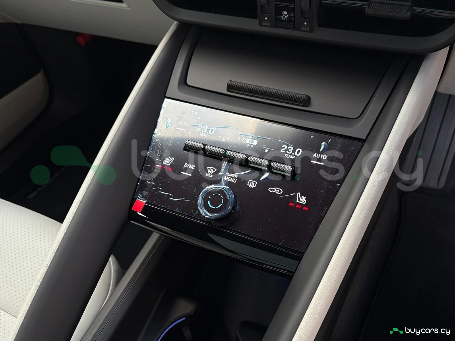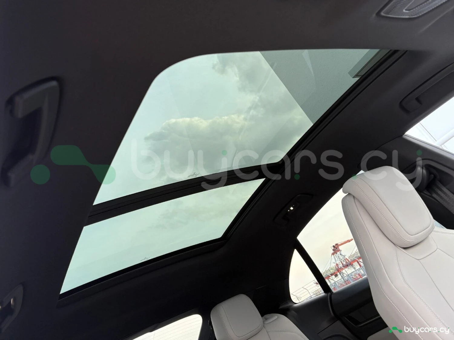 Салон отделан белой кожей, подчёркивая роскошь и чистоту дизайна. На передней панели размещены 12.6-дюймовая цифровая приборная панель, 10.9-дюймовый центральный дисплей, а также дополнительный 10.9-дюймовый экран для пассажира (опция). Информационно-развлекательная система поддерживает Android Auto и Apple CarPlay, предлагая удобную интеграцию смартфона. Также в комплектацию входят подогрев передних и задних сидений, подогрев руля, передние сиденья с электроприводом (14 направлений) и электропривод багажной двери.