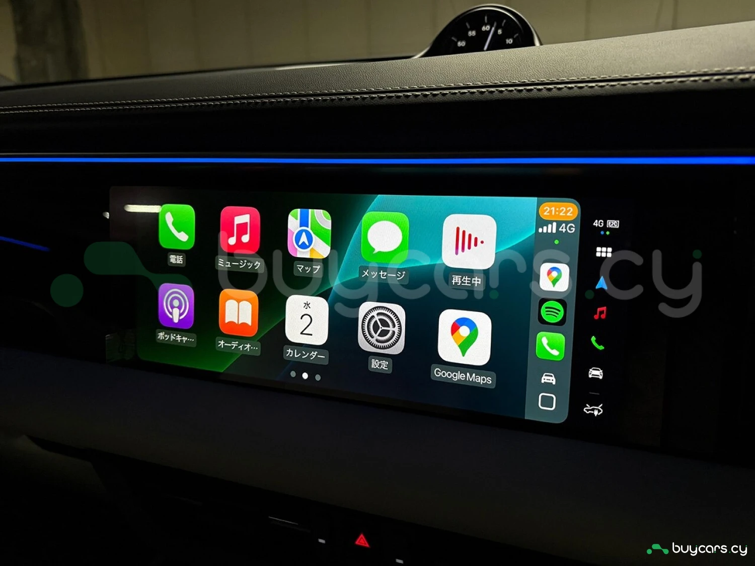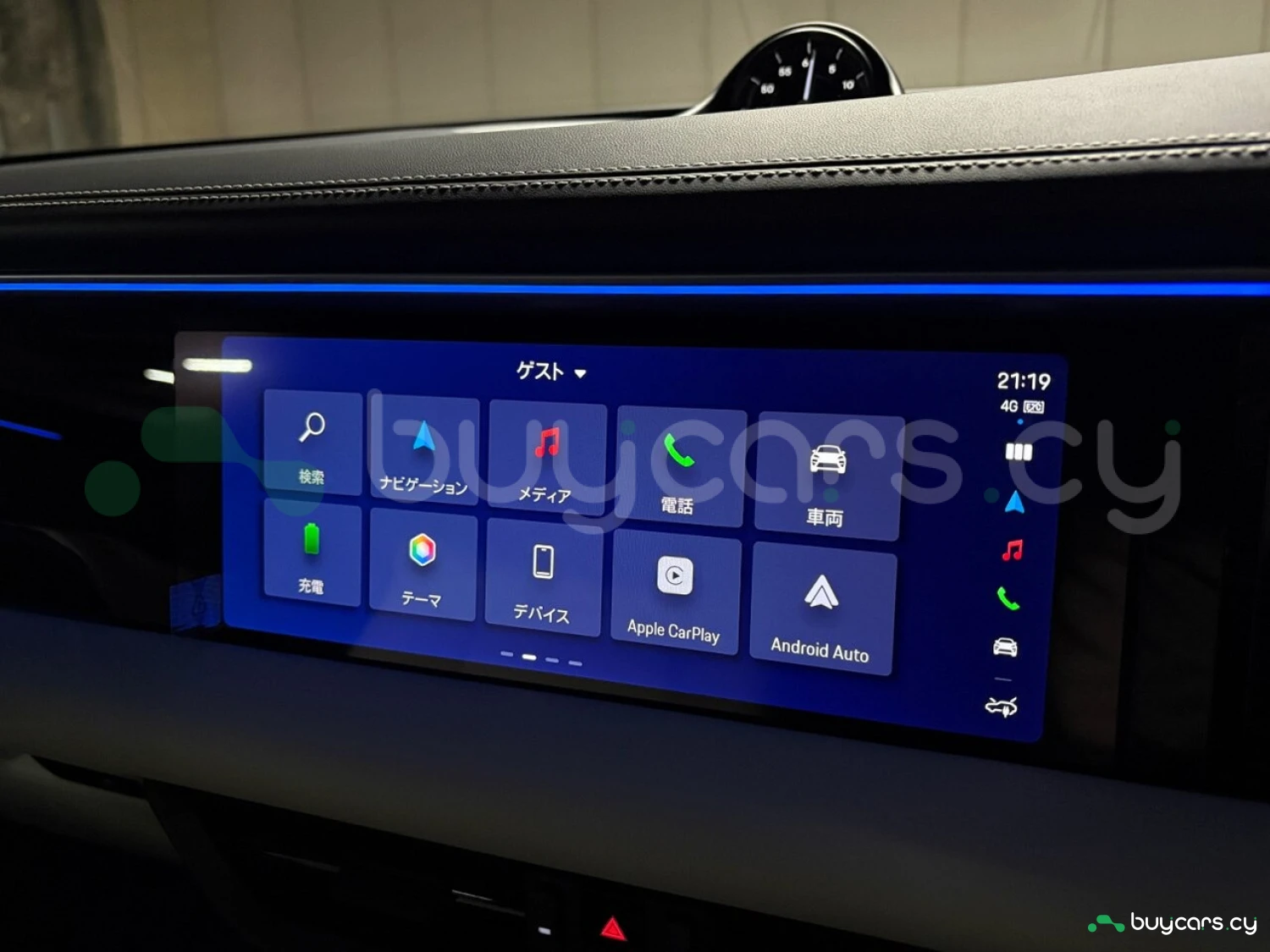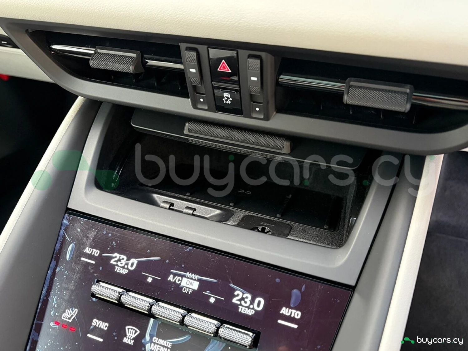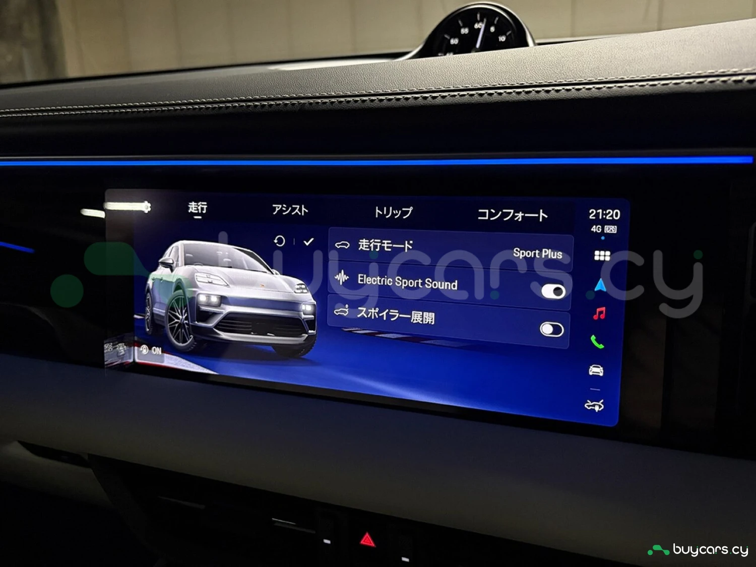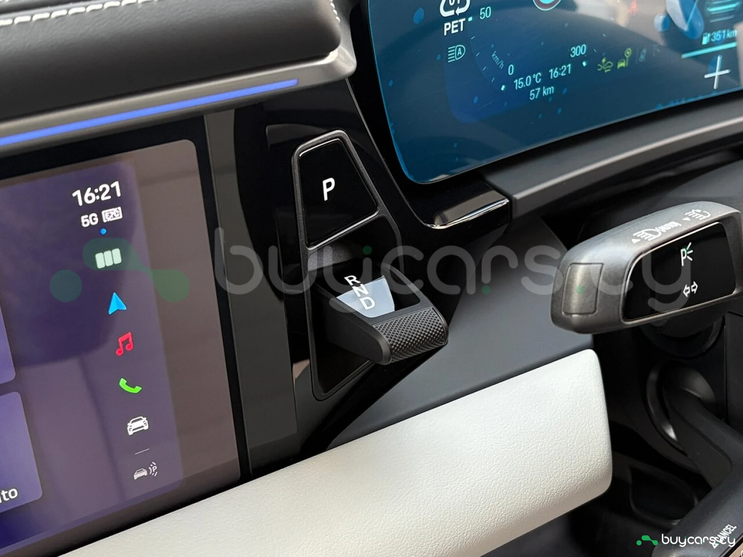 Салон отделан белой кожей, подчёркивая роскошь и чистоту дизайна. На передней панели размещены 12.6-дюймовая цифровая приборная панель, 10.9-дюймовый центральный дисплей, а также дополнительный 10.9-дюймовый экран для пассажира (опция). Информационно-развлекательная система поддерживает Android Auto и Apple CarPlay, предлагая удобную интеграцию смартфона. Также в комплектацию входят подогрев передних и задних сидений, подогрев руля, передние сиденья с электроприводом (14 направлений) и электропривод багажной двери.