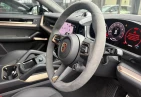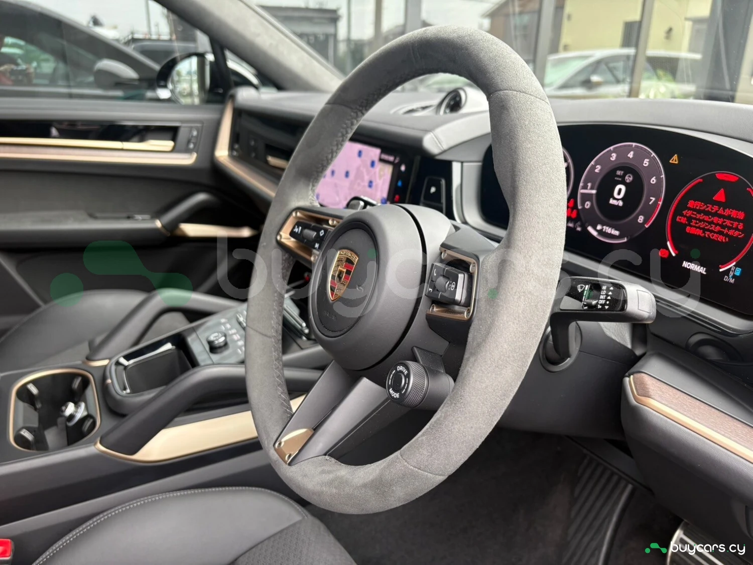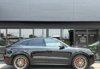 Porsche Cayenne Coupé GTS 2024 года сочетает в себе спортивность и элегантность, подчёркнутую динамичным силуэтом купе и агрессивным фирменным стилем GTS. Спереди автомобиль выделяется чёрной радиаторной решёткой, крупными воздухозаборниками и узкими светодиодными матричными фарами с автоматическим переключением дальнего света. Сбоку — мускулистый профиль с ниспадающей линией крыши, чёрным декором Shadowline и 21-дюймовыми дисками RS Spyder Design. Сзади расположены активный спойлер, четыре чёрные патрубка выхлопа и Y‑образные светодиодные фонари, завершающие атлетичный образ.