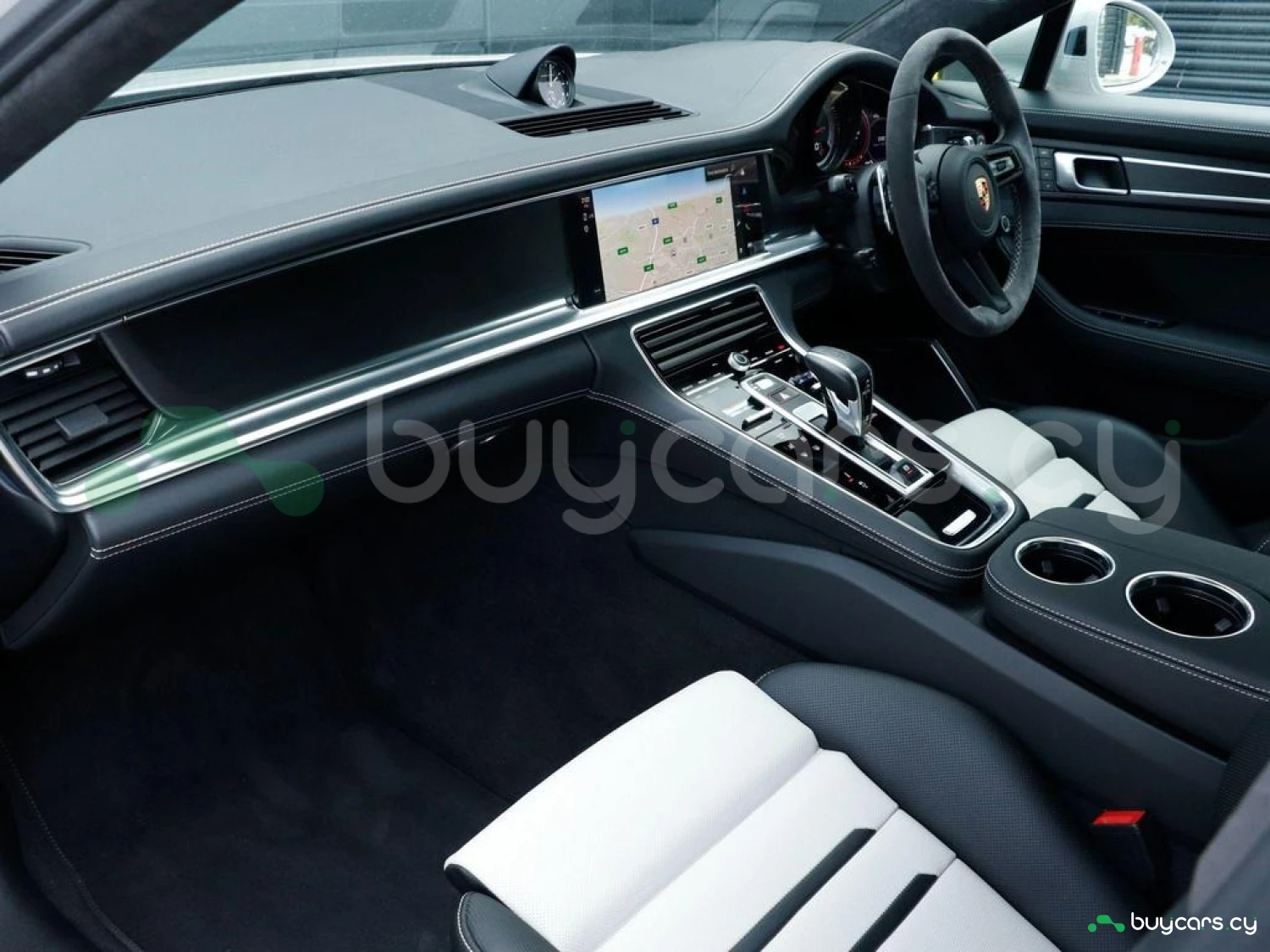 Экстерьер: Кузов окрашен в специальный цвет Crayon (серый матовый), который подчеркивает элегантный и современный облик автомобиля. Пакет SportDesign, окрашенный в сатиновый и глянцево-черный цвет, вместе с боковыми юбками SportDesign, улучшает аэродинамические характеристики. 21-дюймовые легкосплавные диски Panamera Turbo S с центральной гайкой, окрашенные в антрацитовый серый, создают агрессивный стиль, а красные тормозные суппорты подчеркивают спортивный характер. Окантовка боковых окон выполнена в черном глянцевом цвете, а дверные ручки окрашены в цвет кузова для плавности линий. Эксклюзивные задние фонари с динамическими индикаторами поворотов завершают выразительный экстерьер.